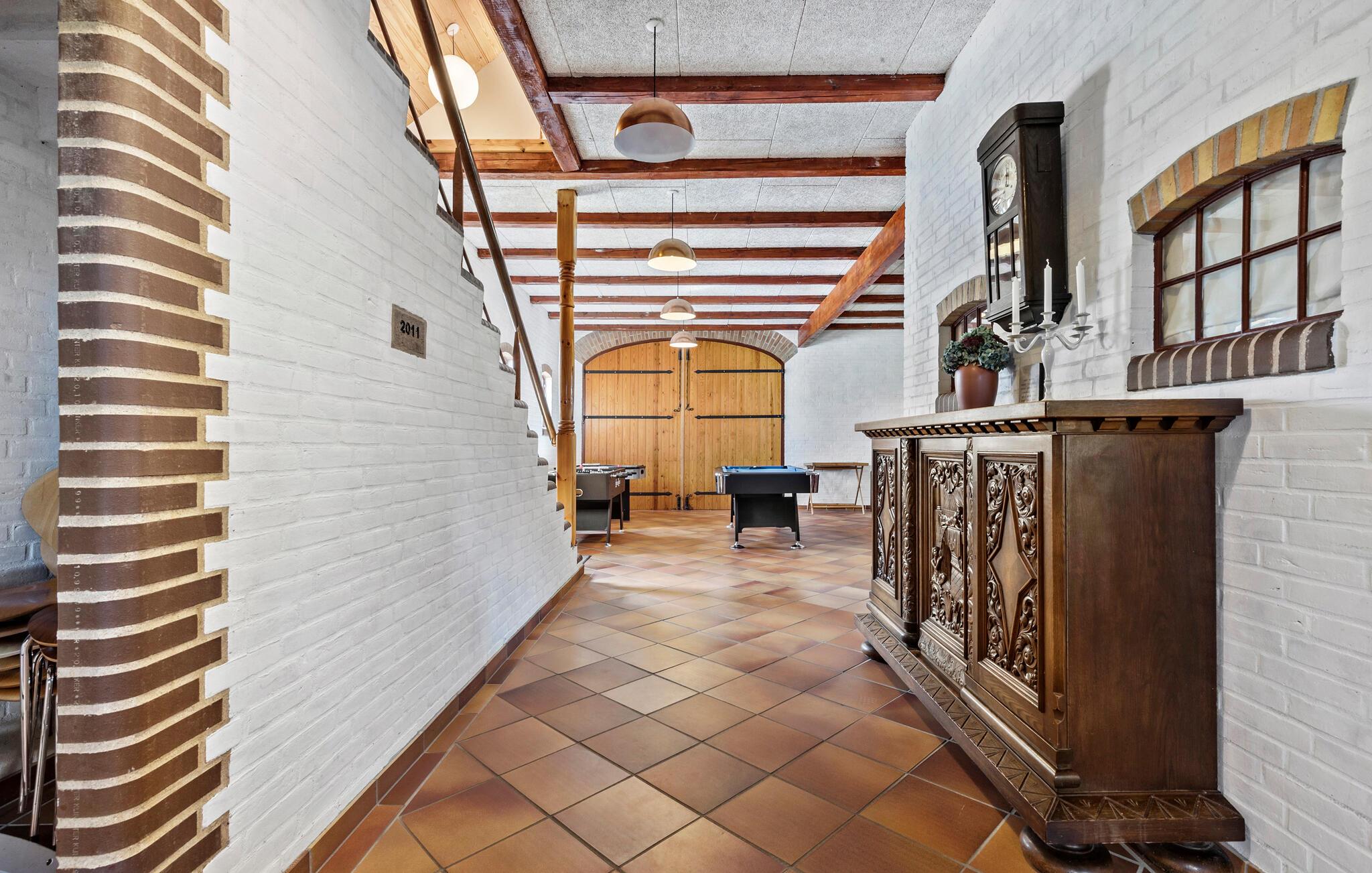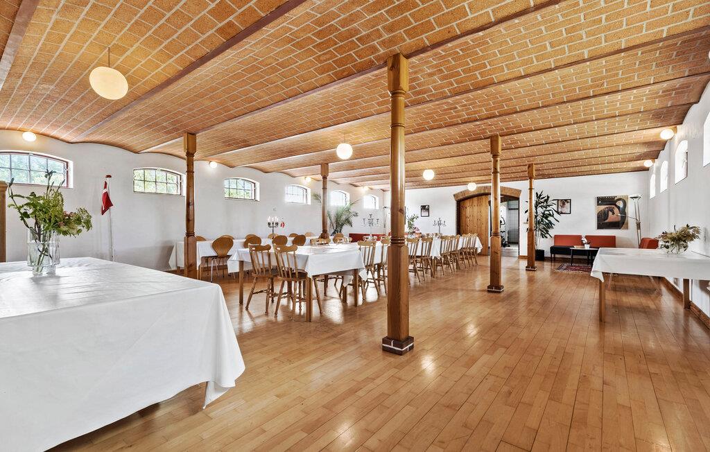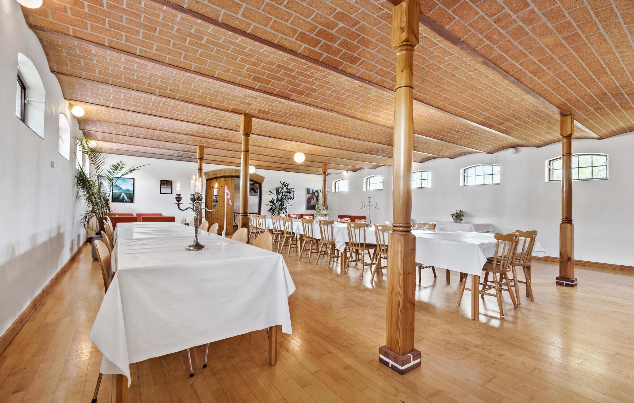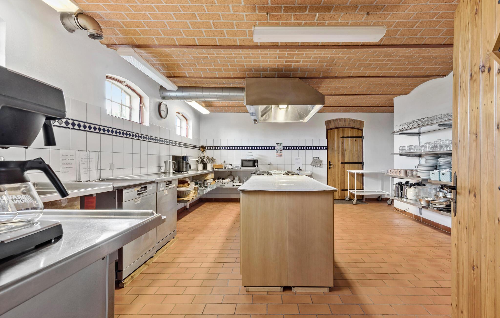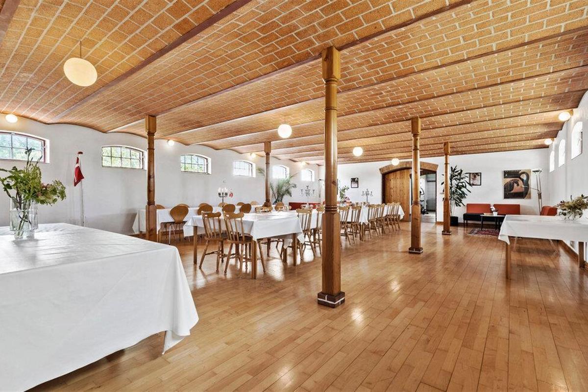 Dit vakantiehuis op Djursland biedt je een speciaal soort vakantie. Er is hier een overvloed aan mogelijkheden, want het pand strekt zich uit over verschillende niveaus, gebouwen en een groot woongedeelte. Misschien wil je hier wel een meerdaags familiefeest vieren of droom je ervan om samen met familie vrienden op reis te gaan, met ruimte voor iedereen en ruimte voor binnen- en buitenactiviteiten. Op de binnenplaats zijn veel historische elementen bewaard gebleven, van de houten vloeren tot het bakstenen plafond in de feestzaal, een elegante hal en een nostalgische keuken waar zowel kinderen als volwassenen zich kunnen vermaken.