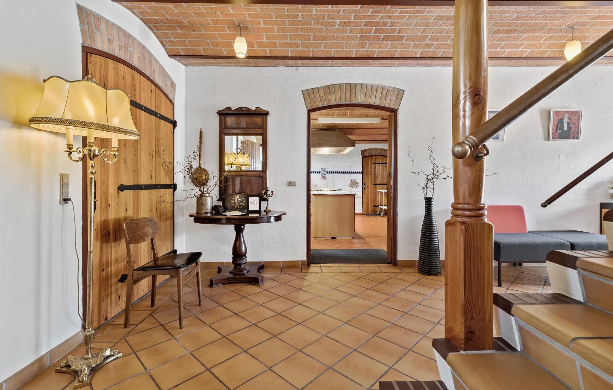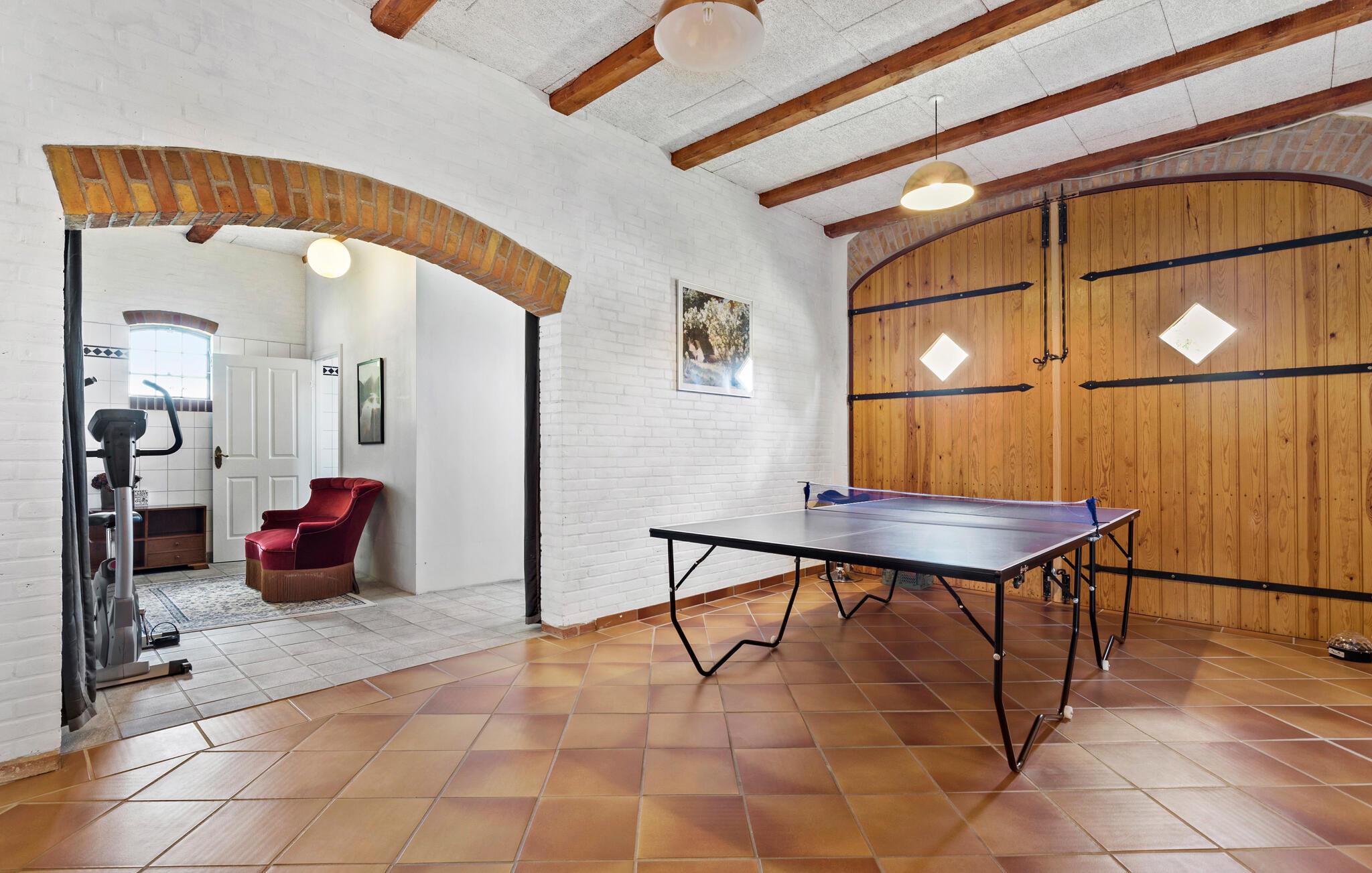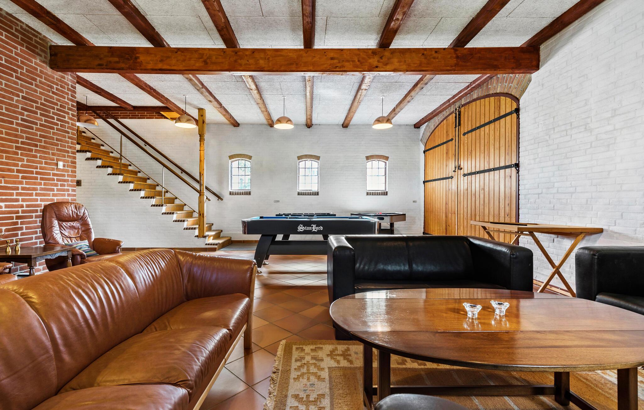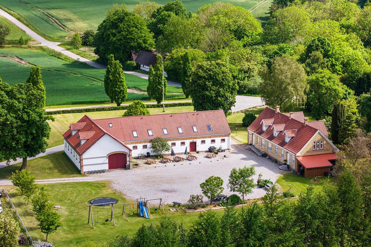 Dit vakantiehuis op Djursland biedt je een speciaal soort vakantie. Er is hier een overvloed aan mogelijkheden, want het pand strekt zich uit over verschillende niveaus, gebouwen en een groot woongedeelte. Misschien wil je hier wel een meerdaags familiefeest vieren of droom je ervan om samen met familie vrienden op reis te gaan, met ruimte voor iedereen en ruimte voor binnen- en buitenactiviteiten. Op de binnenplaats zijn veel historische elementen bewaard gebleven, van de houten vloeren tot het bakstenen plafond in de feestzaal, een elegante hal en een nostalgische keuken waar zowel kinderen als volwassenen zich kunnen vermaken.