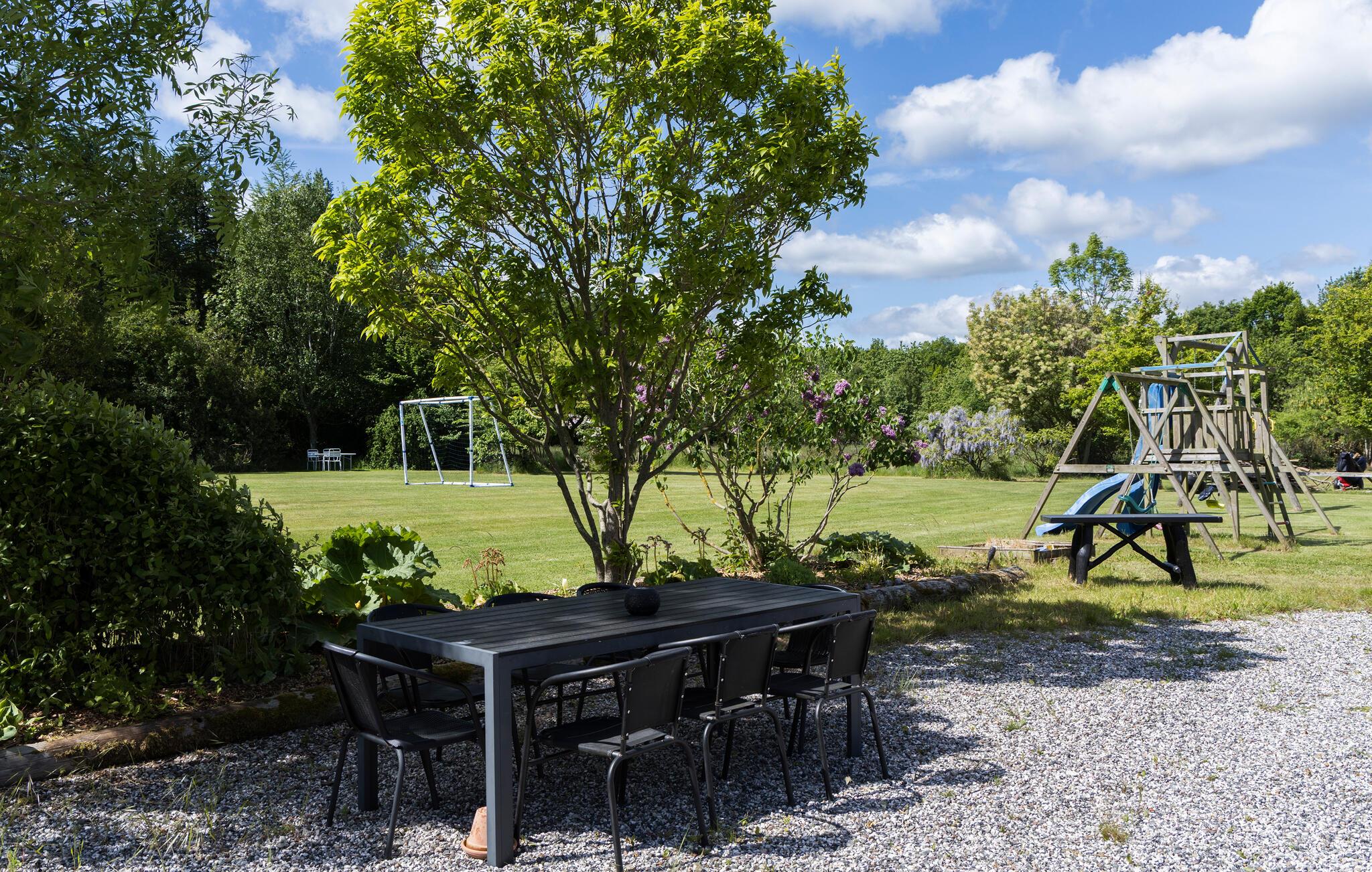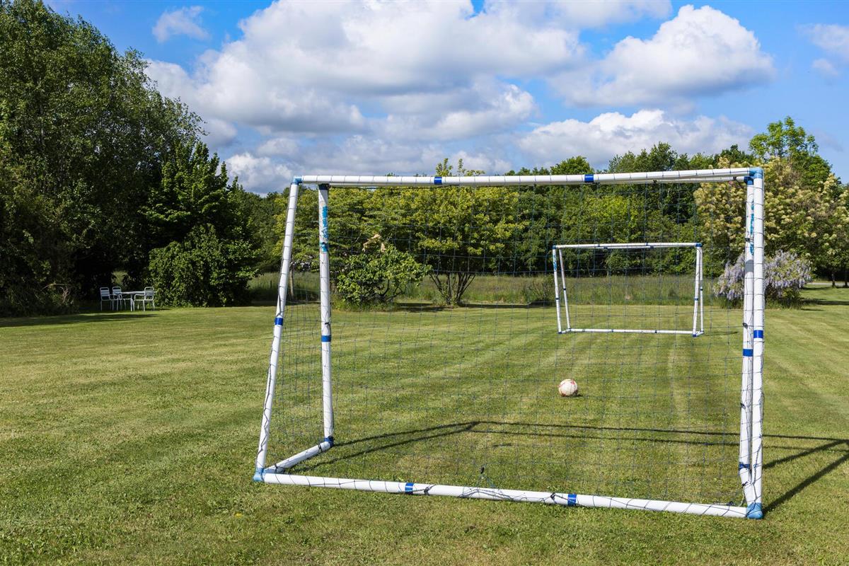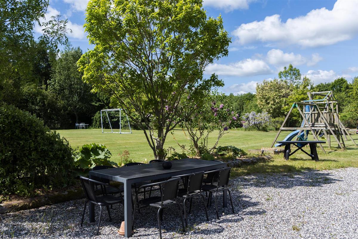 Buiten wacht je een romantische tuin met bloemen, oude bomen en ruime plekken voor balspelen. Maak het jezelf gemakkelijk op de tuinbank met een goed boek, speel een partijtje voetbal of steek de barbecue aan terwijl de kleintjes van de glijbaan suizen en op de trampoline springen.
