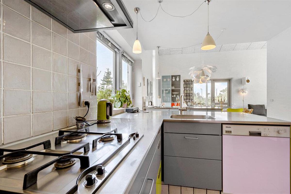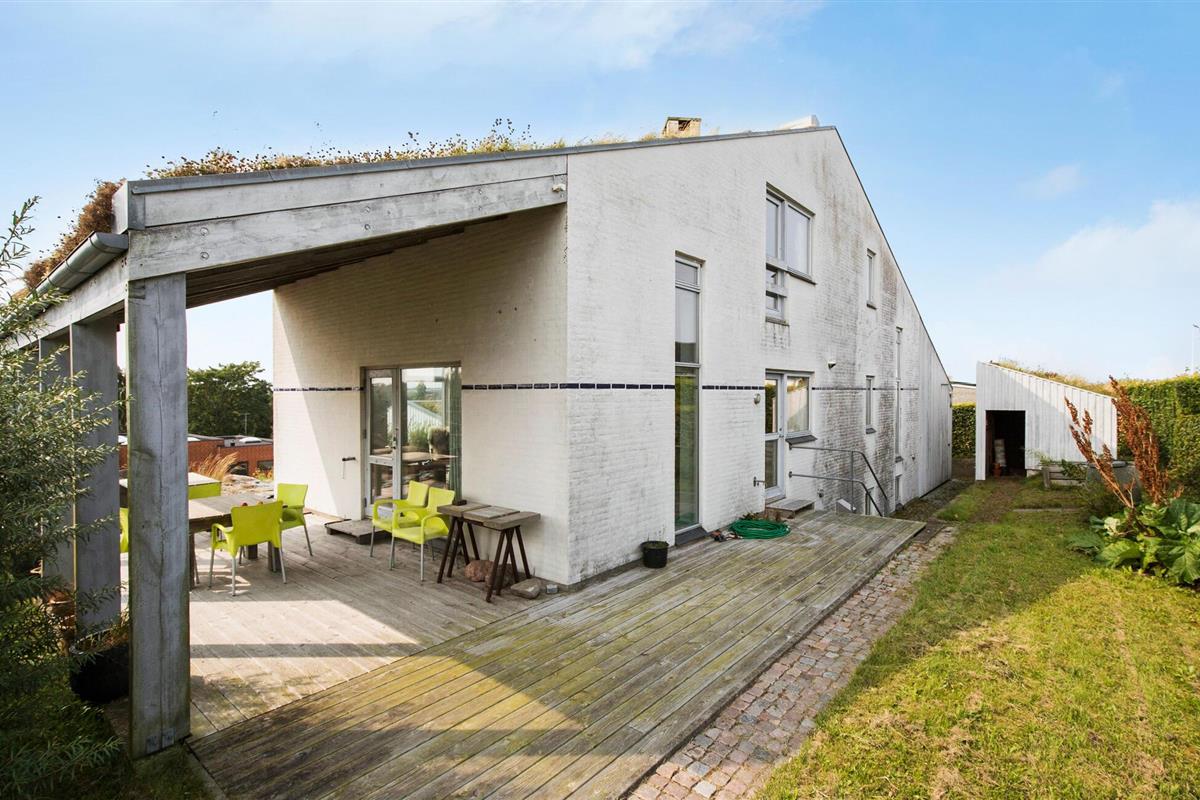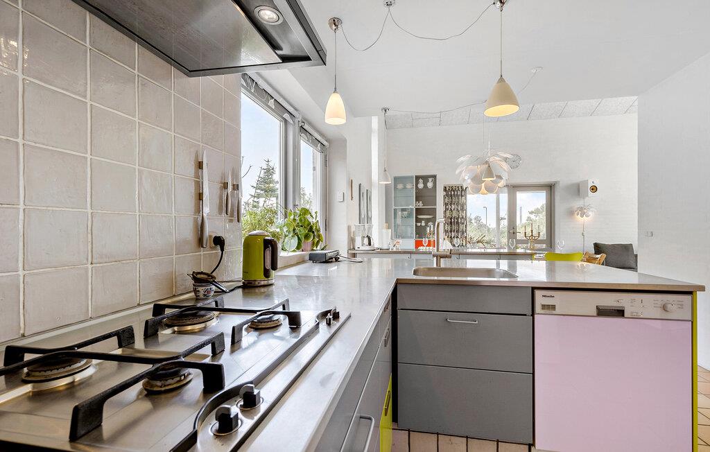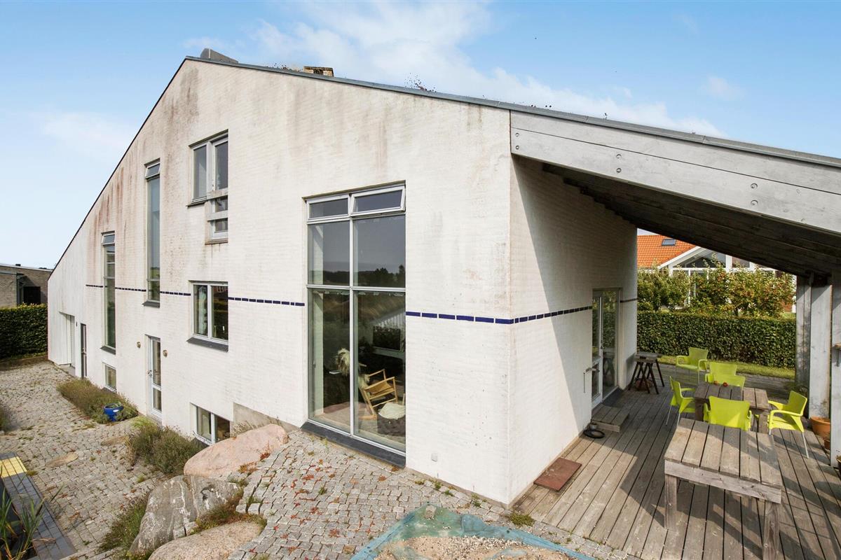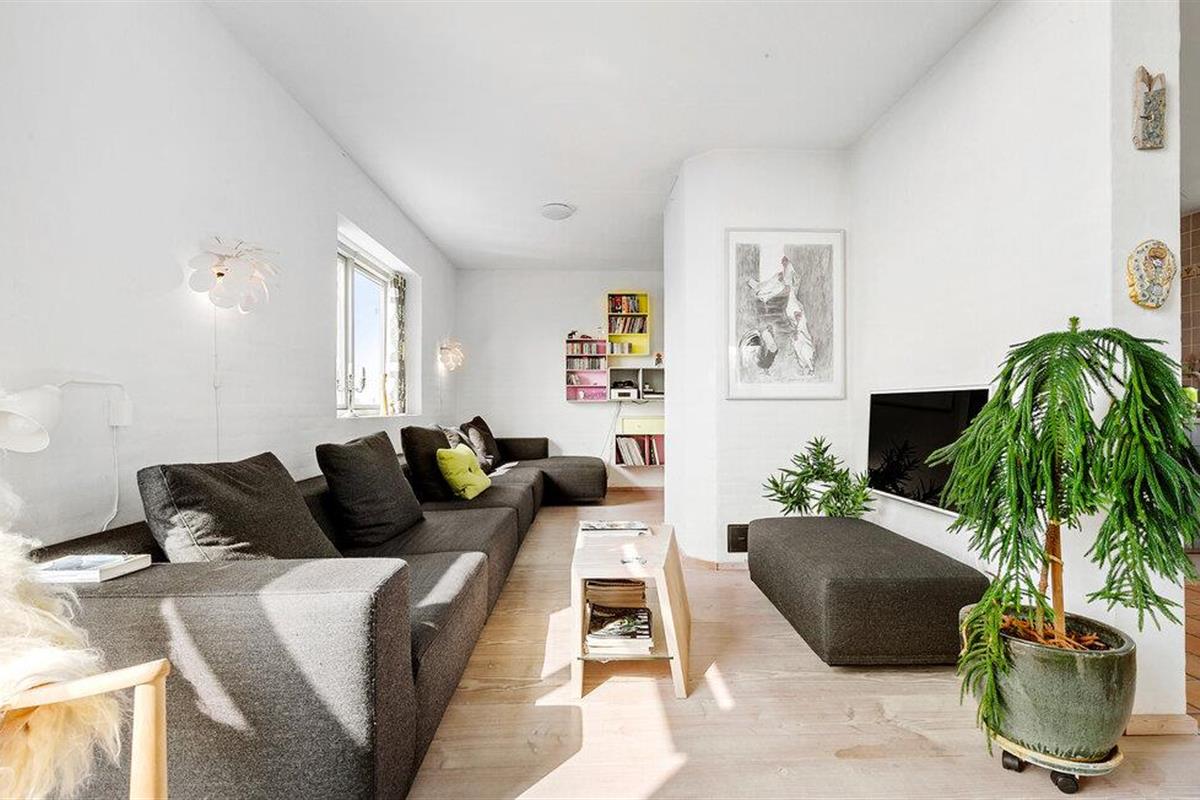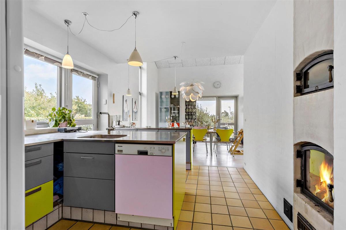 In Åstrup, aan de rand van Grenaa, vind je dit uitnodigende huis met een geheel eigen architectuur en een prachtige ligging op een heuvel in een kleine woonwijk met een weids uitzicht over een vredig landschap. Stap de lichte woonkamer binnen met zijn grote ramen en stijlvolle inrichting. Maak het jezelf gemakkelijk op de sofa's en laat je blik over de velden dwalen terwijl je de rust en sereniteit van het huis in je opneemt.