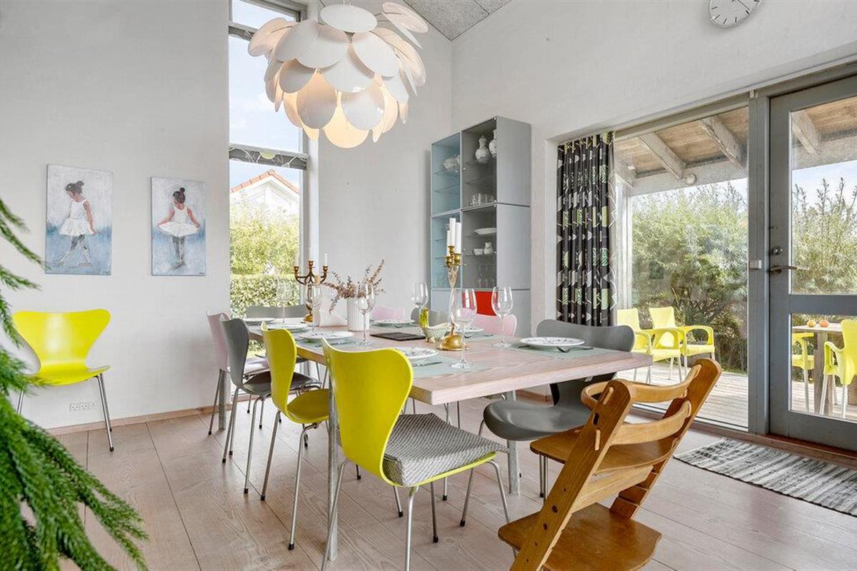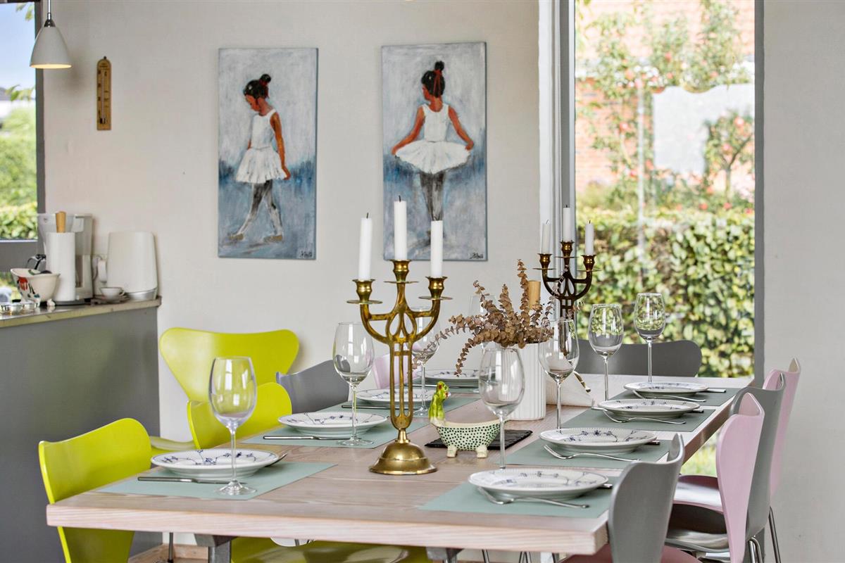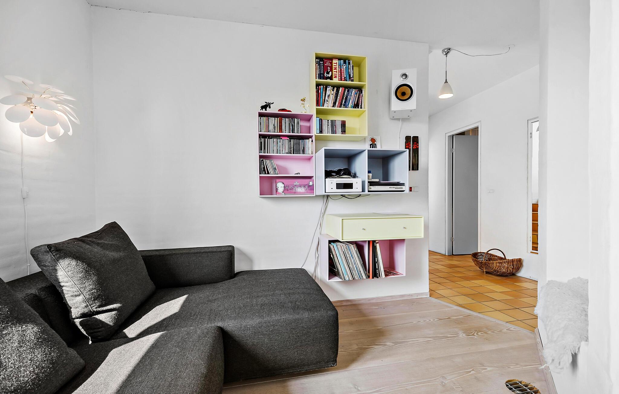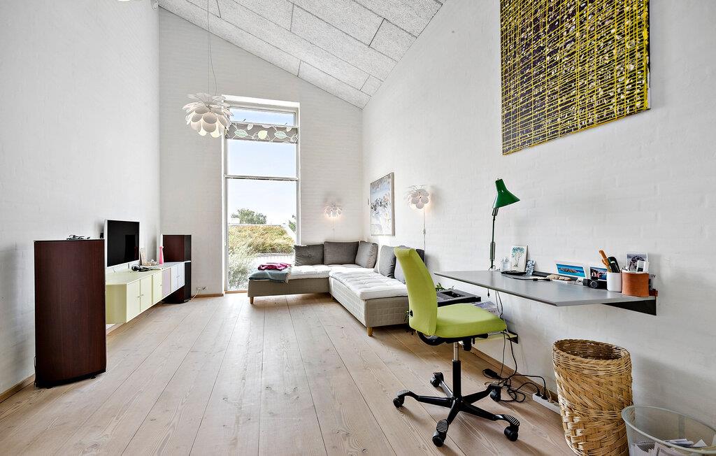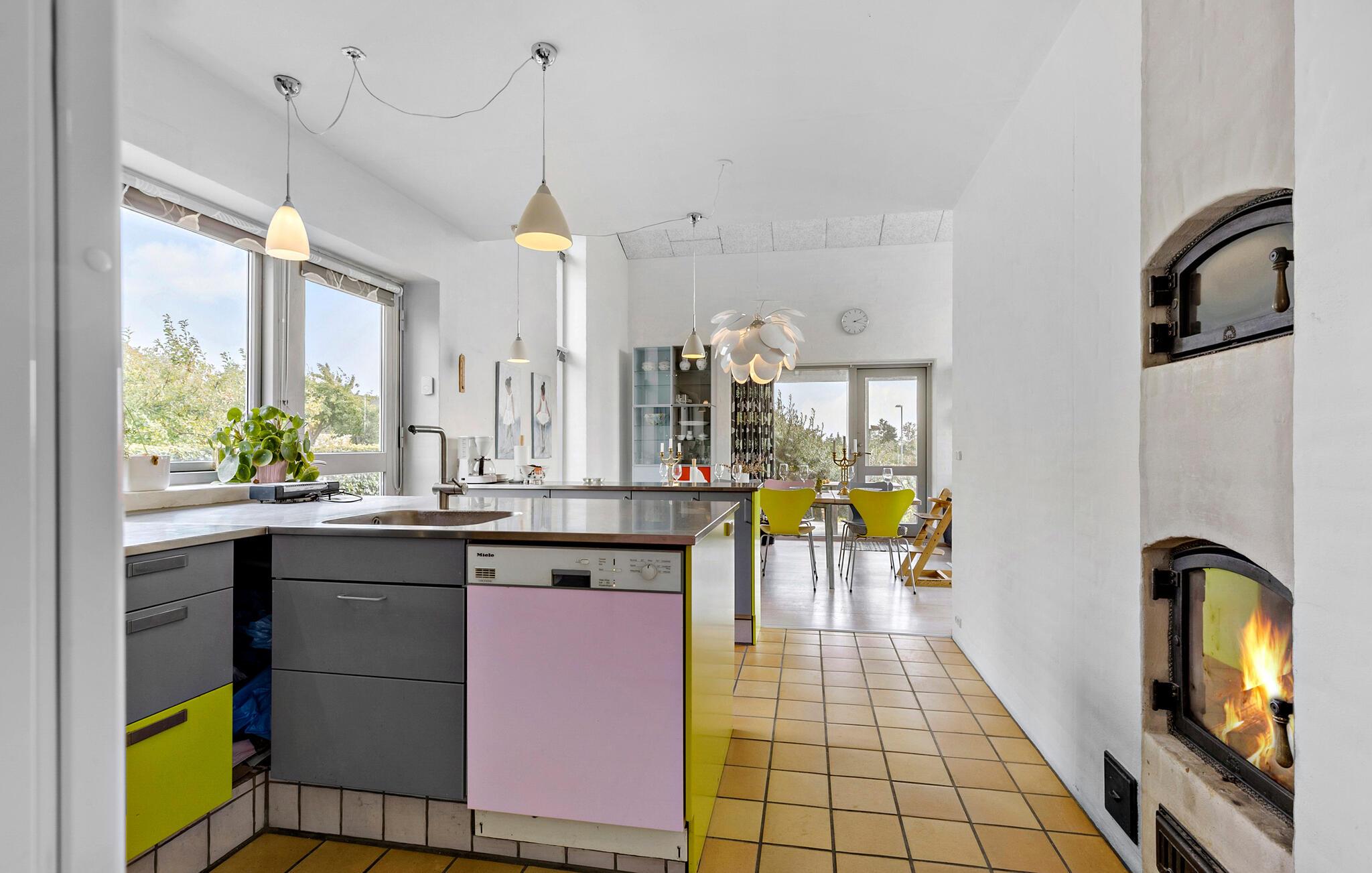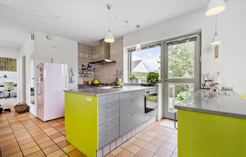 In Åstrup, aan de rand van Grenaa, vind je dit uitnodigende huis met een geheel eigen architectuur en een prachtige ligging op een heuvel in een kleine woonwijk met een weids uitzicht over een vredig landschap. Stap de lichte woonkamer binnen met zijn grote ramen en stijlvolle inrichting. Maak het jezelf gemakkelijk op de sofa's en laat je blik over de velden dwalen terwijl je de rust en sereniteit van het huis in je opneemt.