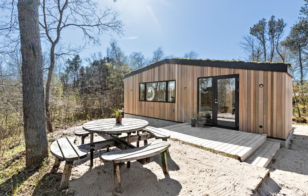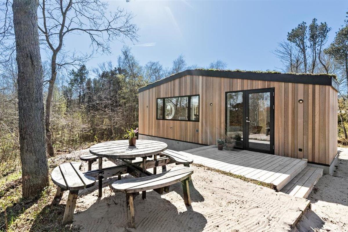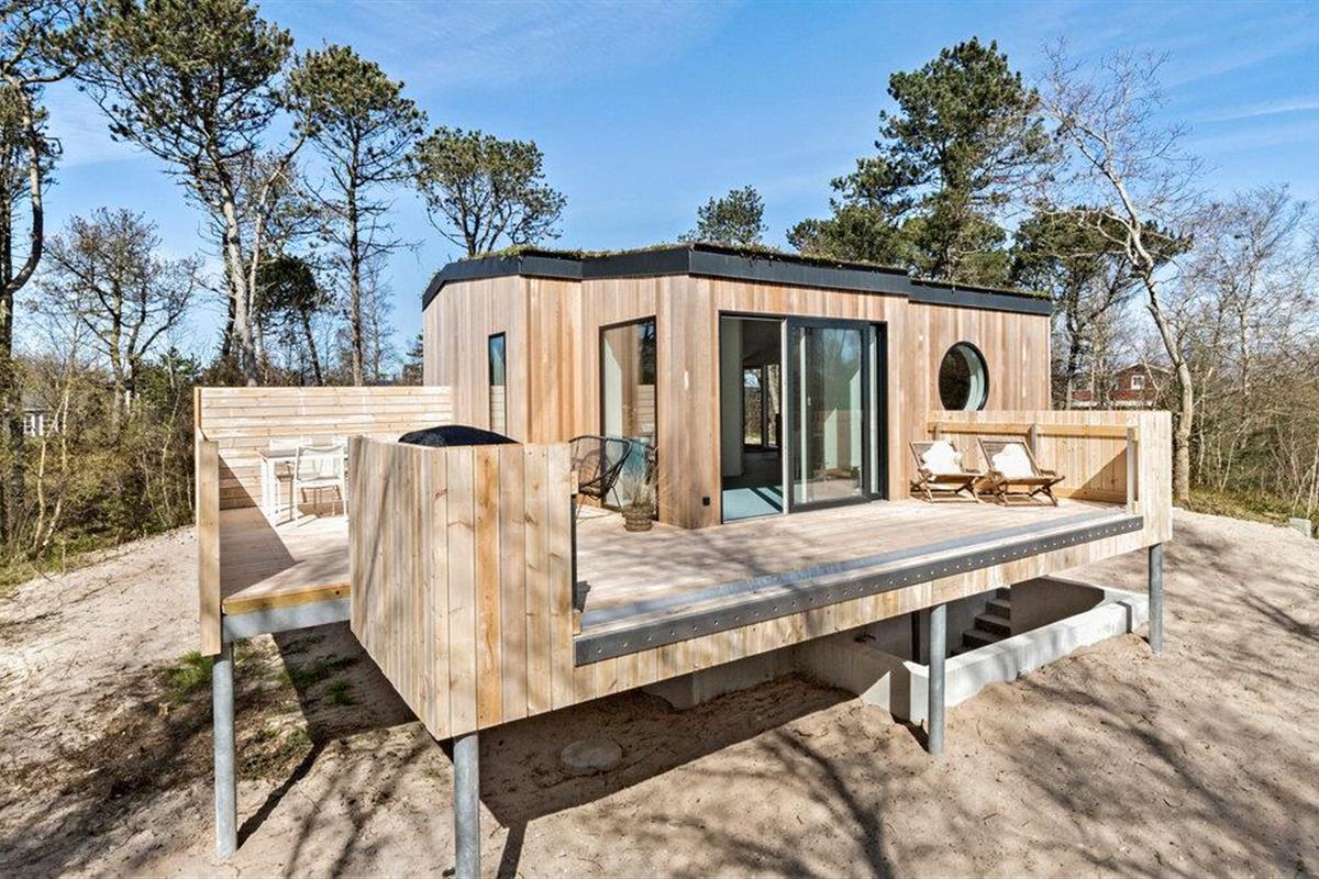 Vanuit de woonkamer heb je toegang tot een groot houten terras, dat boven het huis ligt, waar je in een van de terrashoeken kunt zitten en van de zon kunt genieten. Het huis ligt op een beschut duingrondstuk met uitzicht op het platteland en op korte afstand van het water. Op het open terras kun je ontspannen in comfortabel tuinmeubilair en heerlijke maaltijden barbecueën.