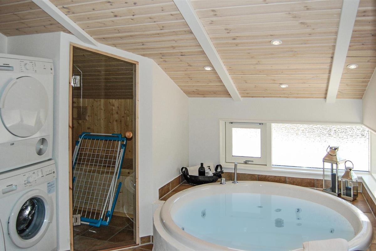 Door de ligging in een zeer populair vakantiehuisgebied en op slechts enkele minuten lopen van een van de beste badstranden van Denemarken, is dit huis het hele jaar door geschikt voor een heerlijke vakantie. Op de goede houten terrassen aan de zonnige kanten van het huis kunt u met volle teugen genieten van gezellige vakanties en de maaltijden van de dag samen. Het huis is zeer goed ingericht met goede kamers en mooie badkamers (whirlpool, sauna). Als u van joggen of fietsen houdt, kunt u dat doen in de bosrijke natuurgebieden in de omgeving en aan zee.