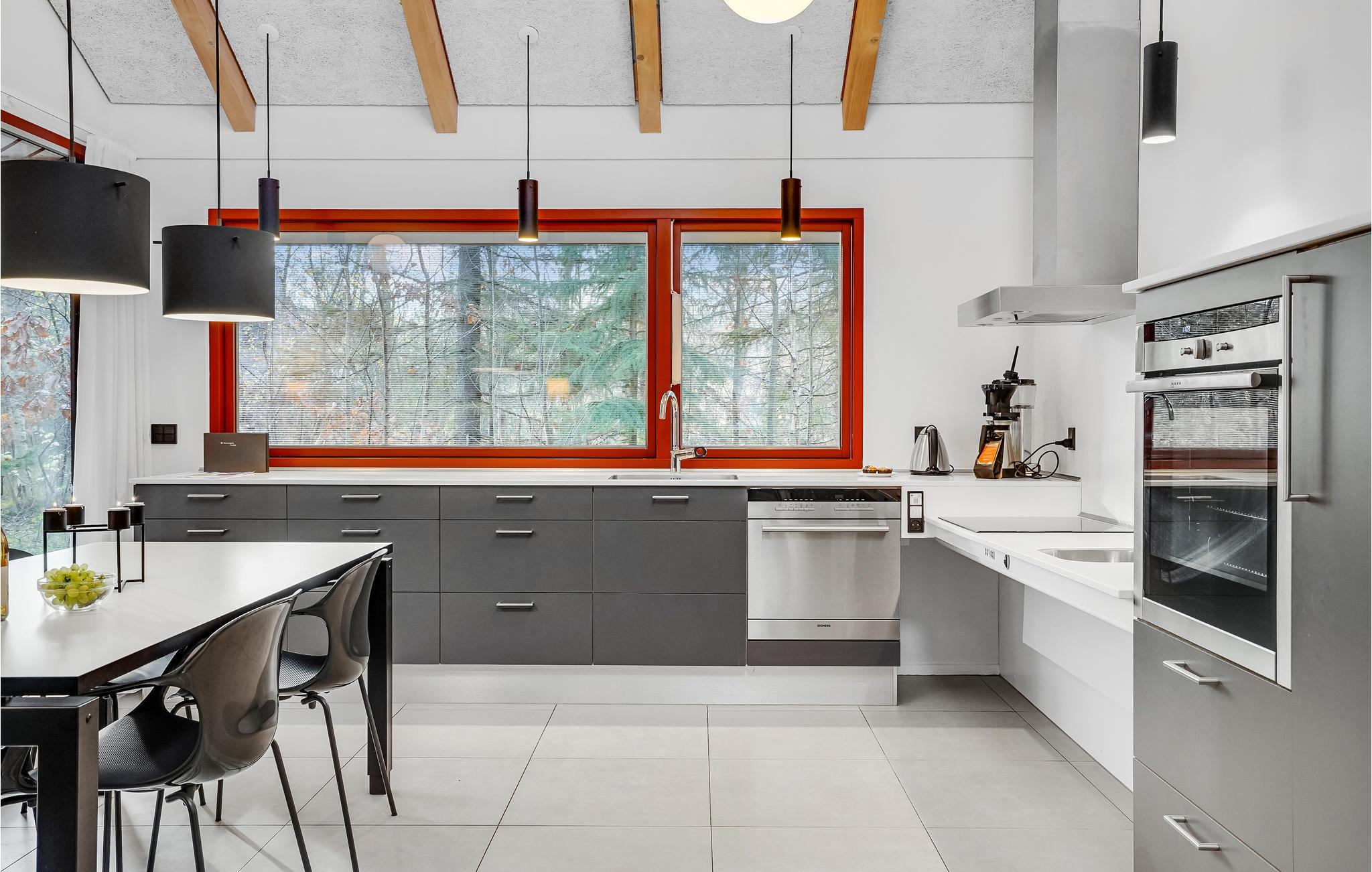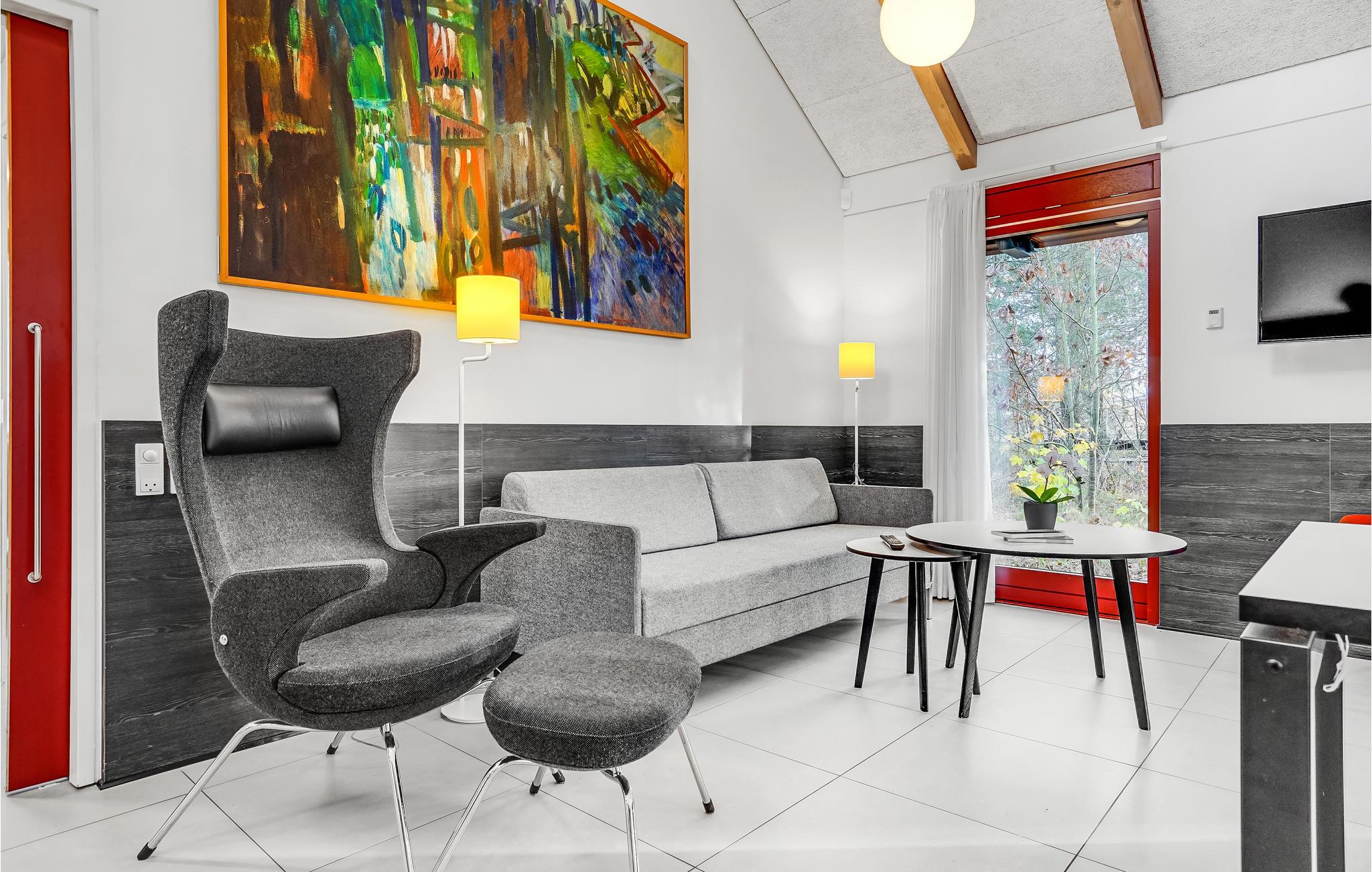 Dit lichte en vriendelijke vakantiehuis verwelkomt maximaal vijf gasten en een extra peuter. In het praktische vakantiehuis vindt u een mooie woonkamer met keuken. Hier kunt u het zich op koude dagen comfortabel maken voor de houtkachel. Veel licht stroomt door de grote ramen. Het vakantiehuis is licht en sfeervol ingericht.