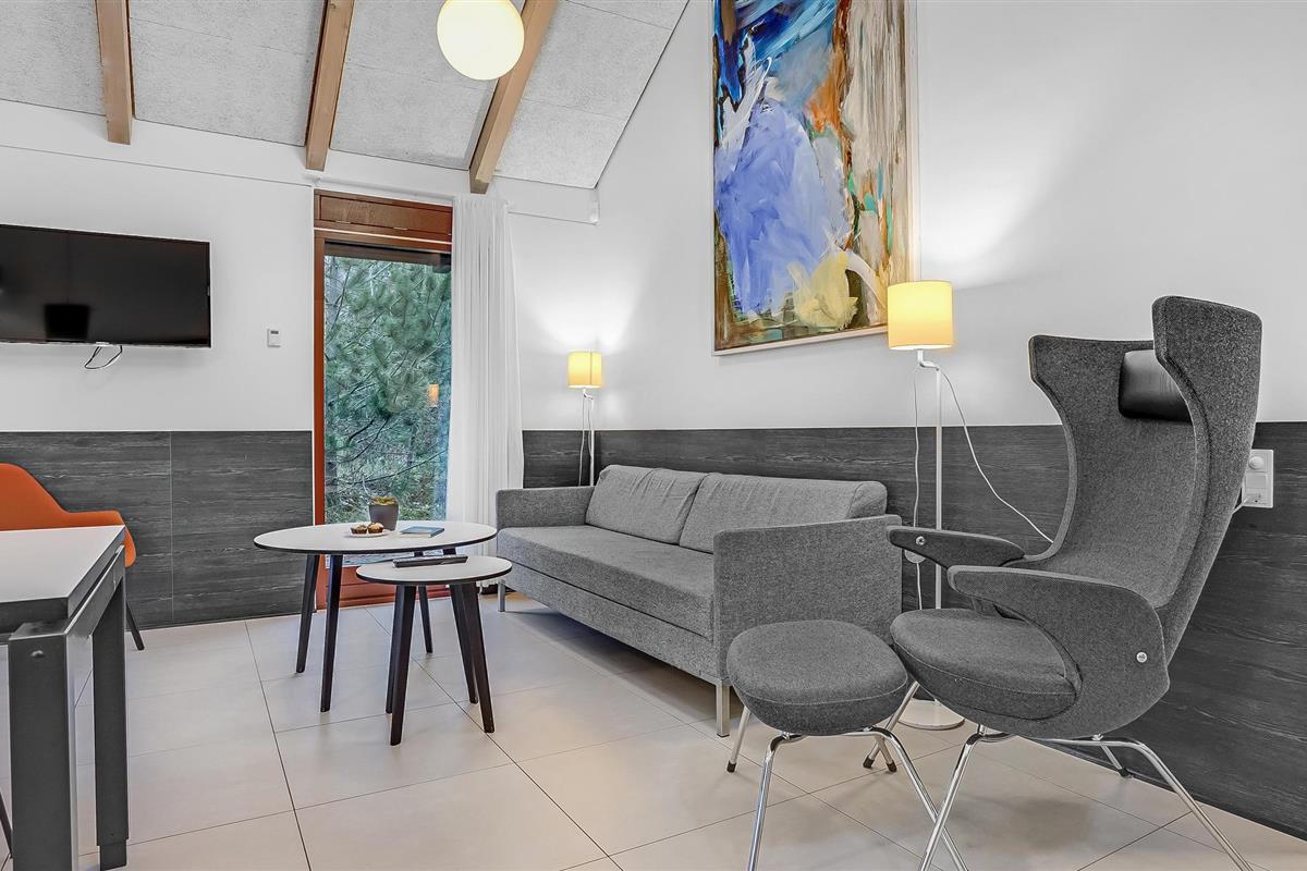 Dit lichte en vriendelijke vakantiehuis verwelkomt maximaal vijf gasten en een extra peuter. In het praktische vakantiehuis vindt u een gezellige woonkamer met keuken. Hier kunt u het zich comfortabel maken voor de houtkachel. Veel licht stroomt door de grote ramen. Het huis is licht en mooi ingericht.