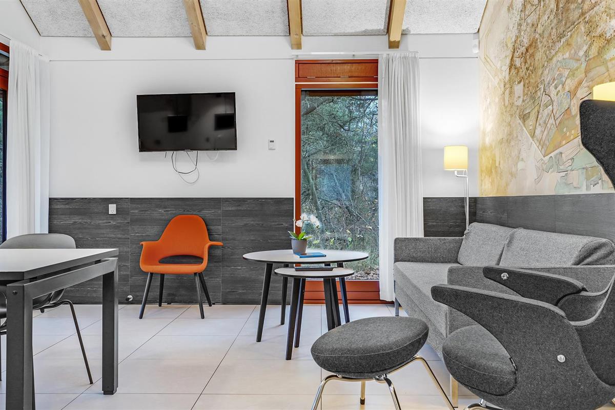Dit lichte en vriendelijke vakantiehuis verwelkomt maximaal vijf gasten en een extra peuter. In het praktische vakantiehuis vindt u een gezellige woonkamer met keuken. Hier kunt u het zich comfortabel maken voor de houtkachel. Veel licht stroomt door de grote ramen. Het huis is licht en mooi ingericht.
