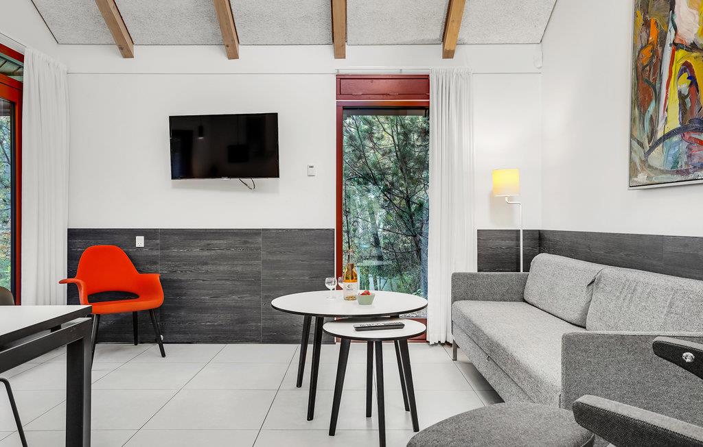 Dit lichte en vriendelijke vakantiehuis verwelkomt maximaal vijf gasten en een extra peuter. In het praktische vakantiehuis vindt u een gezellige woonkamer met keuken. Hier kunt u het zich comfortabel maken voor de houtkachel. Veel licht stroomt door de grote ramen. Het huis is licht en mooi ingericht.