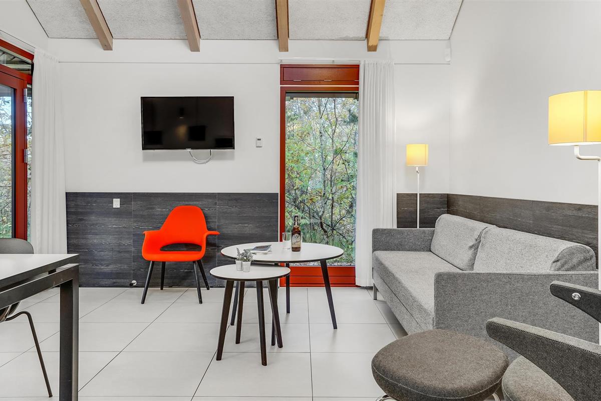Dit lichte en vriendelijke vakantiehuis verwelkomt maximaal vijf gasten en een extra peuter. In het praktische vakantiehuis vindt u een gezellige woonkamer met keuken. Hier kunt u het zich comfortabel maken voor de houtkachel. Veel licht stroomt door de grote ramen. Het huis is licht en mooi ingericht.