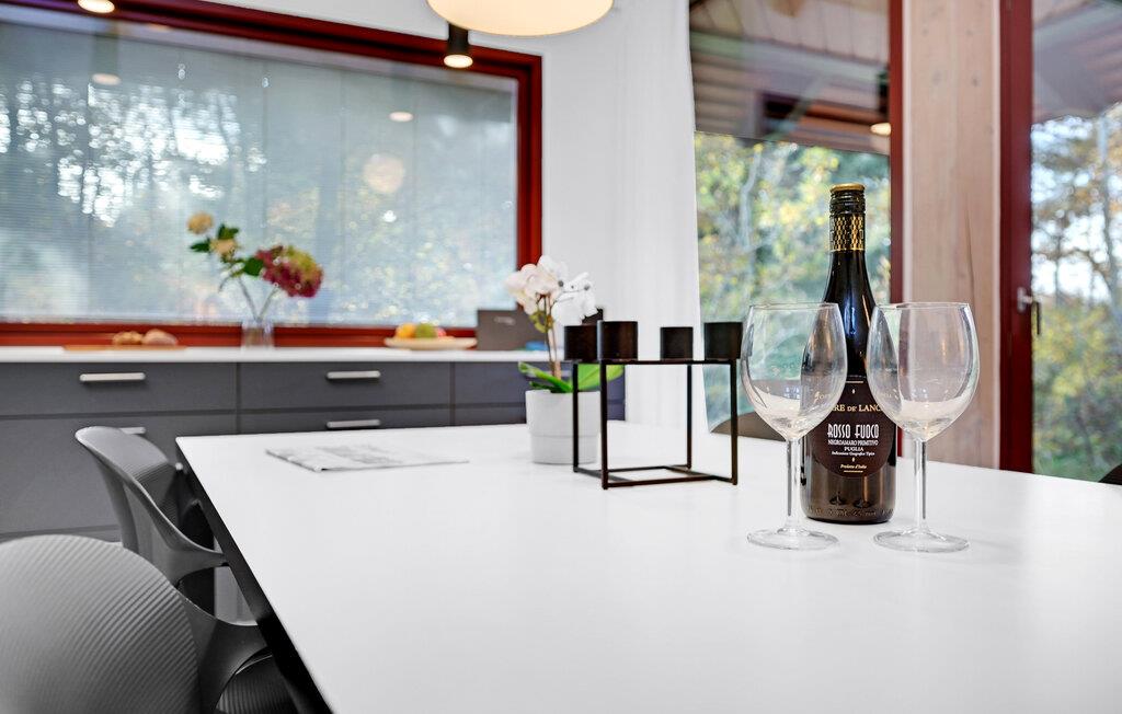 Dit lichte en vriendelijke vakantiehuis verwelkomt maximaal vijf gasten en een extra peuter. In het praktische vakantiehuis vindt u een gezellige woonkamer met keuken. Hier kunt u het zich comfortabel maken voor de houtkachel. Veel licht stroomt door de grote ramen. Het huis is licht en mooi ingericht.