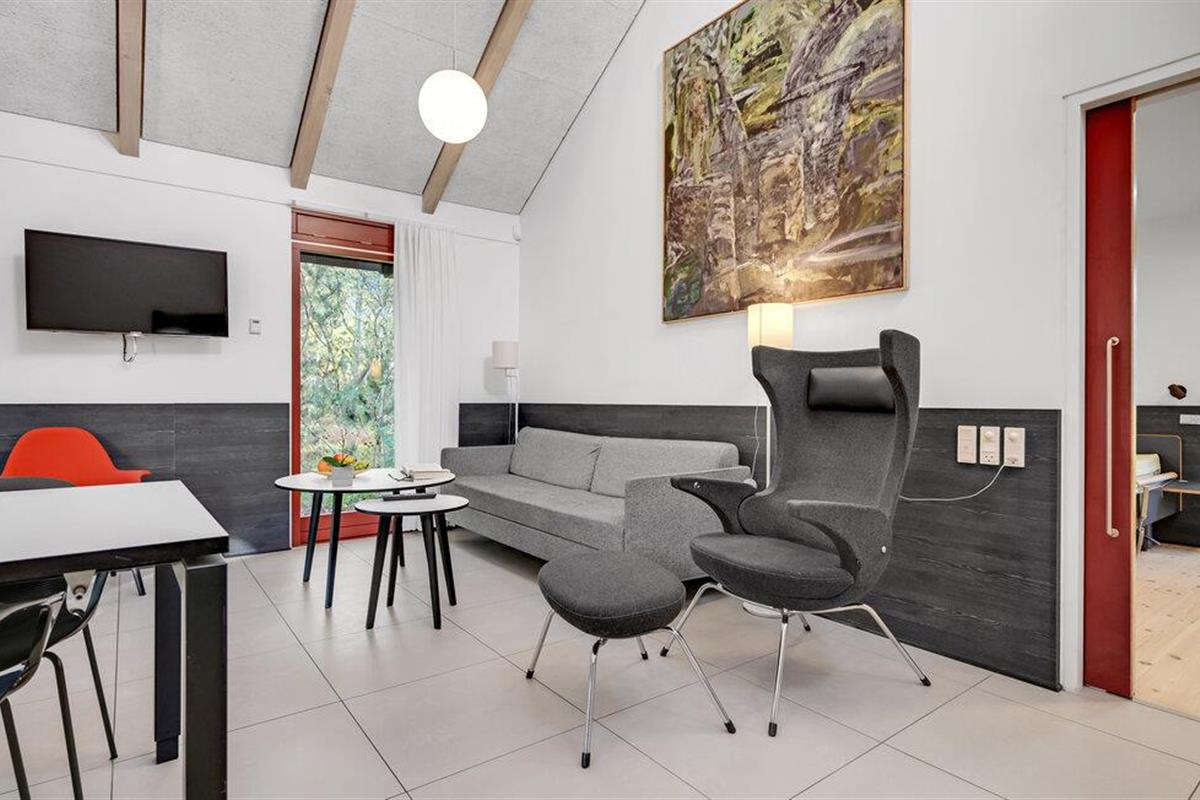 Dit lichte en vriendelijke vakantiehuis verwelkomt maximaal vijf gasten en een extra peuter. In het praktische vakantiehuis vindt u een gezellige woonkamer met keuken. Hier kunt u het zich comfortabel maken voor de houtkachel. Veel licht stroomt door de grote ramen. Het huis is licht en mooi ingericht.
