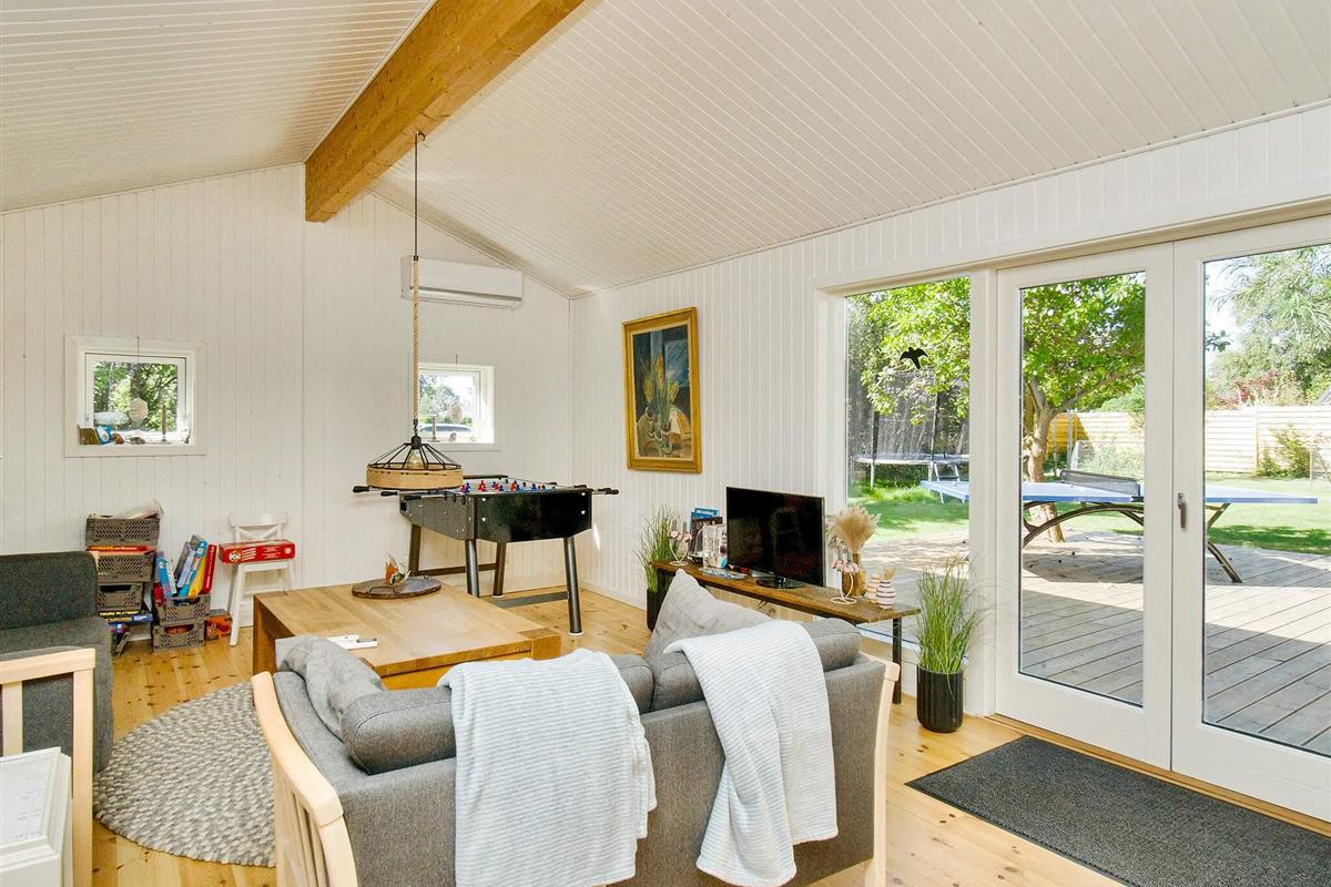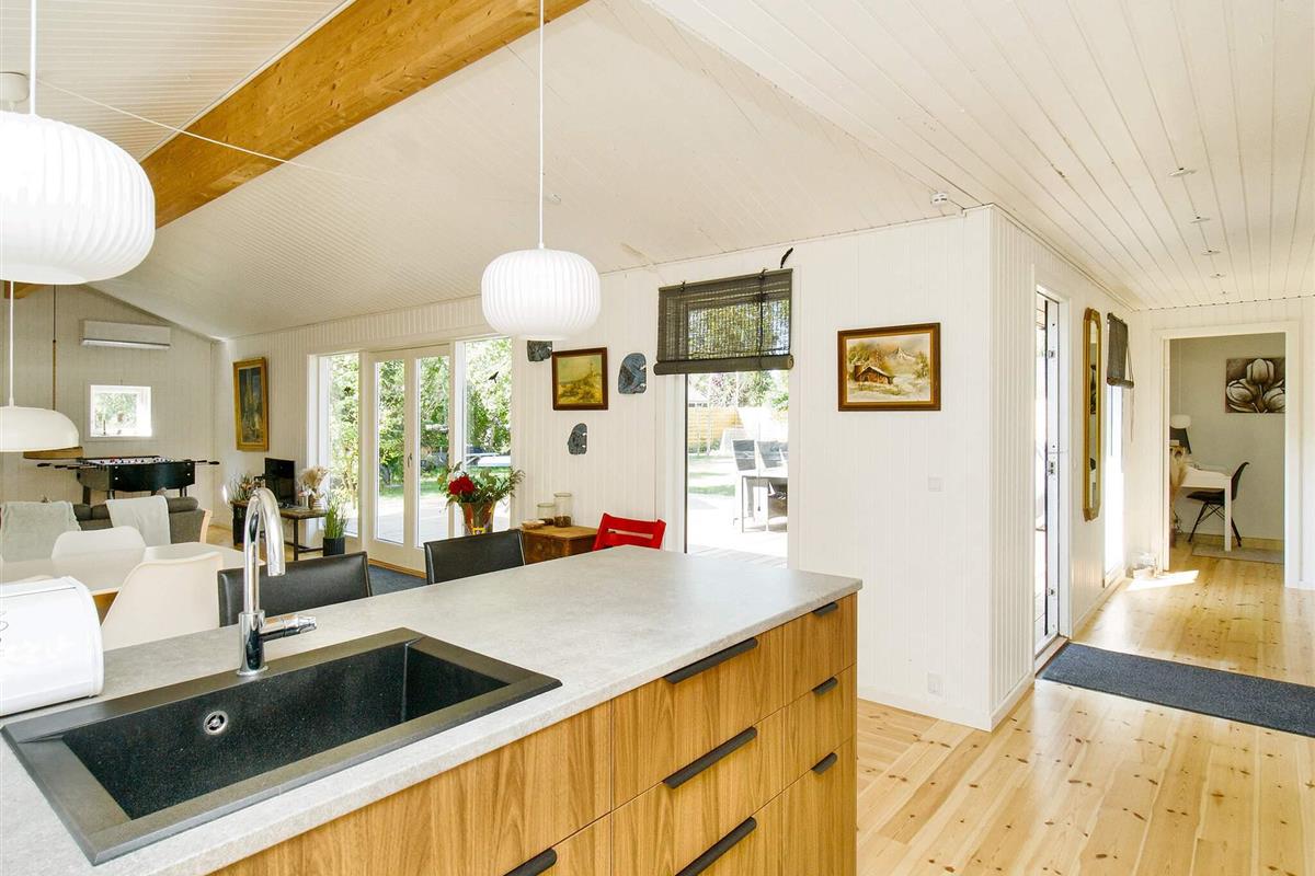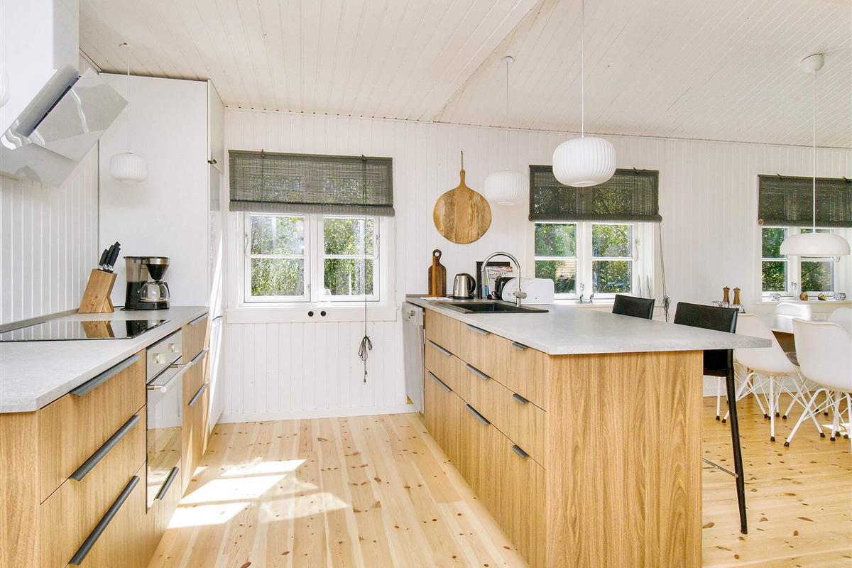 Dieses geräumige Ferienhaus mit 96 m² großer Wohnfläche ist ideal für Familien oder kleine Gruppen, die einen komfortablen und entspannten Aufenthalt suchen. Es verfügt über drei Schlafzimmer, jeweils mit zwei Einzelbetten, und bietet somit Platz für bis zu sechs Personen. Auf einem 1.200 m² großen Naturgrundstück in einer ruhigen Ferienhausanlage gelegen, garantiert das Haus Privatsphäre und Ruhe.