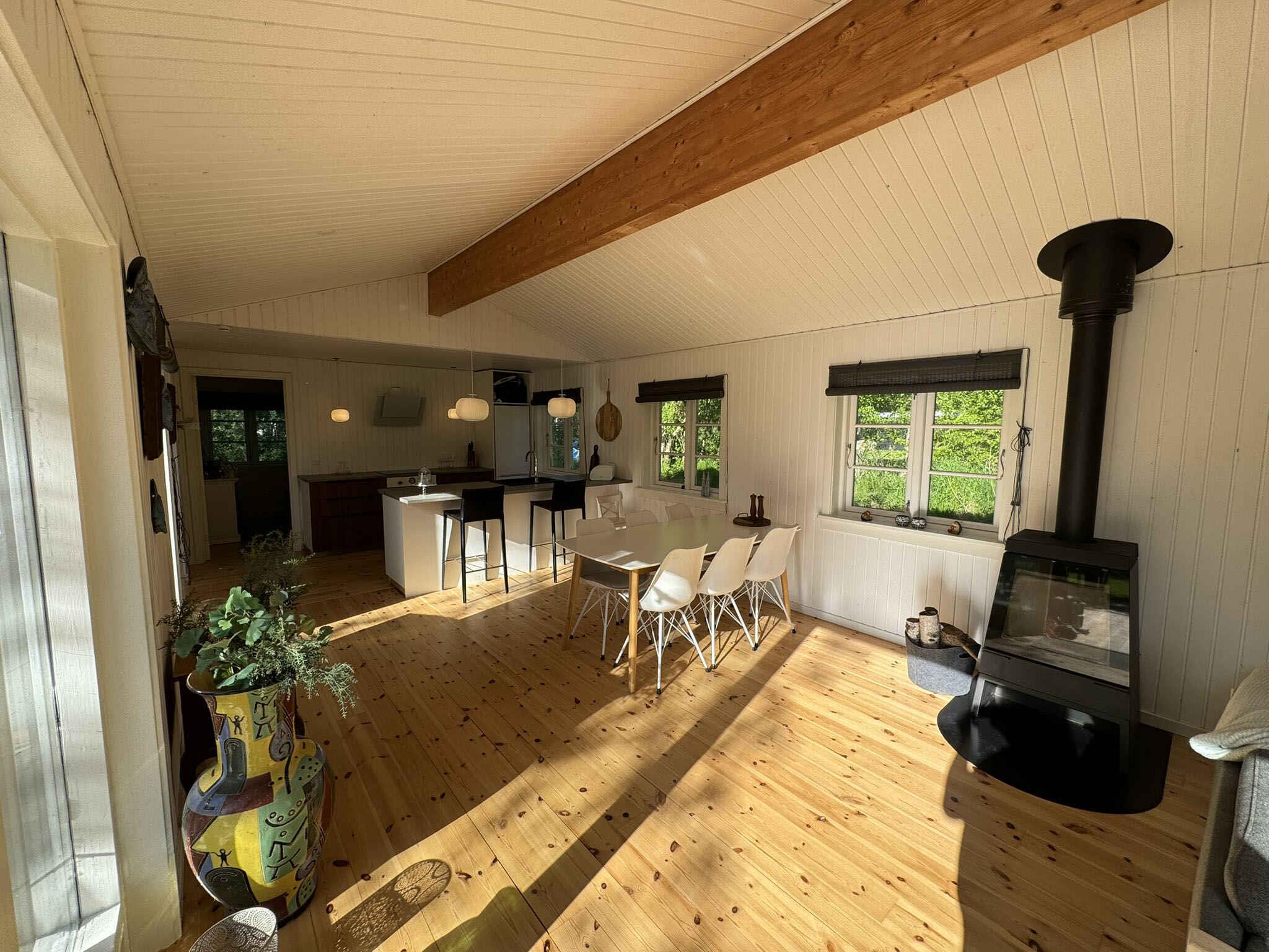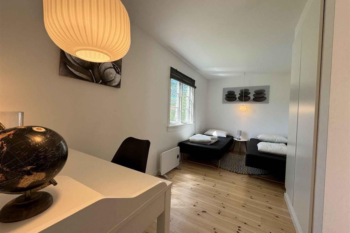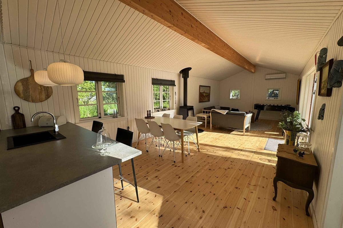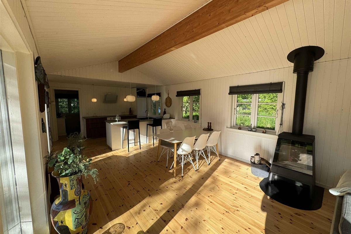 Het huisje is mooi gerenoveerd met behoud van de oude ziel in het huisje, het huis is goed ingericht met 3 goede grote kamers (6 eenpersoonsbedden, kunnen allemaal worden omgezet in tweepersoonsbedden) en de ruime woonkamer is verbonden met de keuken en gevuld met spelletjes en tafelvoetbal en veel ruimte. 's Avonds schijnt het mooiste licht in de woonkamer, en het is vanzelfsprekend om te genieten van een glas wijn, elkaars gezelschap en gewoon de rust voelen neerdalen. Er is ook een televisie in de woonkamer met Google ChromeCast. Het huis is gelegen op een helder en open perceel met goede mogelijkheden om te spelen en balspelen. 2 grote deuren naar het mooie gras waar het is ingericht voor alle mensen aan tafel - en er is natuurlijk gewoon de mogelijkheid om van het uitzicht op de tuin te genieten met een goed boek in de hand. Je kunt genieten van de prachtige natuur rond Grevinge, slechts een paar minuten lopen naar de waterkant en anderszins mooie rustige omgeving, in de zomer wordt een steiger opgesteld op het dichtstbijzijnde strand, breng evt. je eigen kajak mee. De relatief beschutte wateren nodigen uit tot zowel kajakken als windsurfen. Er zijn goede mogelijkheden om het hele jaar door te vissen, waarbij de fjord veel vissoorten biedt. Er zijn ook mogelijkheden voor boswandelingen en golf op een afstand van niet meer dan 20 km. Het huis ligt dicht bij Roskilde en Holbæk. Kopenhagen is in minder dan een uur met de auto te bereiken. In de directe omgeving van Odsherred zijn verschillende grote toeristische attracties. In de gemeente Lejre zelf bevindt zich het Legendarische Land Lejre, waar je gemakkelijk dagenlang kunt wandelen en kunt leven in wat Denemarken was toen alles begon. Op Egholm Castle vind je een groot oorlogsmuseum. In Brorfelde, bekend van de kerstkalender "Kerststerren", vind je de Brorfelde Observatorium, dat regelmatig evenementen heeft voor zowel kinderen als gezinnen. In Holbæk trekt "Oplevelsescenter Nyvang" jaarlijks meer dan een paar honderdduizend gasten. De bruisende kindercultuur heeft de zomervakantie door evenementen voor kinderen. Er is een Turks badhuis met de mooiste wellness-aanbiedingen, er zijn muziekconcerten, een klimpark en een strandgebied bij de oude haven. De herberg van de schoenmaker in Kirke Såby en restaurant Suri in Holbæk koken aan het absoluut sublieme einde van de schaal. Over het algemeen hebben Holbæk, Roskilde en de omgeving vele, vele culturele aanbiedingen voor zowel kinderen als volwassenen. Niet te huur voor jeugdgroepen.
