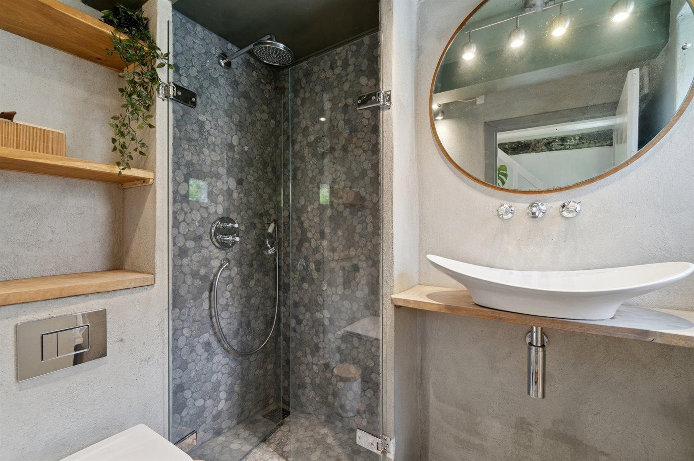 Er is 1 badkamer met douchehok en 2 toiletten, waarvan 1 gastentoilet. Er is vloerverwarming in 1 badkamer.