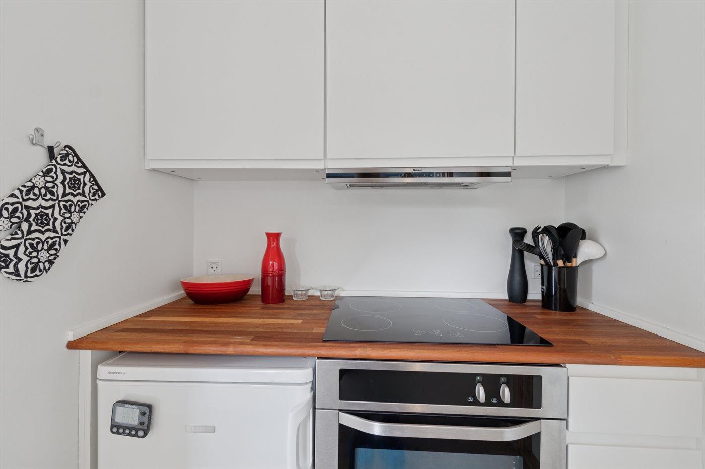 De keuken is uitgerust met koelkast Er zijn 4 keramische kookplaten, heteluchtoven en vaatwasser.