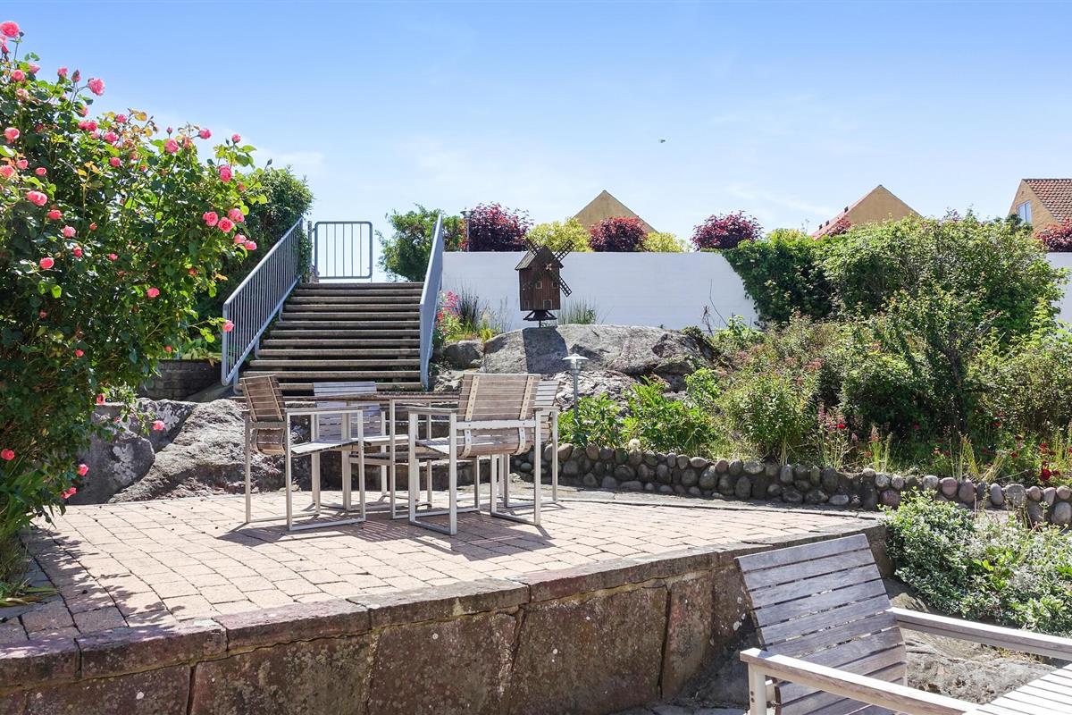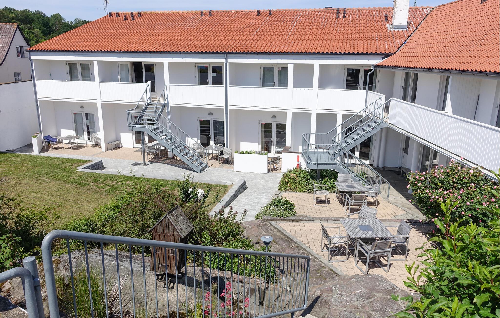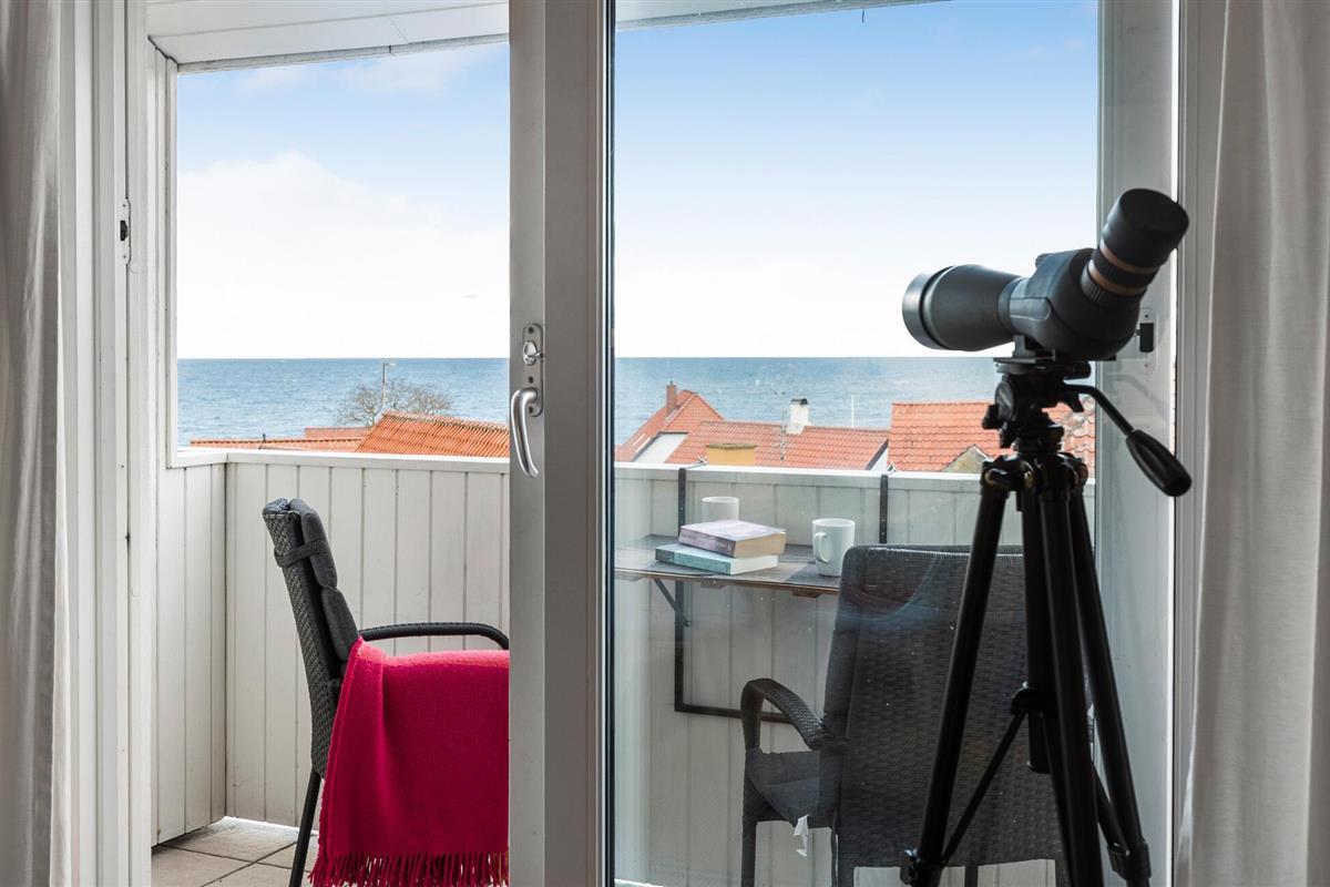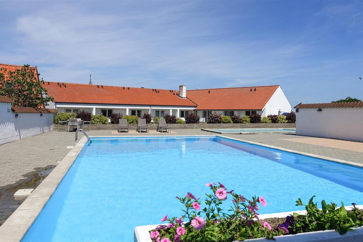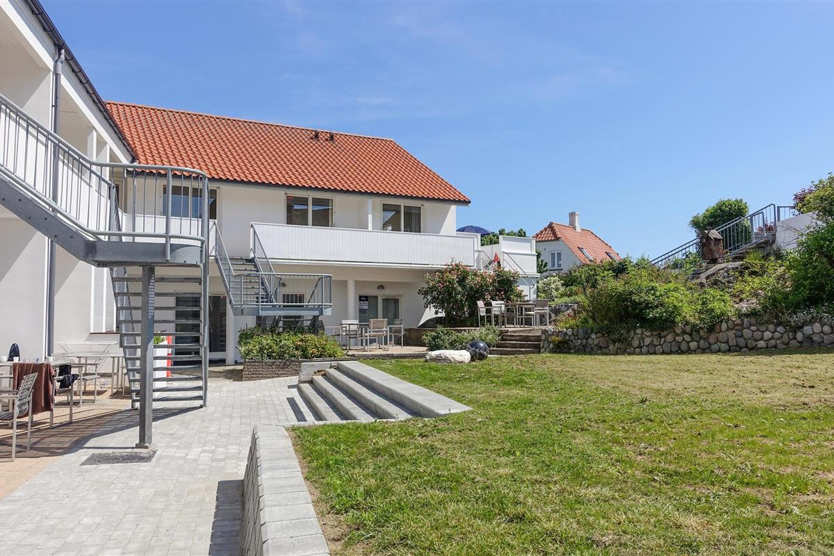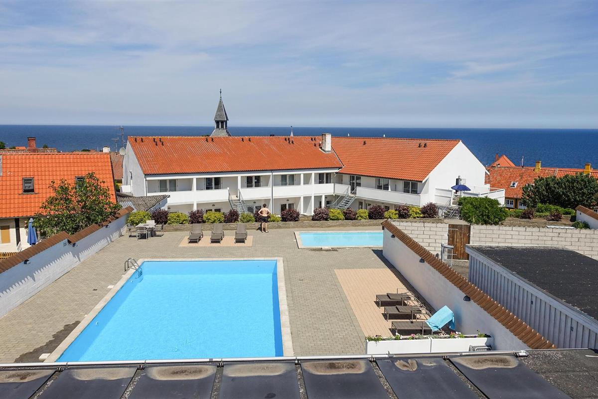 Vakantiewoning in het populaire vakantiehotel Casa Blanca met uitzicht op zee en toegang tot het gemeenschappelijke zwembad in het centrum van Gudhjem.