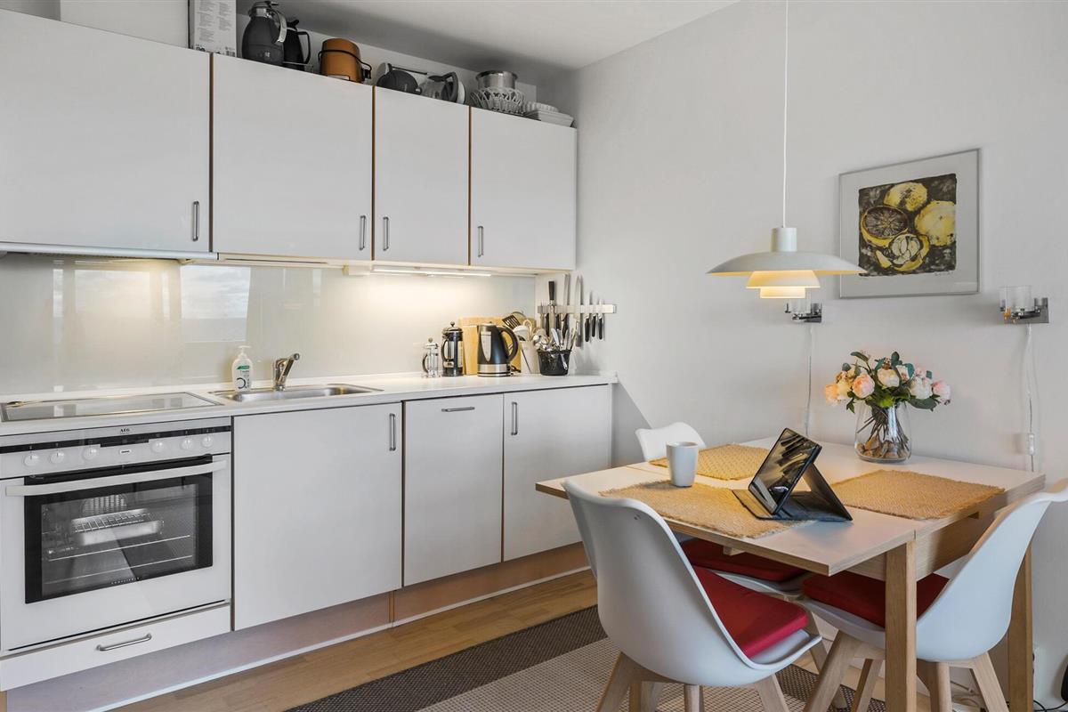 Bereid je favoriete gerechten in de goed uitgeruste keuken, die in open verbinding staat met de woonkamer waar je je kunt verzamelen rond de eettafel en kunt ontspannen op de bank. De slaapkamer is aangenaam ruim en wordt van de woonkamer gescheiden door een schuifdeur. Je hebt ook toegang tot een klein terras met buitenmeubilair waar je kunt genieten van de frisse lucht.