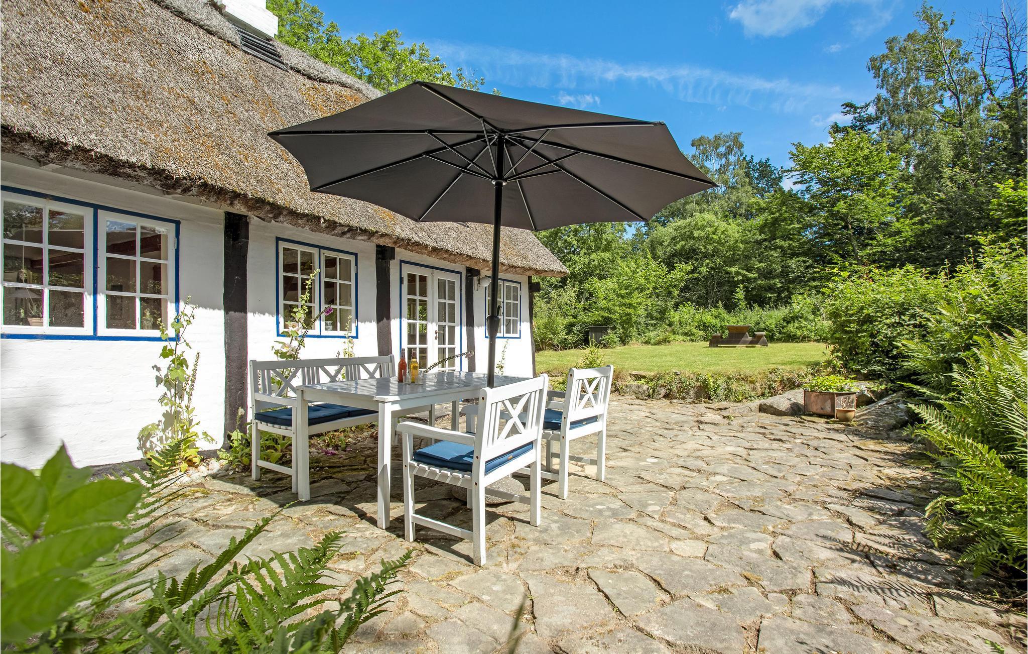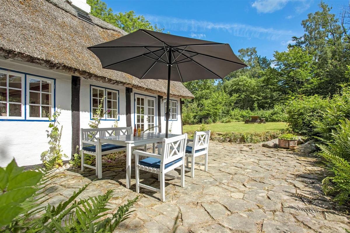 Charmant vakwerkhuis met rieten dak, houtkachel en grote tuin nabij het pittoreske Gudhjem.