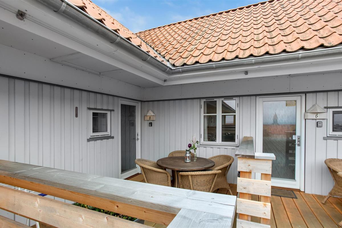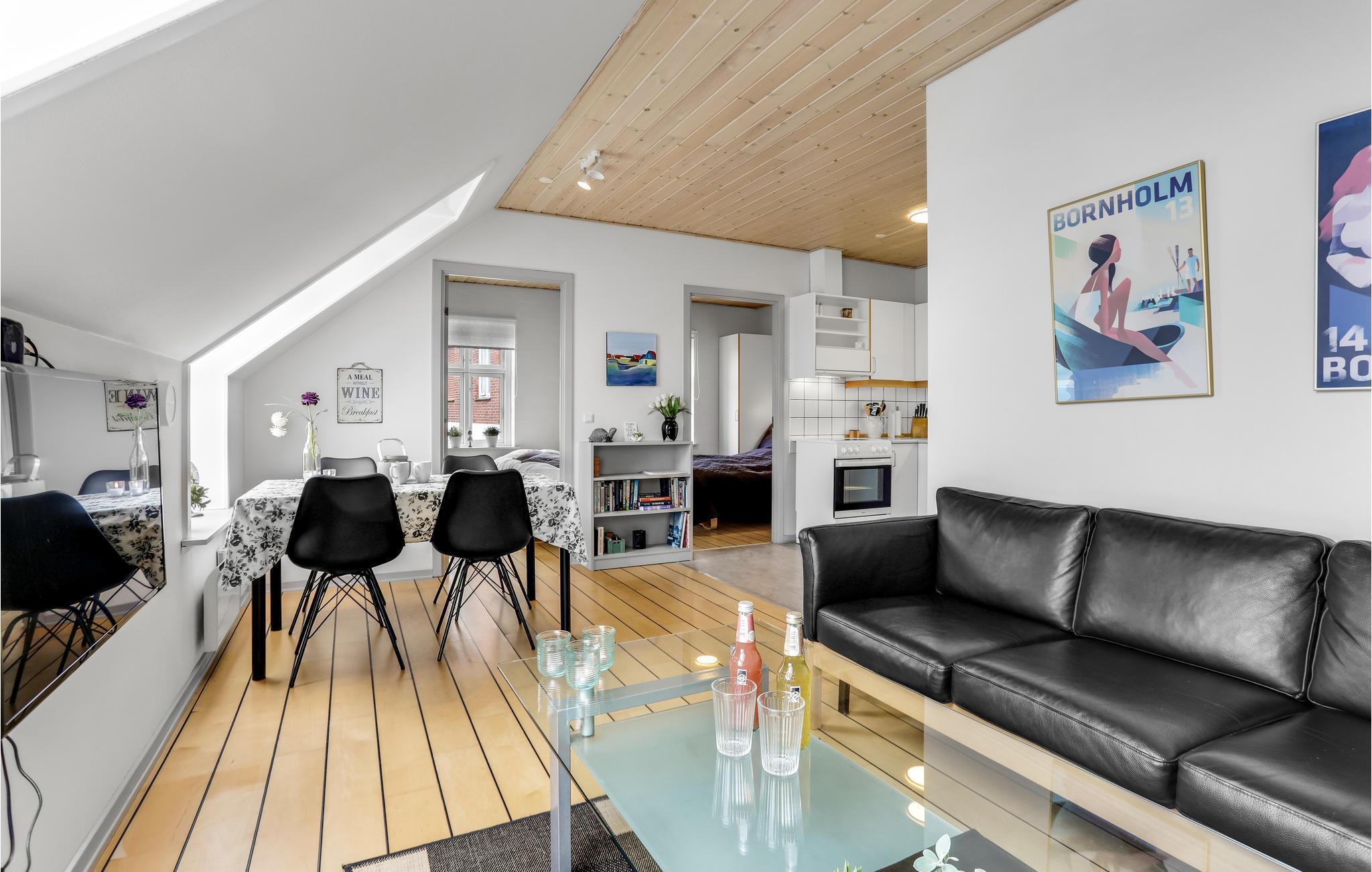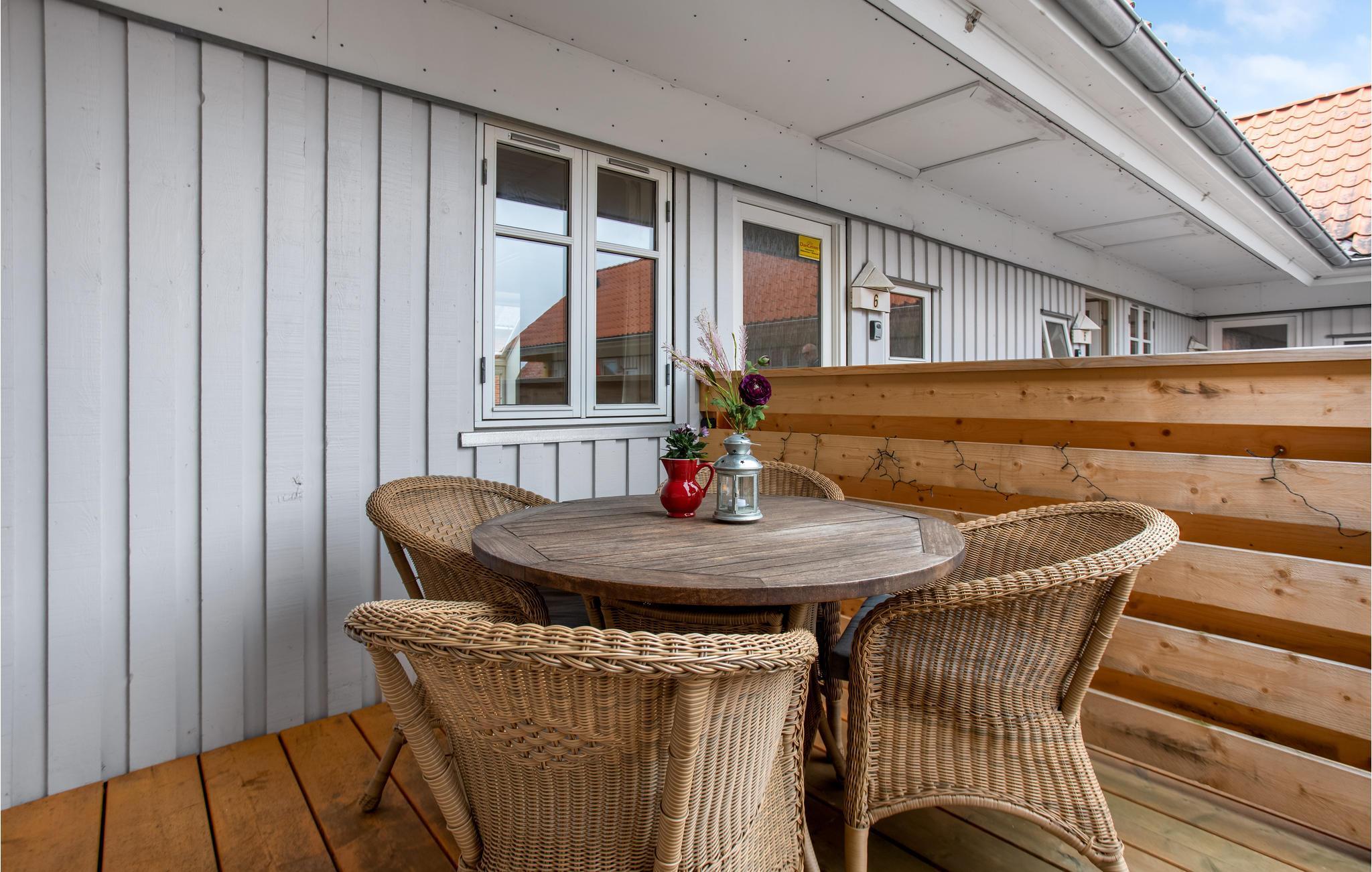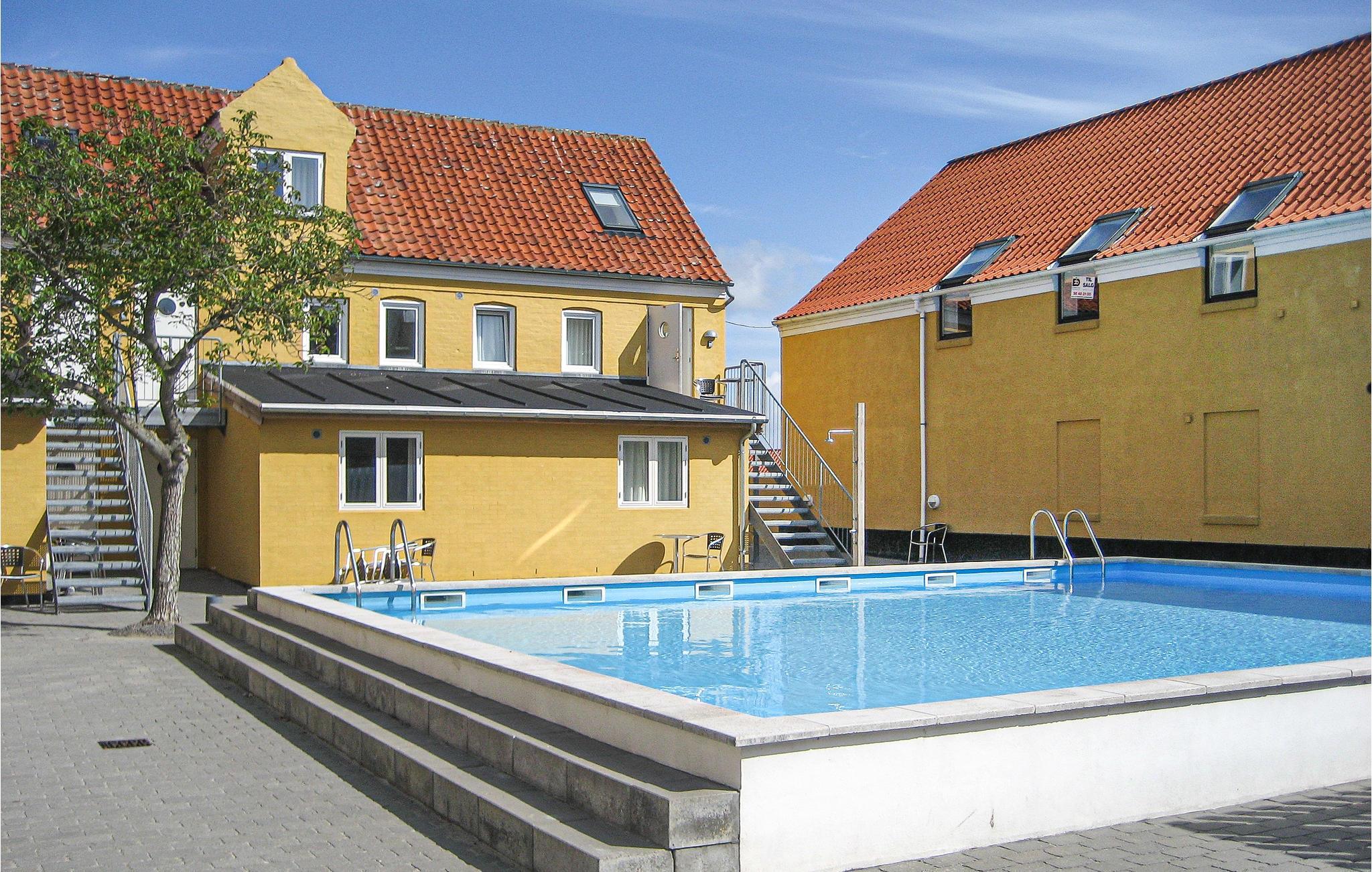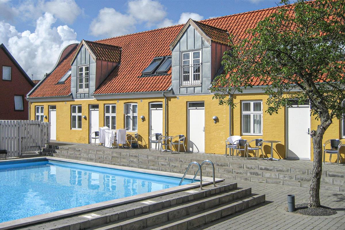 Geweldig vakantieappartement in het Købmandsgården complex, in het hart van Gudhjem en met toegang tot een gedeeld buitenzwembad.