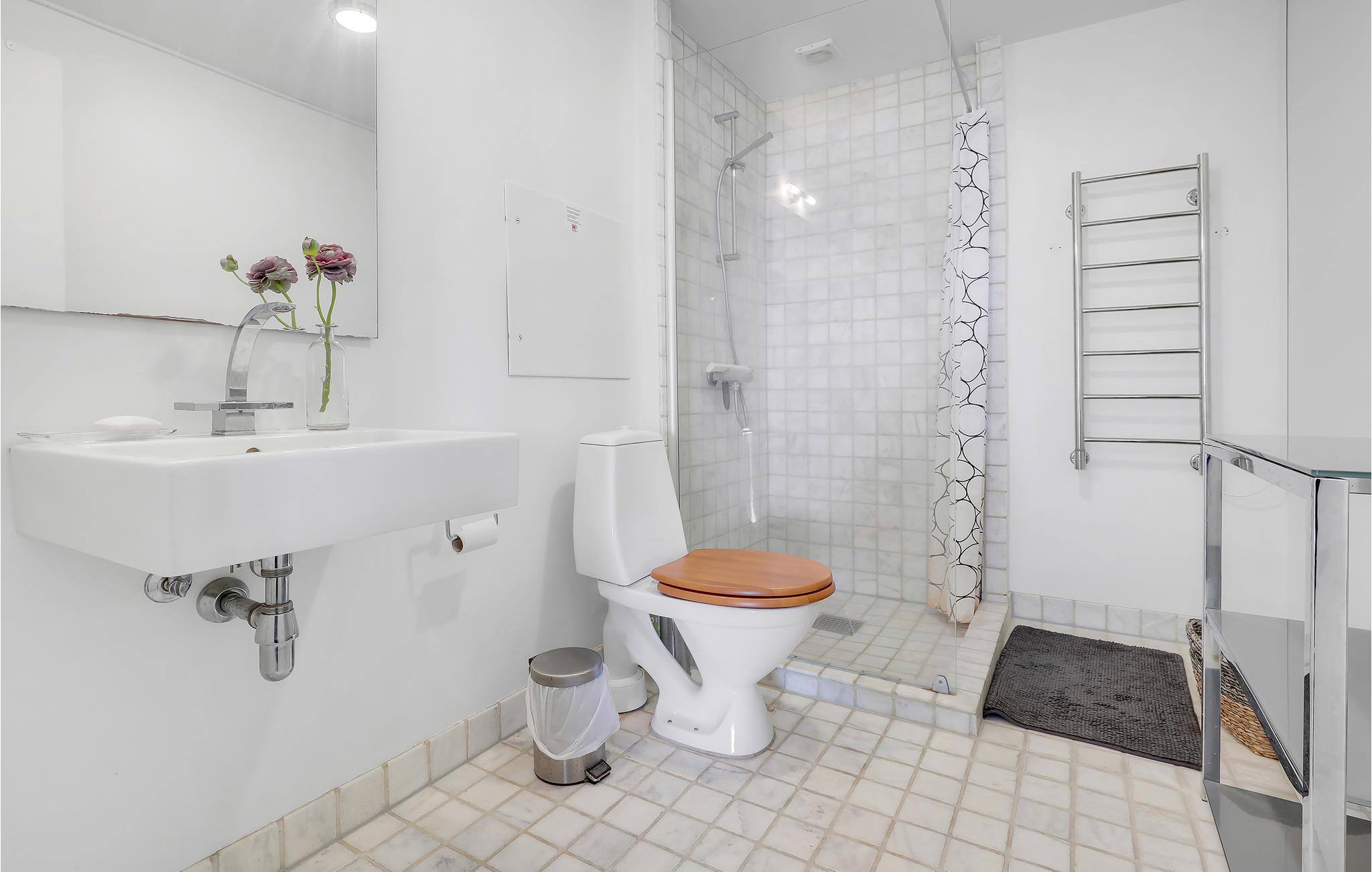 Badkamer (nr. 1) - Toilet: warm en koud water. Douche