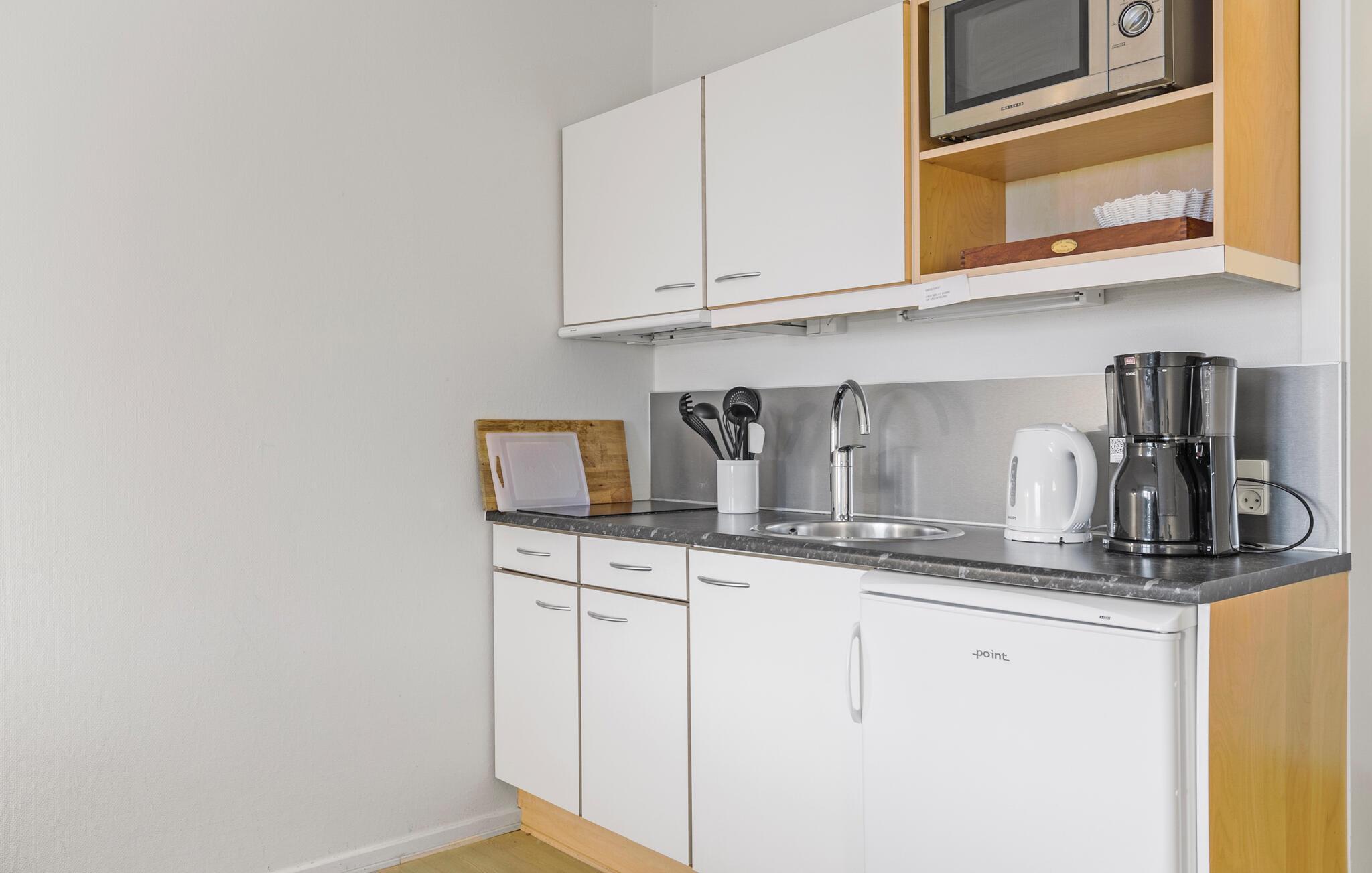Je appartement op de begane grond in het pittoreske Gudhjem maakt indruk met zijn compacte formaat en gezellige sfeer. Tegelijkertijd biedt het vanaf het terras uitzicht op de glinsterende zee. De lichte inrichting van het appartement creëert een uitnodigende sfeer. Je kunt ontspannen in de woonkamer na een drukke dag. Je kunt ook de kitchenette gebruiken om lekkere hapjes te bereiden voor je excursies. Geniet van het uitzicht op het groen door de grote ramen en neem de rust in je op. Begin de dag met een kopje koffie op het kleine privéterras, omgeven door verzorgd groen.