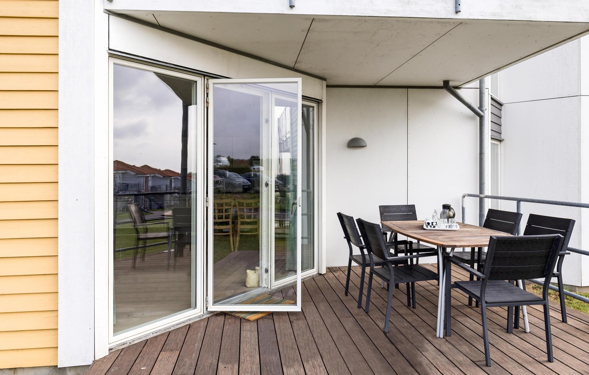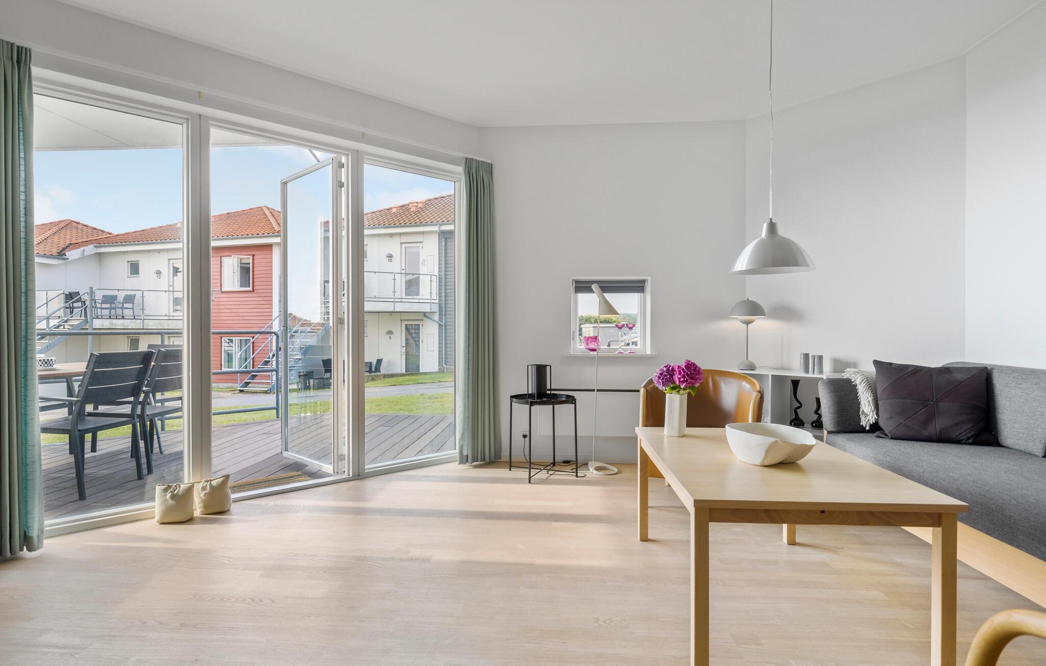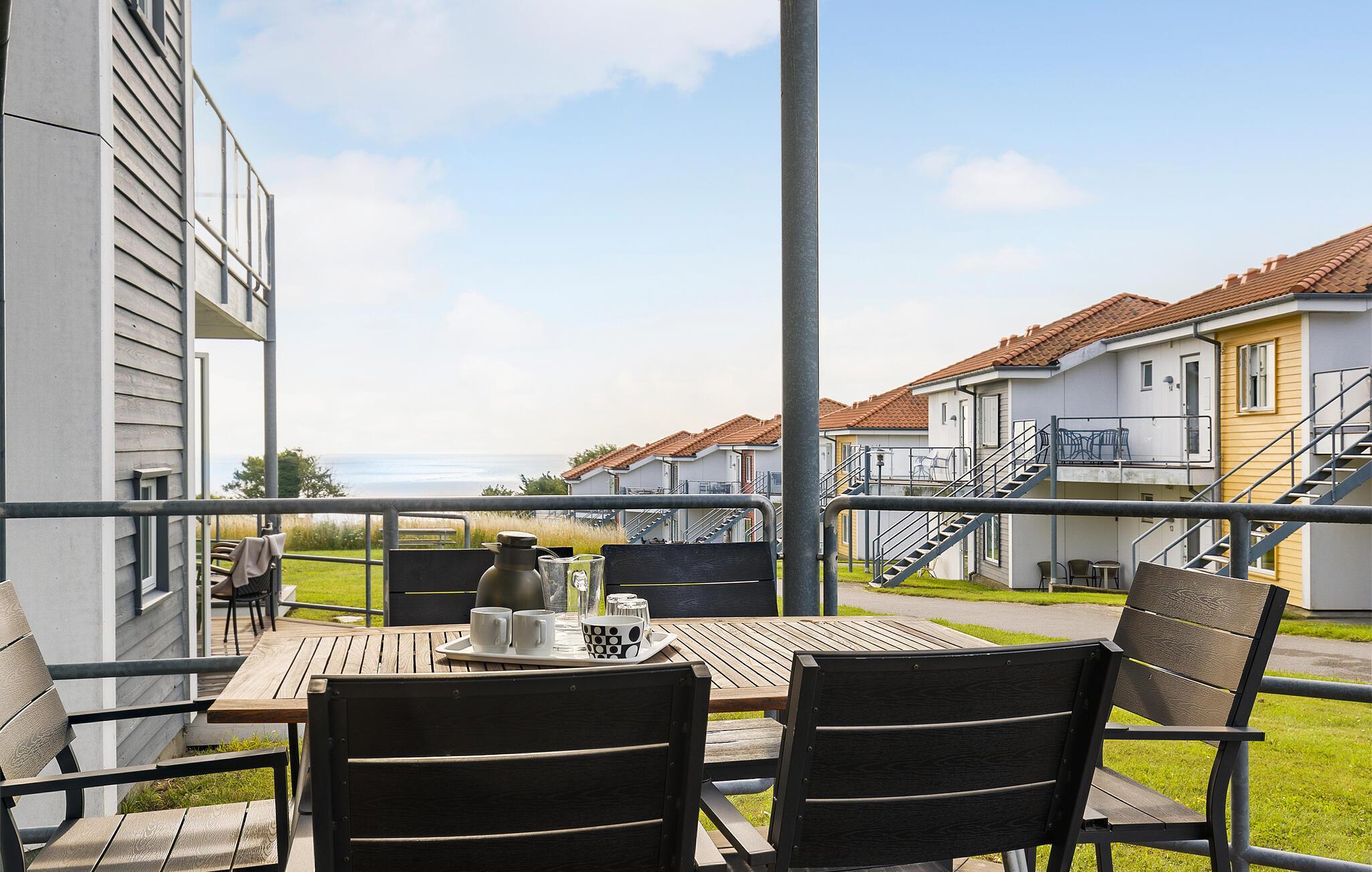 Ontdek dit lichte vakantieappartement in Gudhjem met zeezicht en twee terrassen, ideaal voor een ontspannen verblijf aan de Baltische Zee.