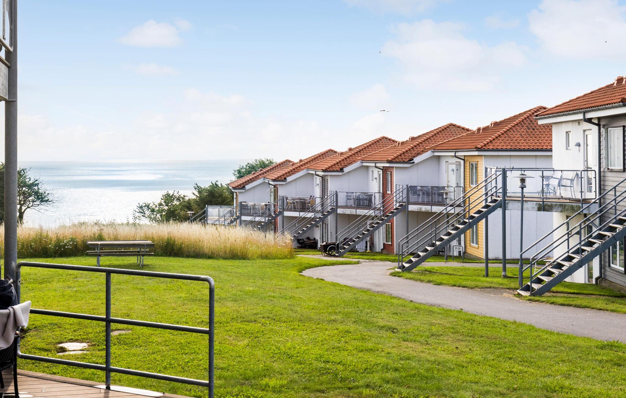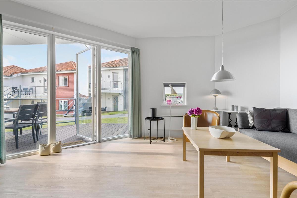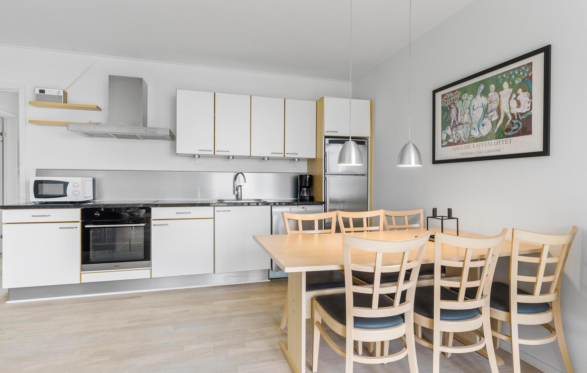 Ontdek dit lichte vakantieappartement in Gudhjem met zeezicht en twee terrassen, ideaal voor een ontspannen verblijf aan de Baltische Zee.