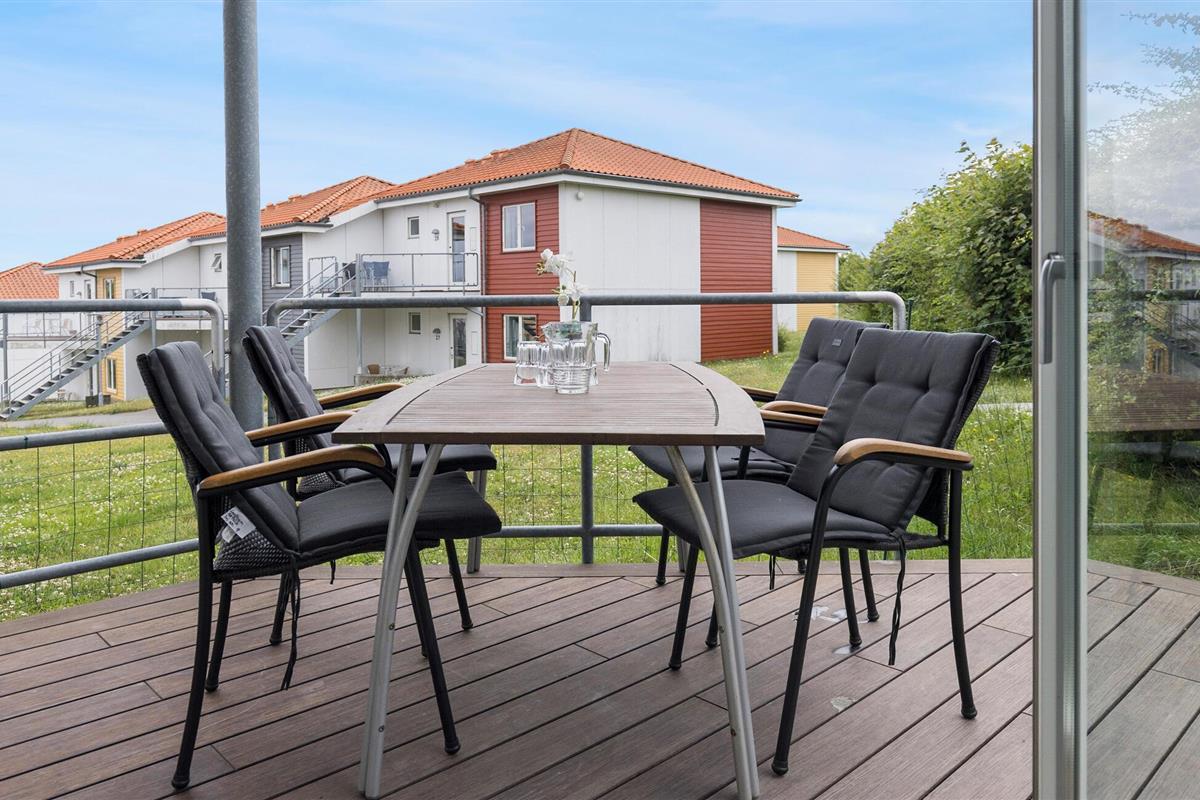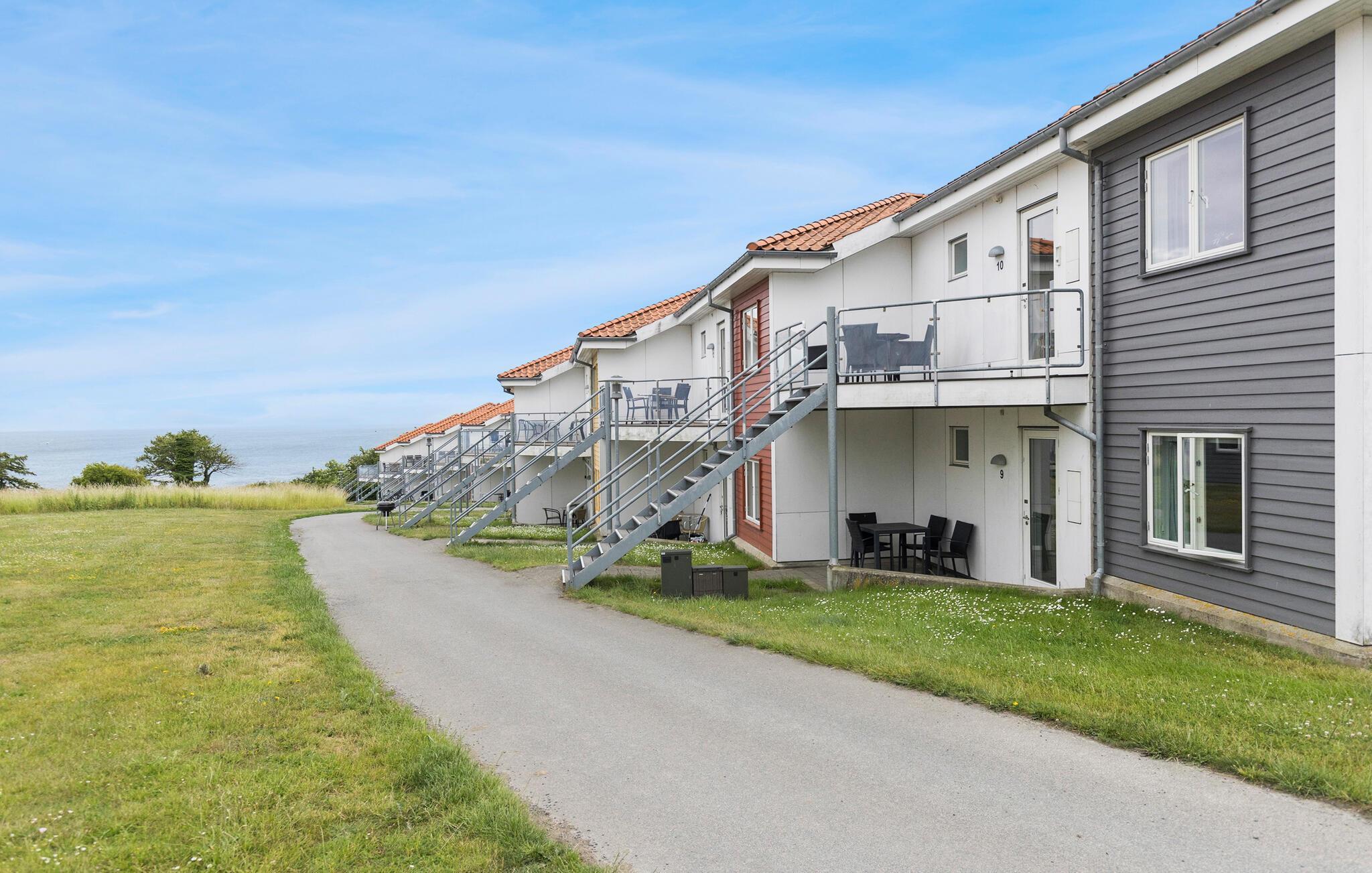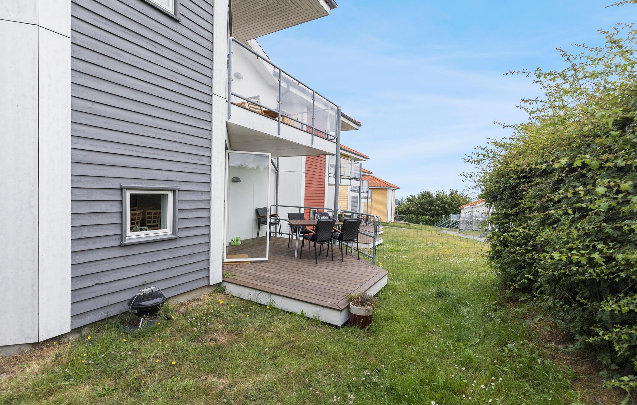 Ontdek dit lichte vakantieappartement in Gudhjem met zeezicht, twee terrassen en moderne voorzieningen voor een ontspannen verblijf.