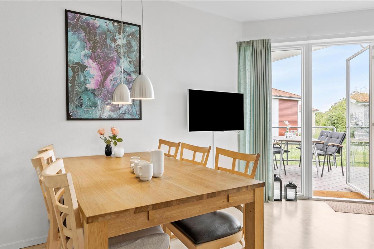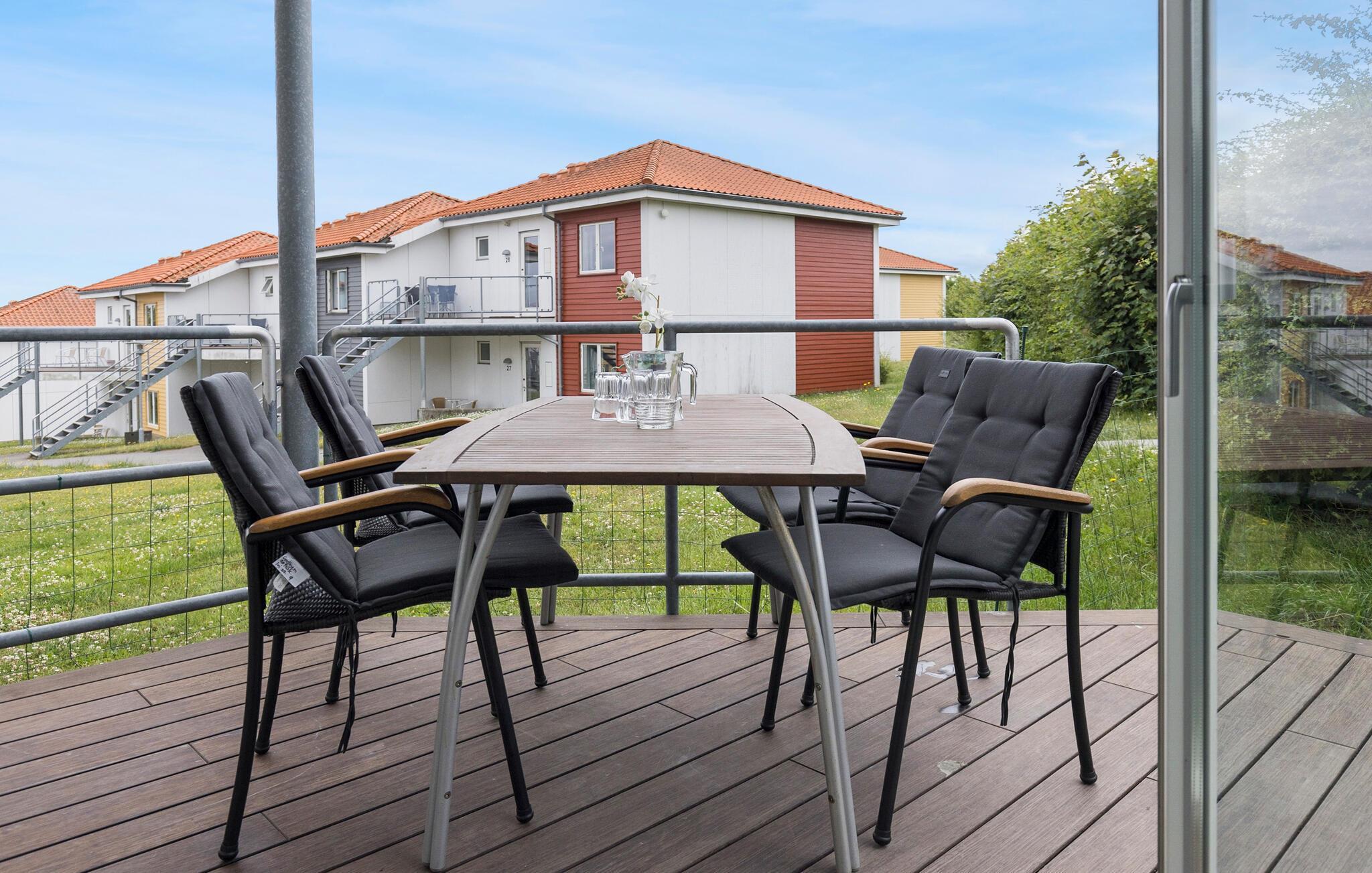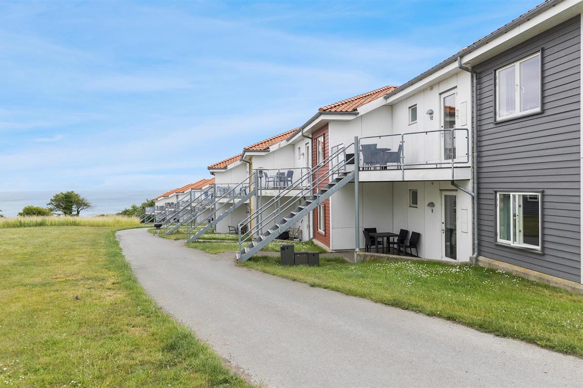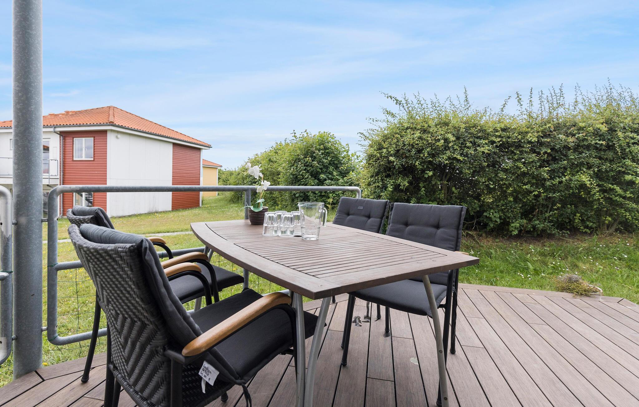 Ontdek dit lichte vakantieappartement in Gudhjem met zeezicht, twee terrassen en moderne voorzieningen voor een ontspannen verblijf.