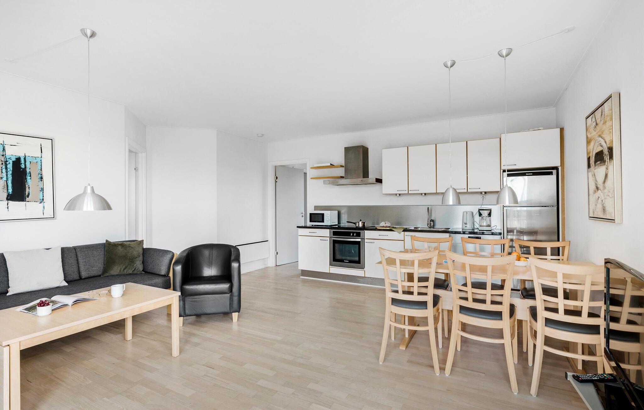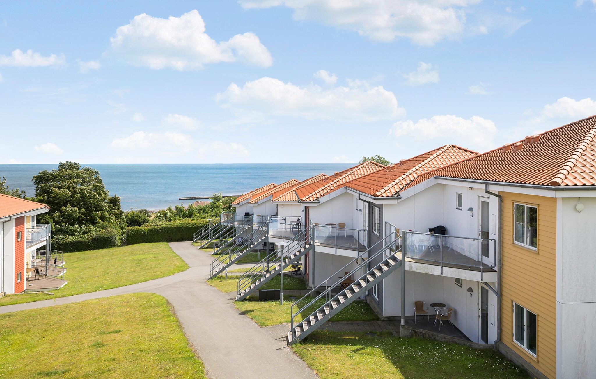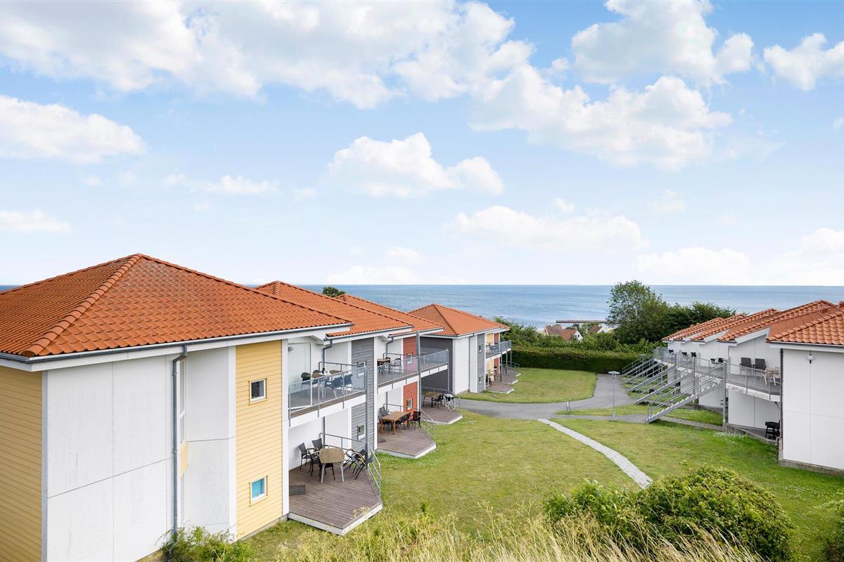 Comfortabel vakantieappartement met zeezicht in Gudhjem, ideaal voor ontspanning en avontuur op Bornholm.