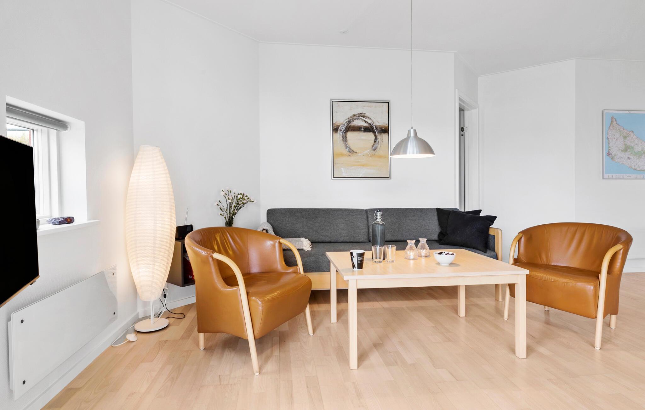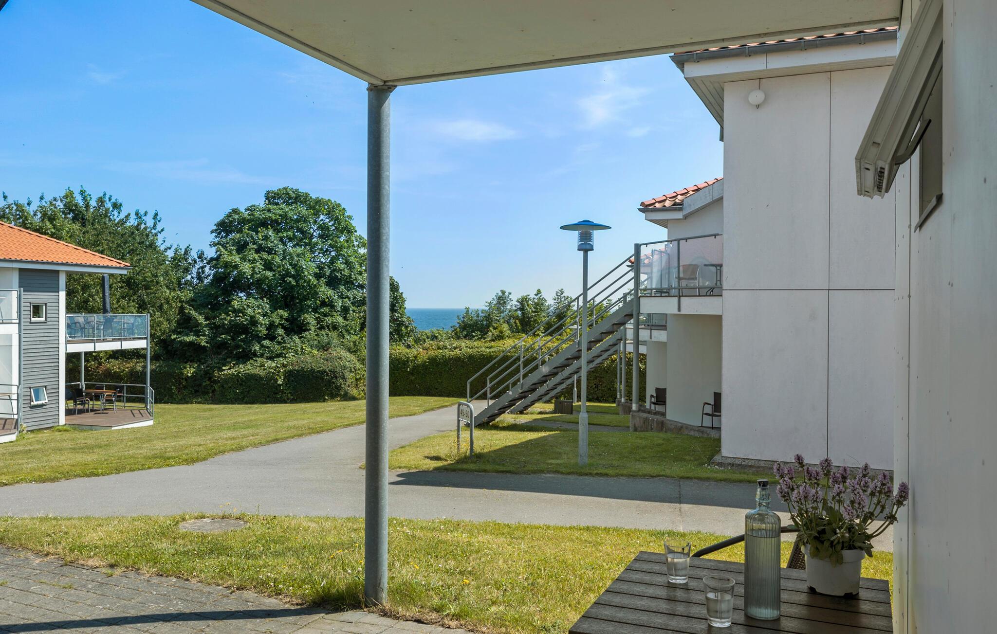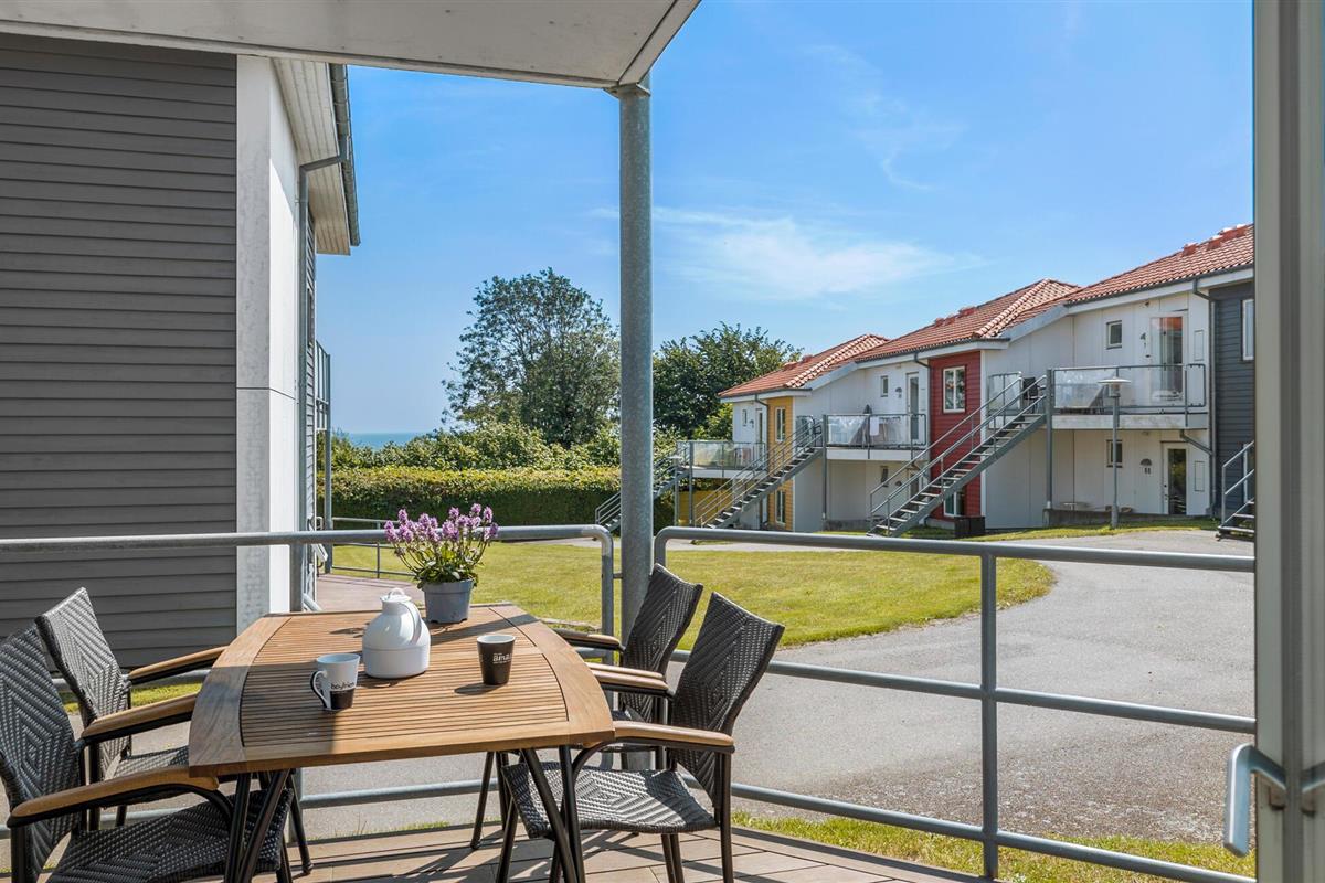 Ontdek dit lichte appartement in Gudhjem met gedeeltelijk zeezicht en twee terrassen, perfect voor een ontspannen vakantie aan de kust.