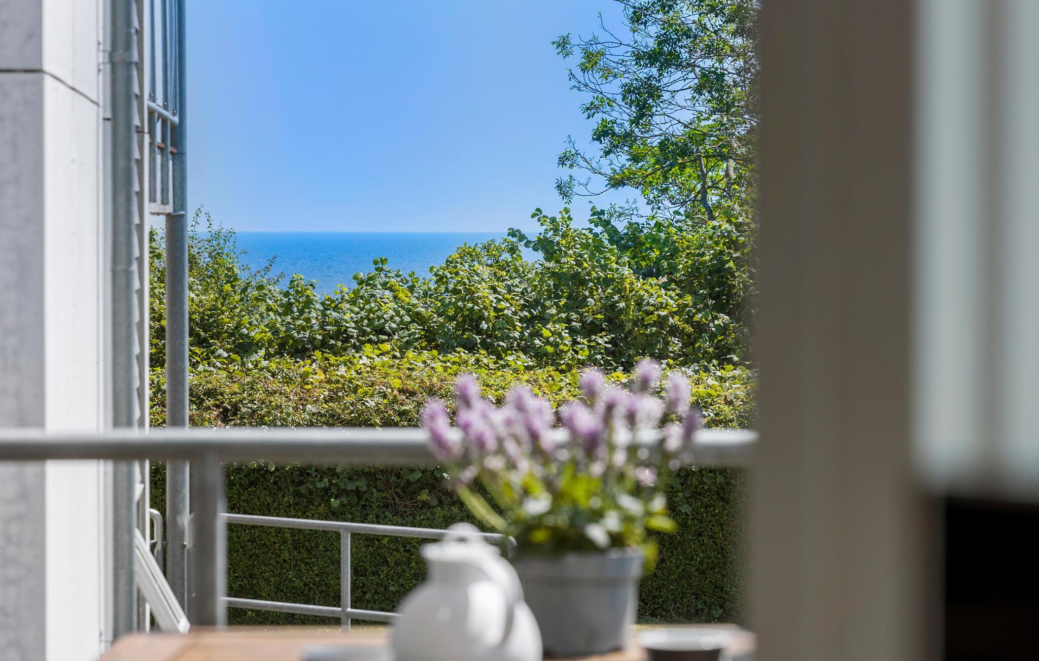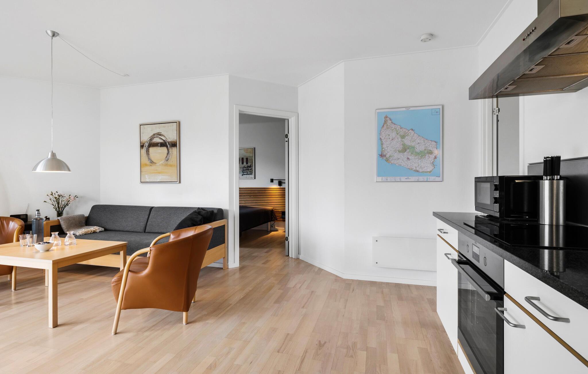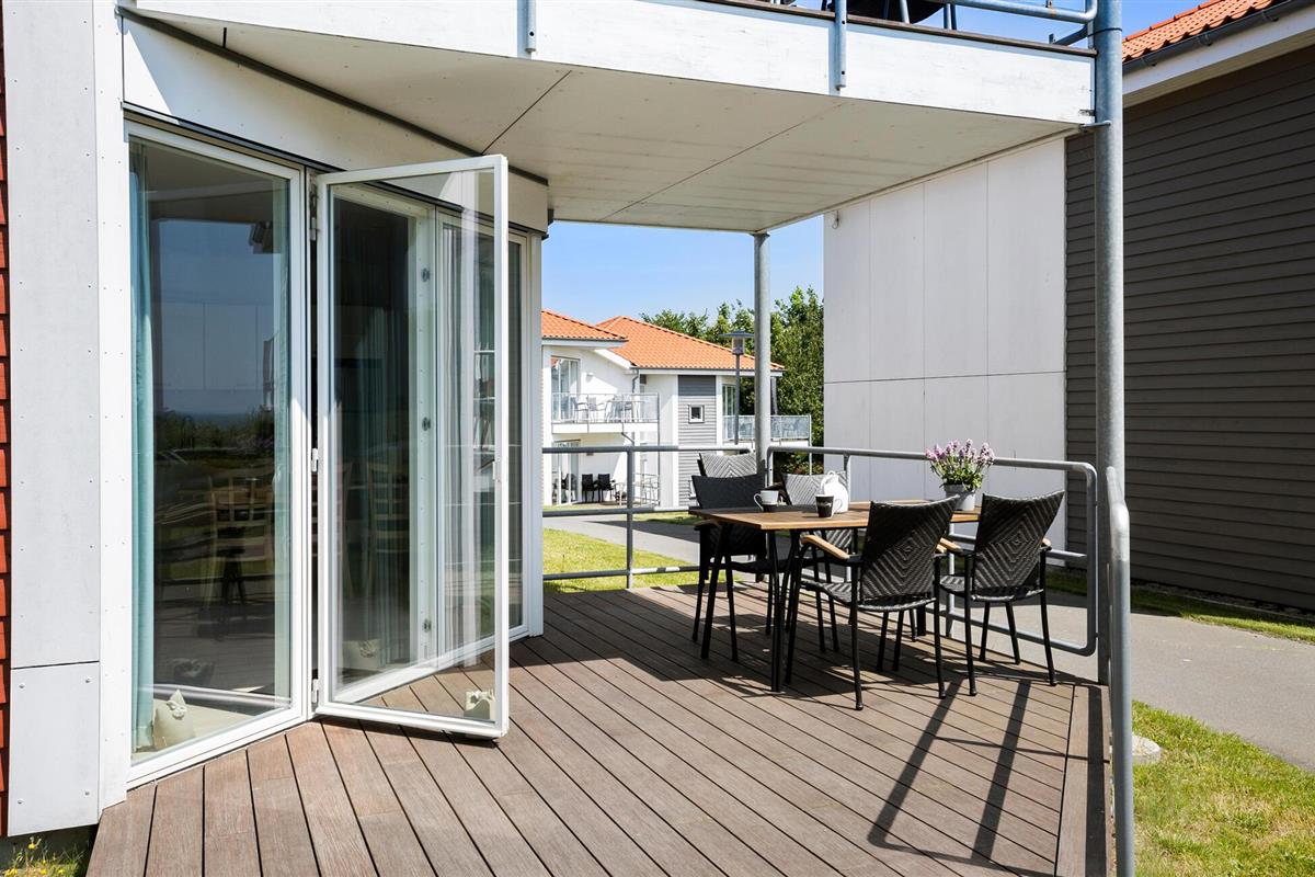 Ontdek dit lichte appartement in Gudhjem met gedeeltelijk zeezicht en twee terrassen, perfect voor een ontspannen vakantie aan de kust.