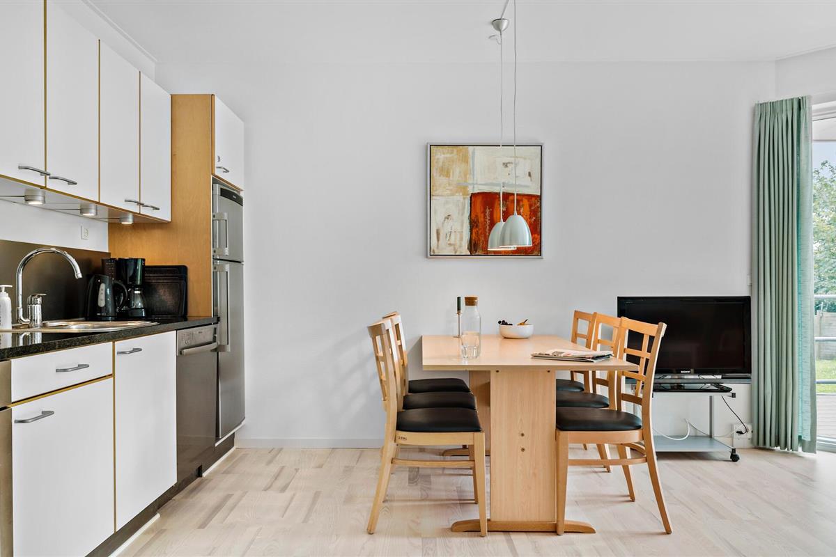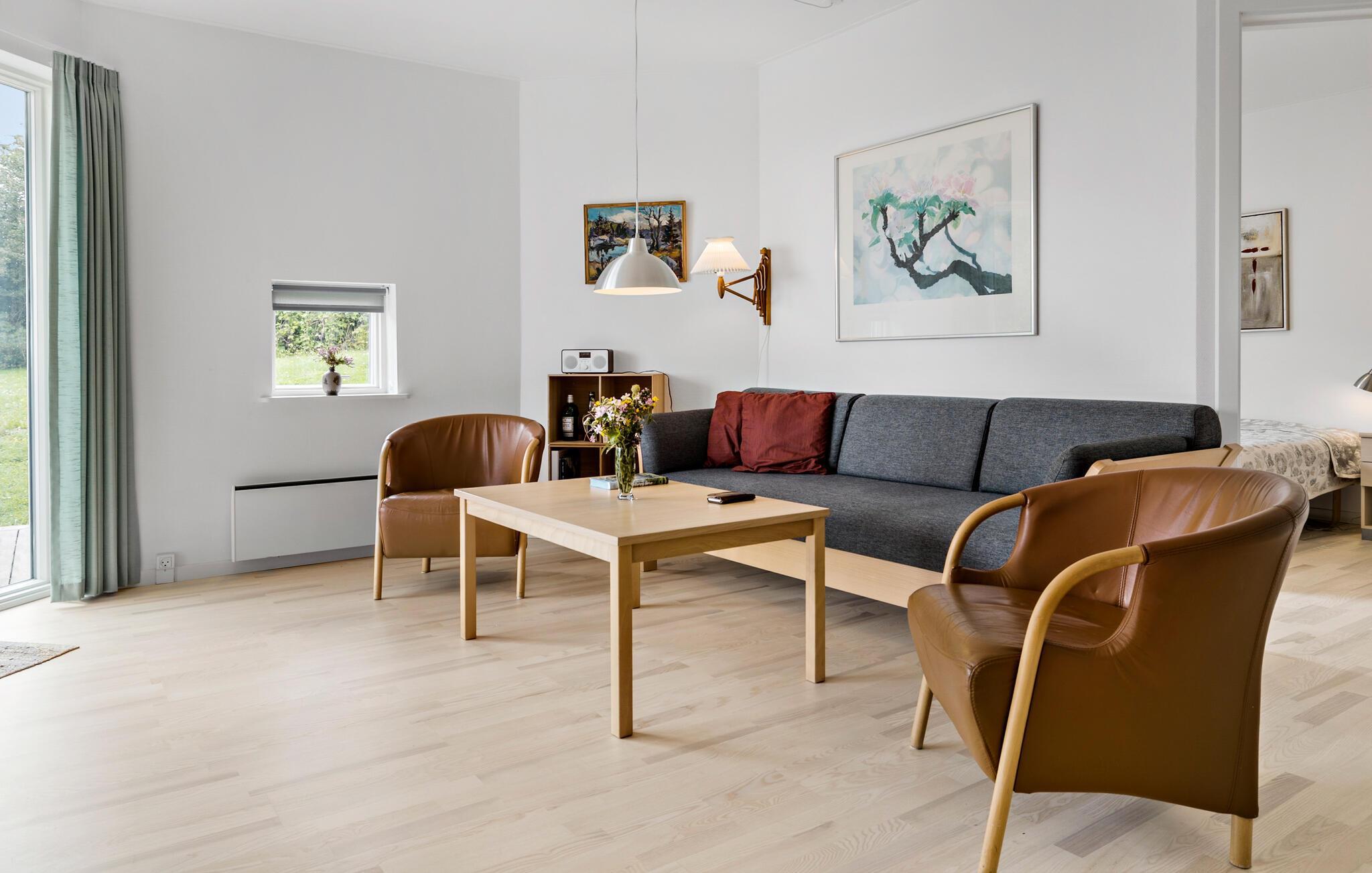 Ontspan in dit lichte appartement met zeezicht in het charmante Gudhjem op Bornholm.