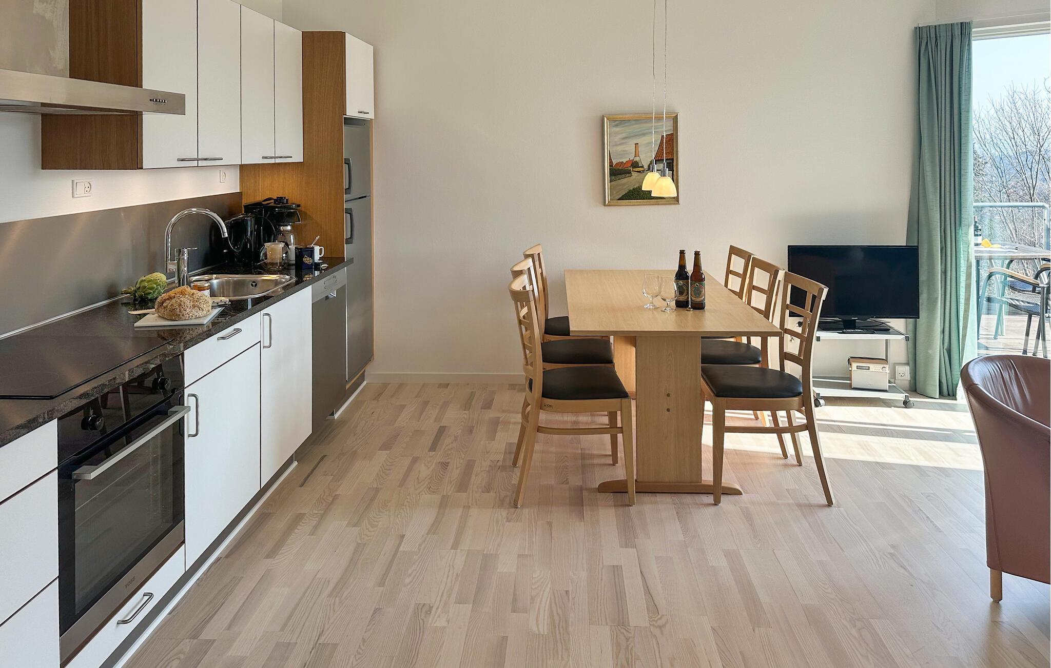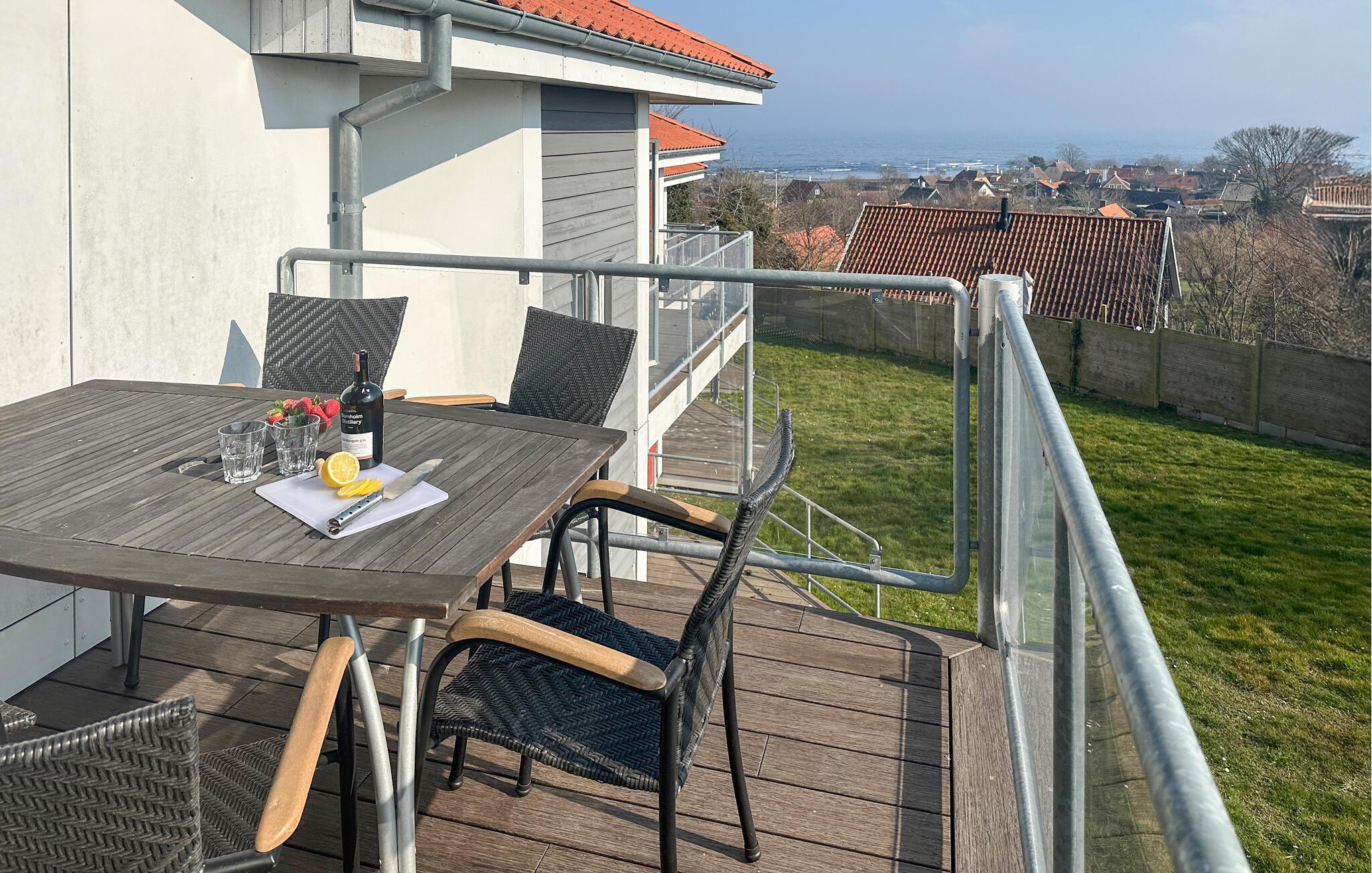 Geniet van deze lichte vakantiewoning in Gudhjem met twee terrassen en uitzicht op de Baltische Zee, ideaal voor een ontspannen vakantie.