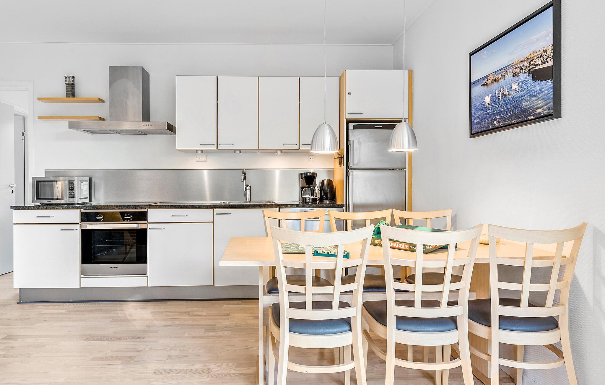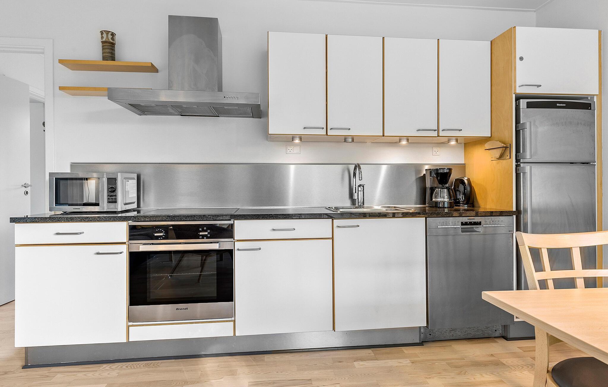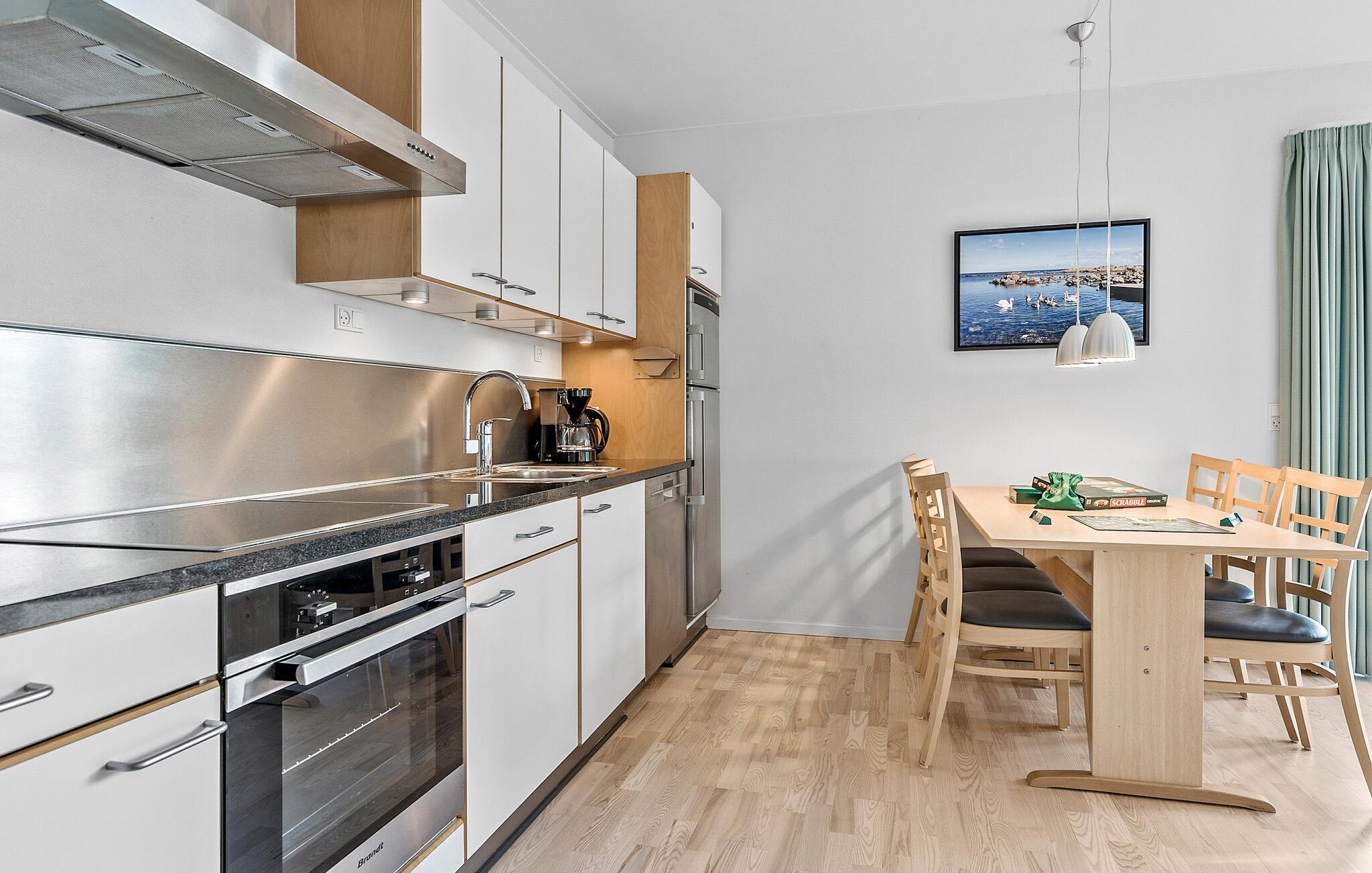 Welkom in dit charmante appartement in Gudhjem, dat deel uitmaakt van een groter complex en tal van vergelijkbare accommodaties biedt. De lichtovergoten flat maakt indruk met zijn vriendelijke sfeer en hoogwaardige inrichting, die voor een gezellige sfeer zorgen. Hier kun je optimaal genieten van je vakantie, of je nu samen kookt en eet, spelletjes speelt of ontspant. De twee terrassen, een voor de ingang en de andere naast de woonkamer, bieden je een ideaal toevluchtsoord. De zee ligt op loopafstand van je appartement.
