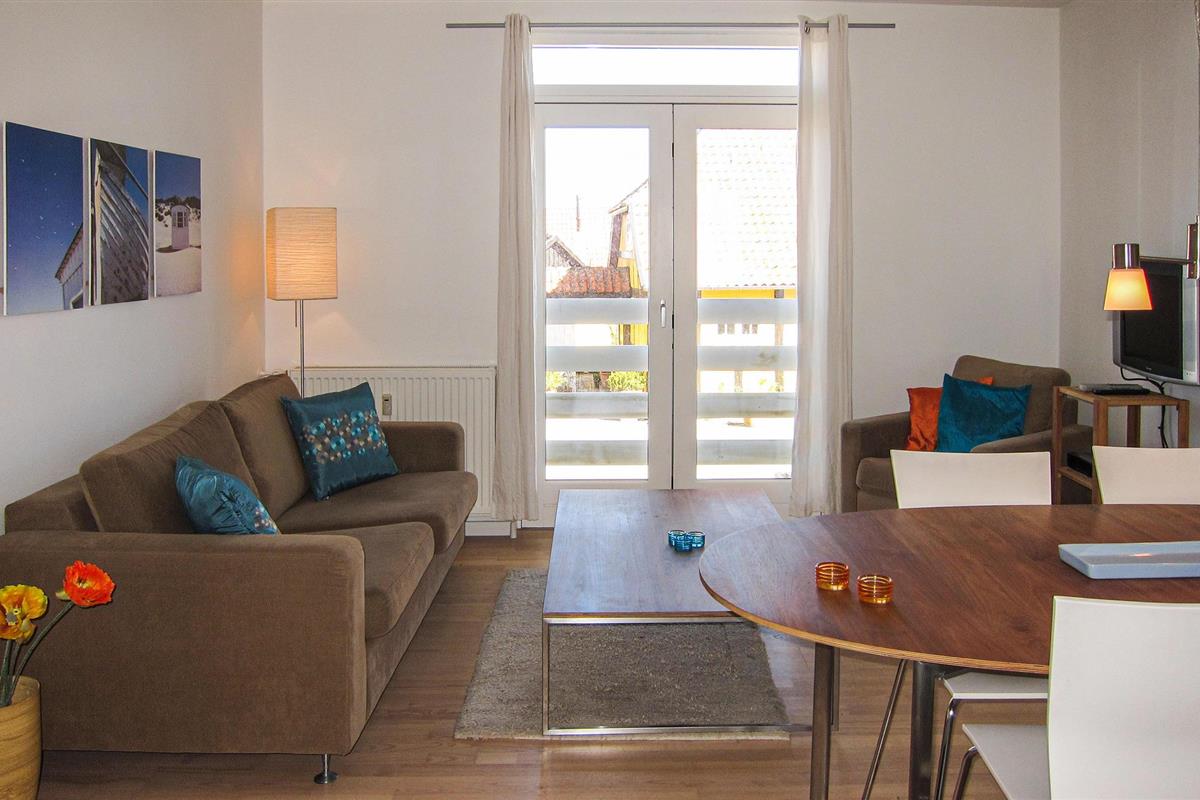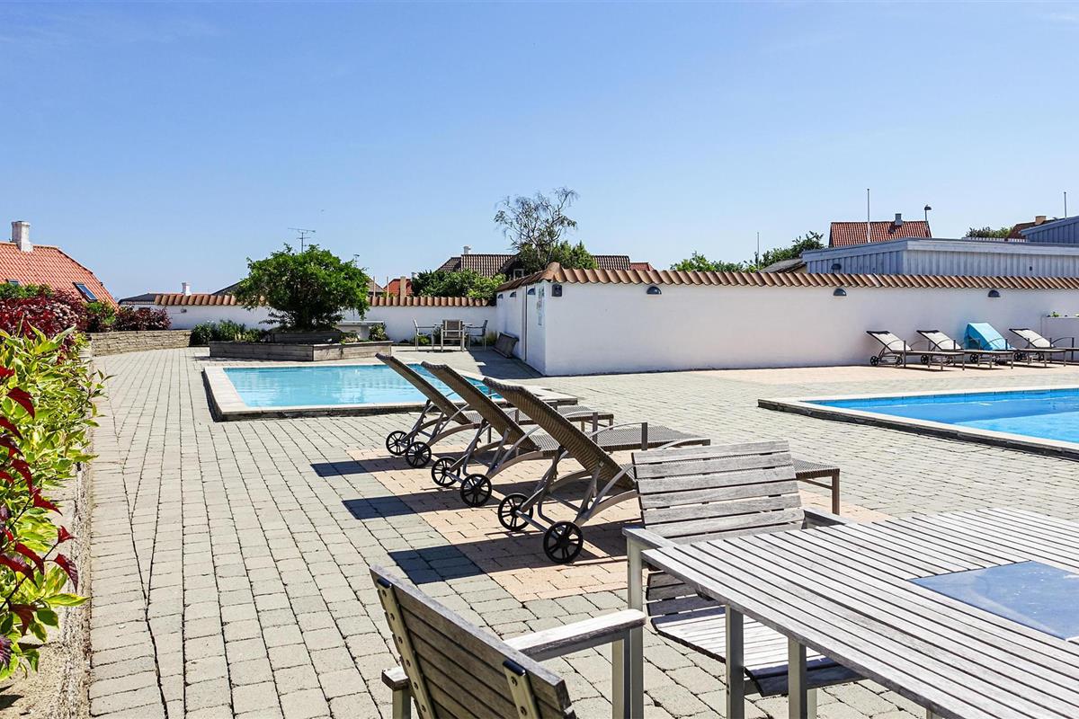Vakantiewoning in het populaire vakantiehotel Casa Blanca met zeezicht en toegang tot het gemeenschappelijke zwembad in het centrum van Gudhjem.
