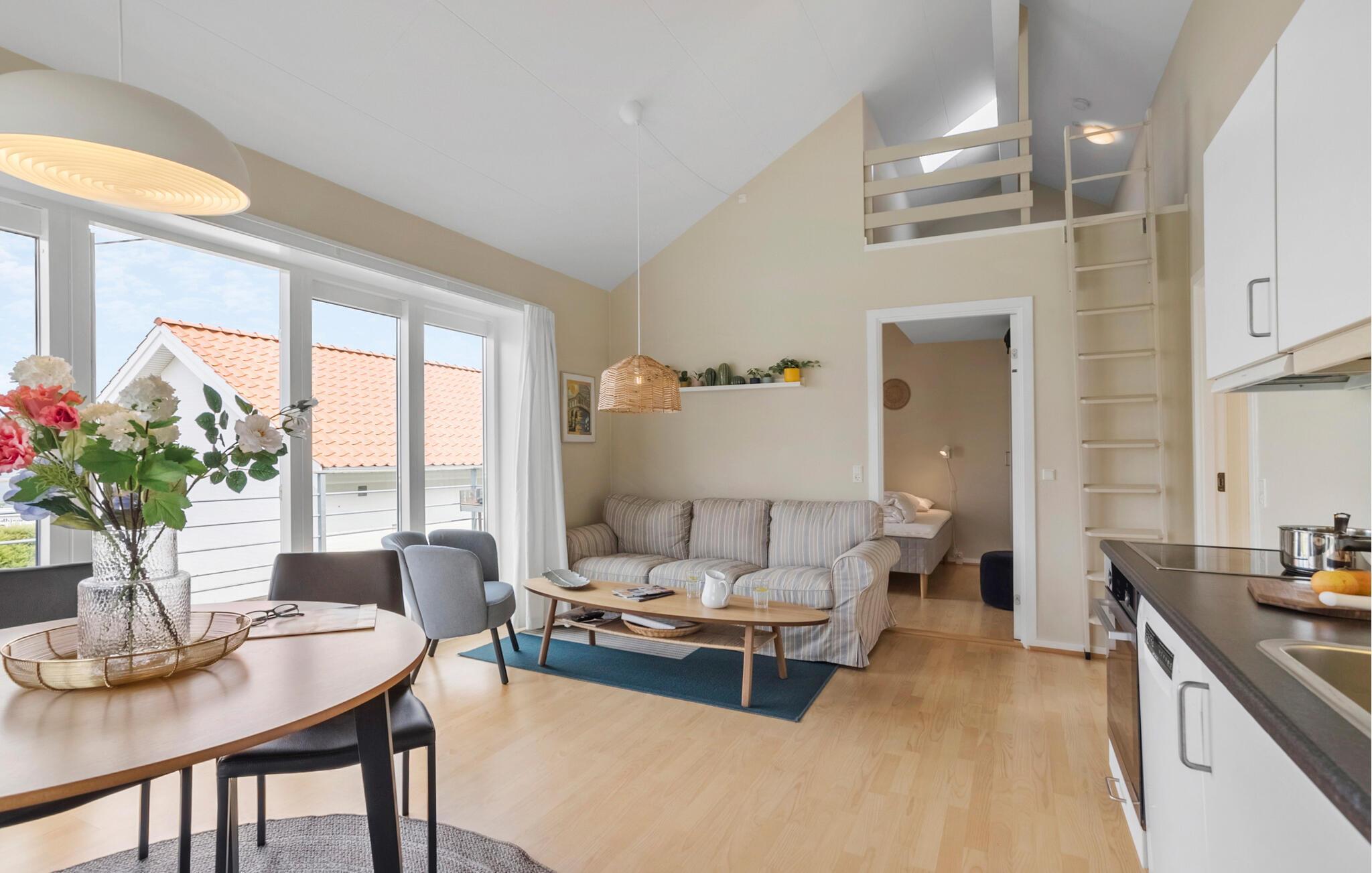 In het noorden van het eiland, direct aan de kustlijn, kunt u dit moderne en praktische vakantiehuis in een twee-onder-een-kapwoning de uwe noemen. Het interieur is licht en gezellig, zodat u zich meteen thuis voelt. De nabijgelegen zee is altijd aanwezig, en u kunt deze vanuit de woonkamer en het terras zien tijdens uw maaltijden. Voor de kinderen is de gezellige zolder met slaapgedeelte onder het puntdak, die via een steile ladder te bereiken is, wellicht geschikt.