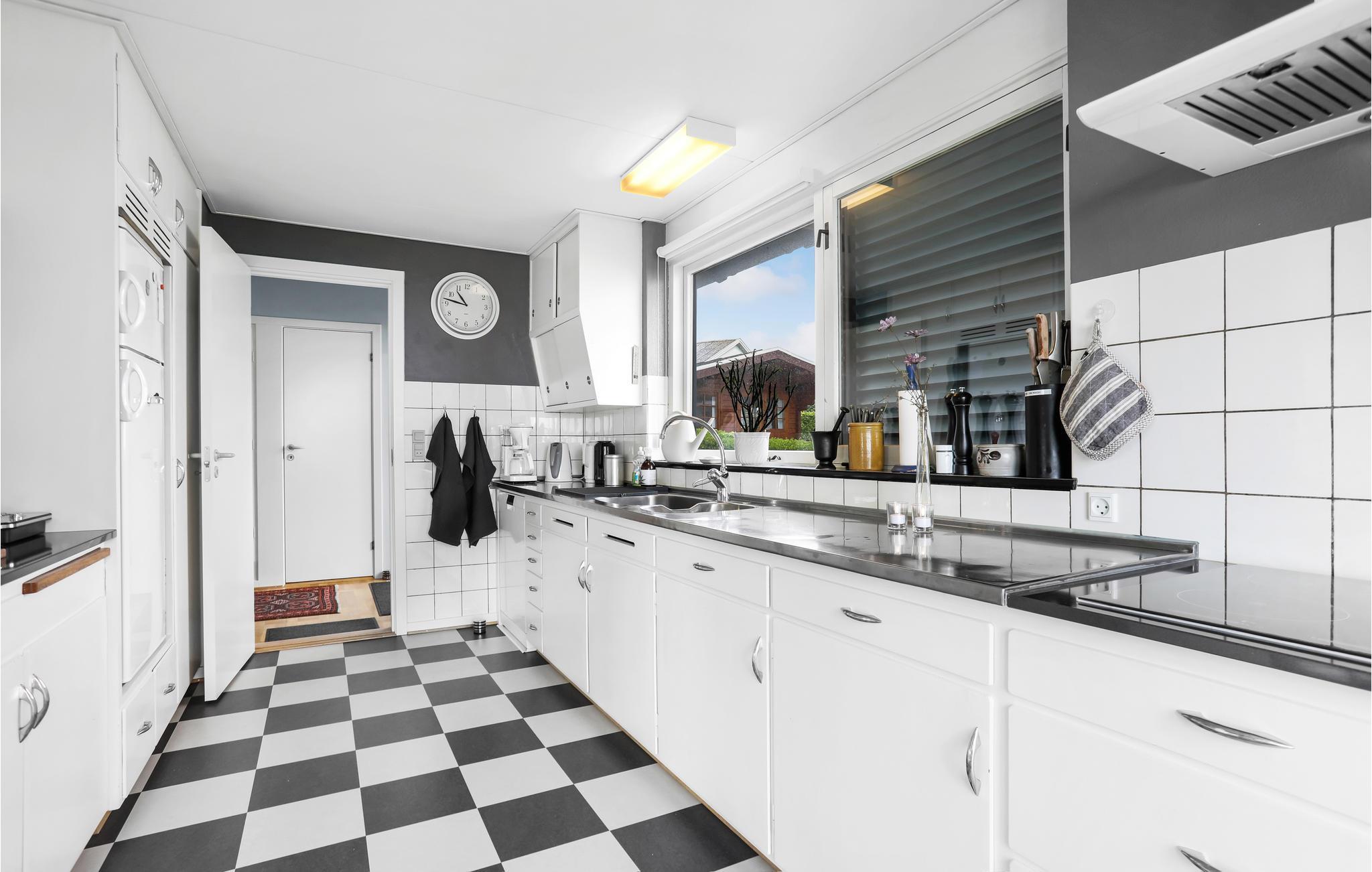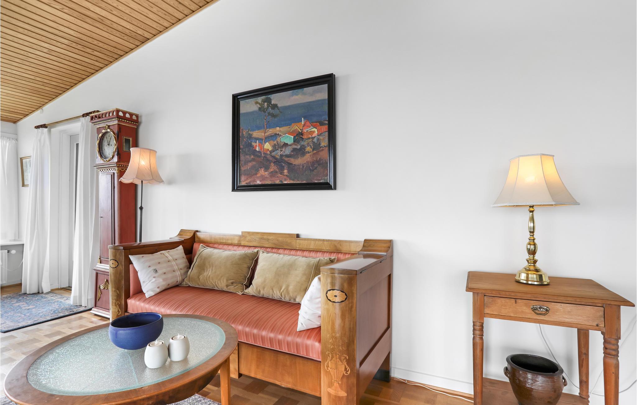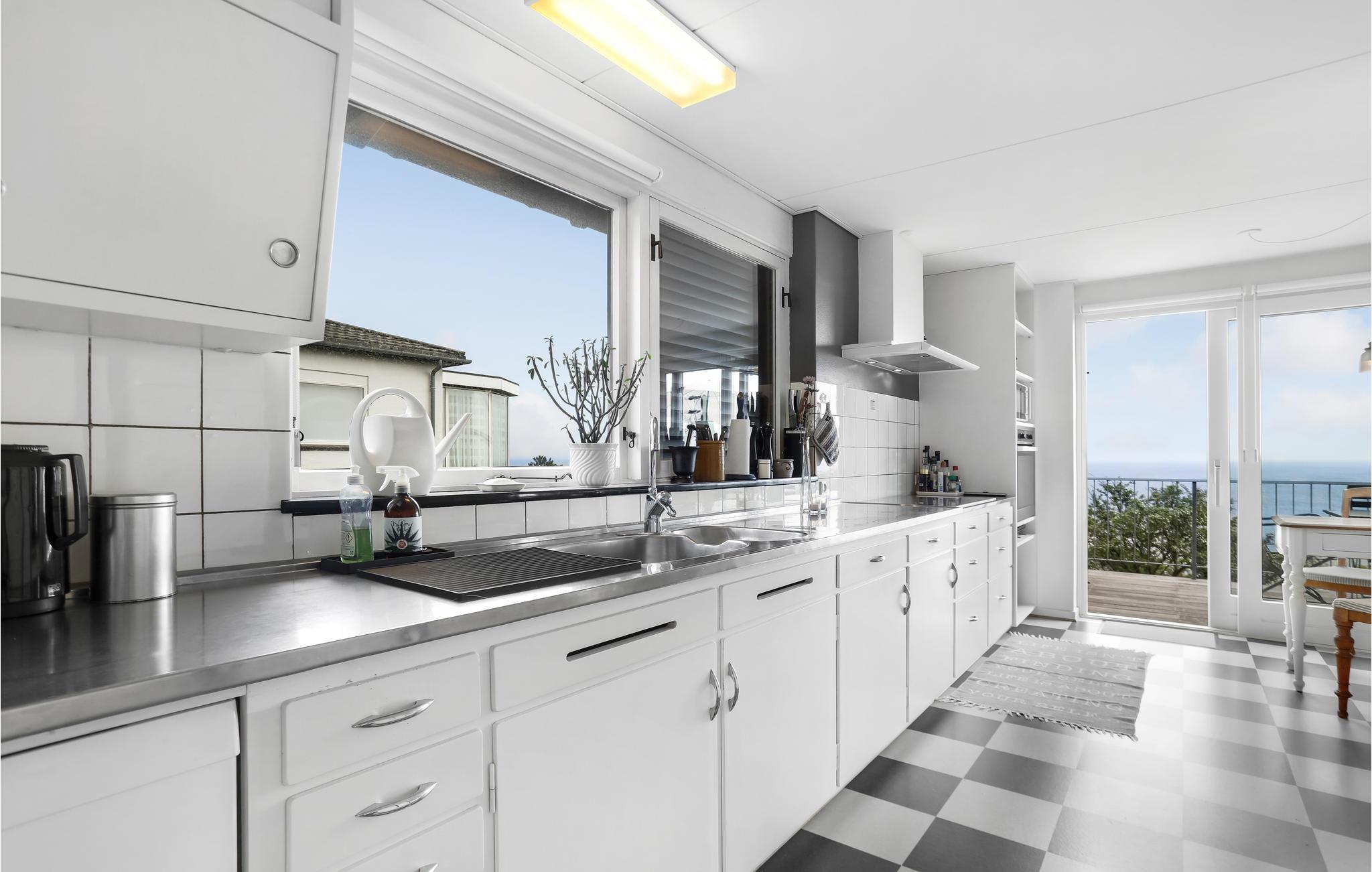 Het hart van het huis is de zeer grote en smaakvol ingerichte woonkamer. Hier kunt u het uzelf helemaal gemakkelijk maken, films kijken, naar muziek of de radio luisteren en samen genieten van uw favoriete gerechten in de eethoek - dit alles met een prachtig uitzicht op zee door de grote ramen. In de keuken met vloerverwarming is er genoeg ruimte voor veel gasten om samen te koken. Er is ook vloerverwarming in de badkamer. In de kelder vindt u een wasmachine. Het huis wordt milieuvriendelijk verwarmd met aardwarmte.