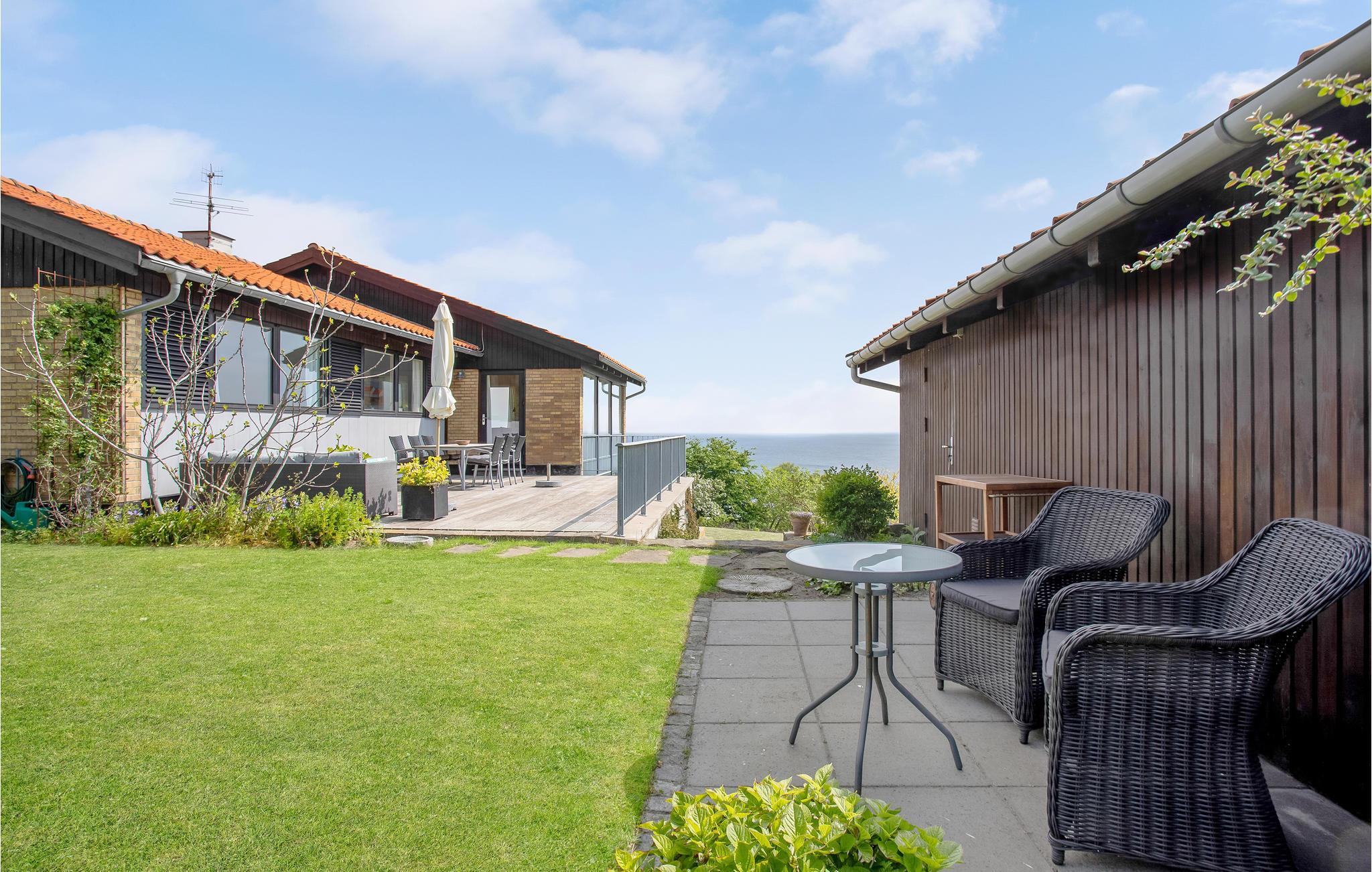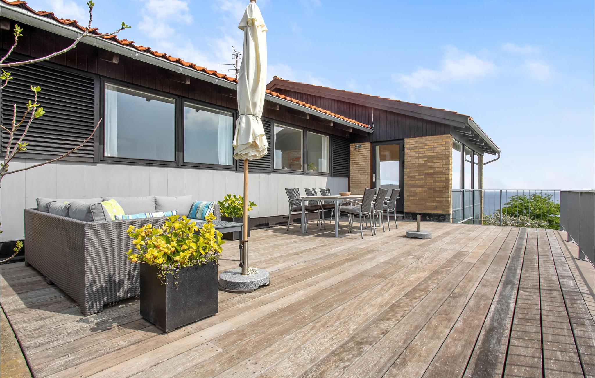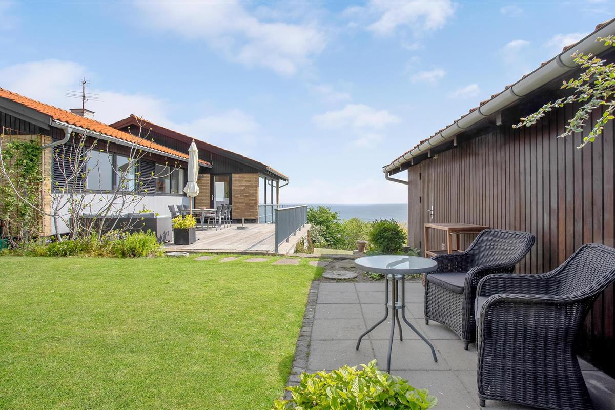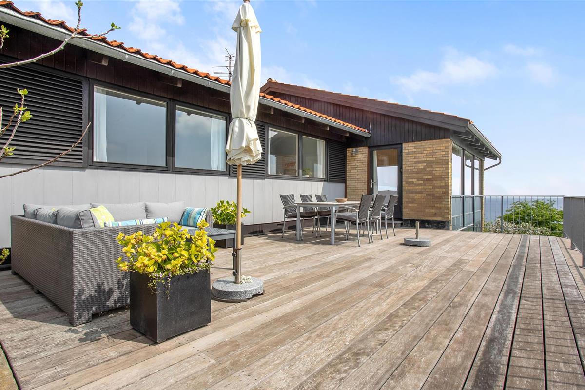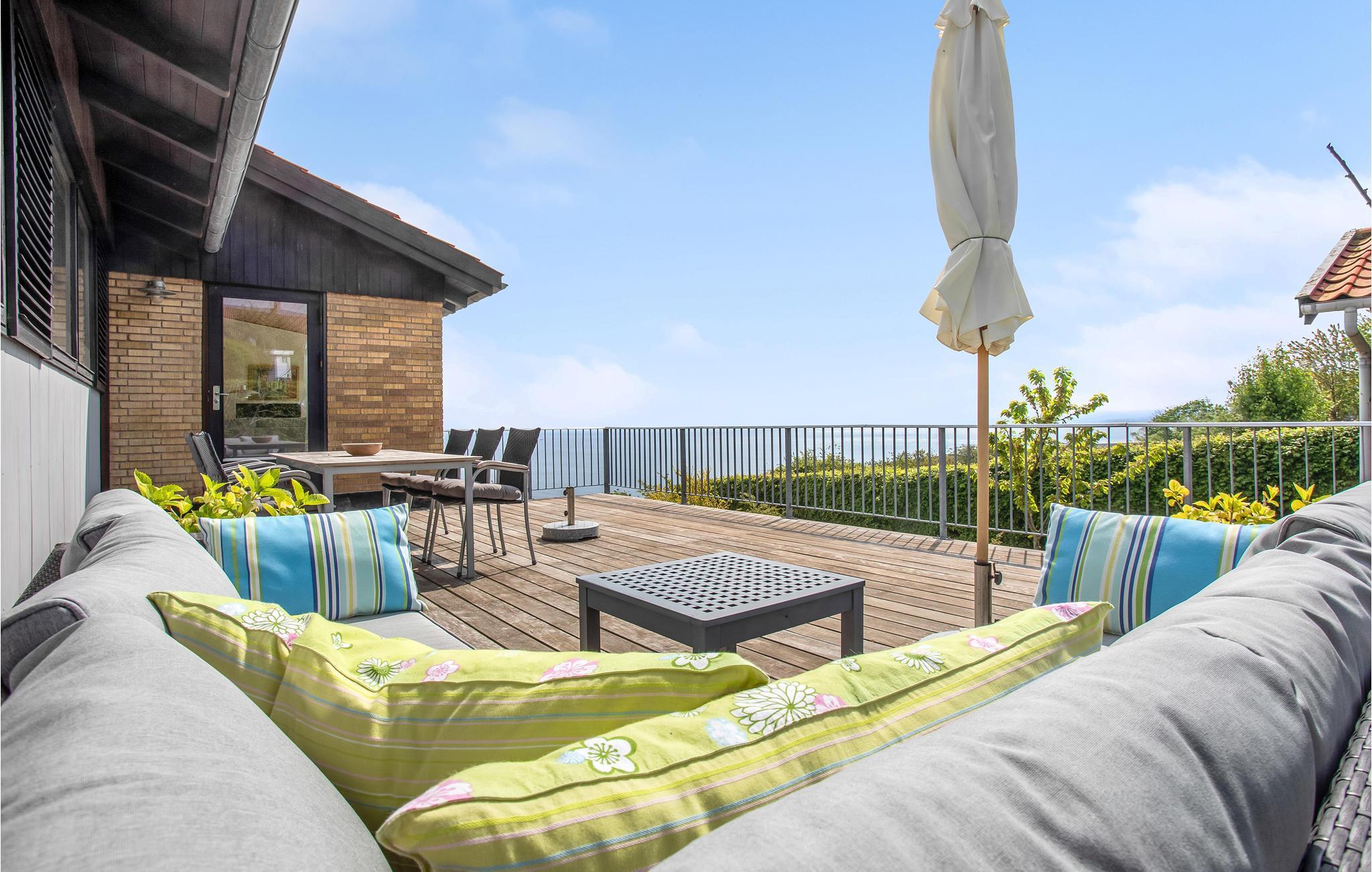 Het huis biedt u een groot balkon met uitzicht op zee en om de ochtendzon te ontvangen - de perfecte plek voor uw ontbijt en het eerste kopje koffie van de dag. Daarnaast heeft u toegang tot een groot houten terras met loungemeubilair, een barbecue en natuurlijk het altijd aanwezige uitzicht op de zee op de achtergrond. De mooie, grote tuin biedt volop ruimte voor plezier en spelletjes.