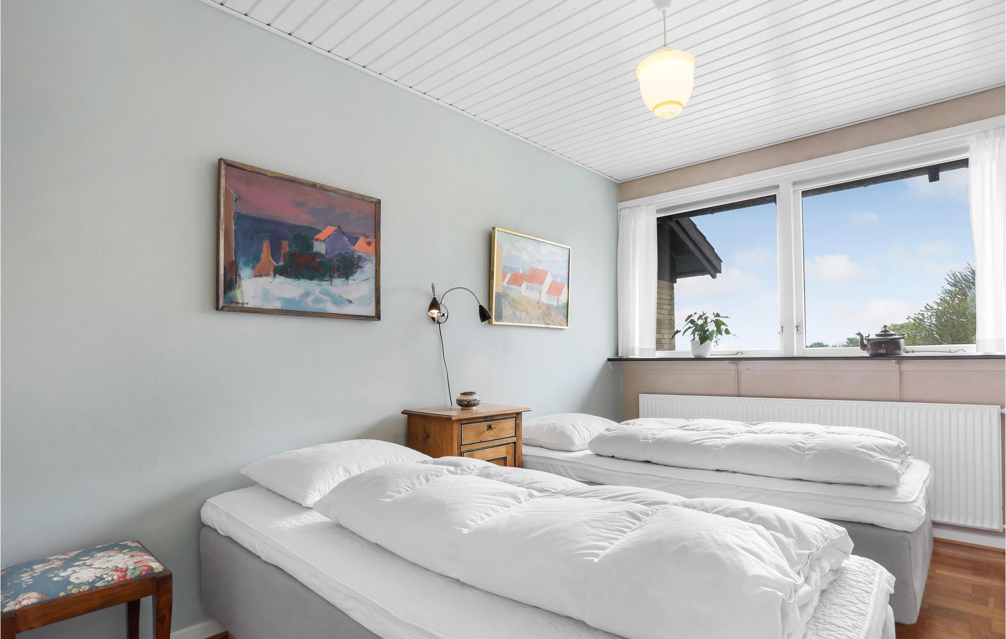 Het huis is centraal maar rustig gelegen in een doodlopende straat, midden in het charmante dorp Gudhjem met goede winkelmogelijkheden of restaurants en cafés. Hier kunt u winkelen voor keramiek en glaskunst, waar het eiland beroemd om is, of een Krølle-Bølle-ijsje eten, genoemd naar de nationale eilandtrol. U verblijft ook dicht bij enkele van de populairste attracties van het eiland, zoals de Østerlars Ronde Kerk, het Natuurpark, het Kunstmuseum of de Helligdomsklipperne.
