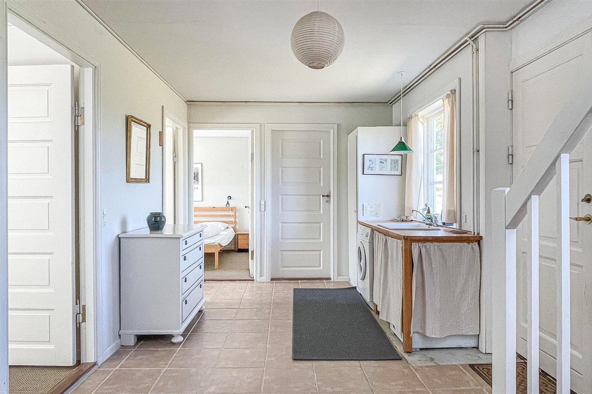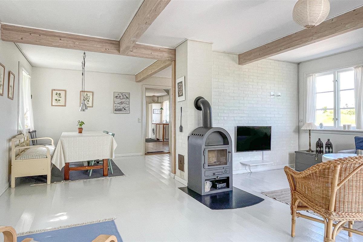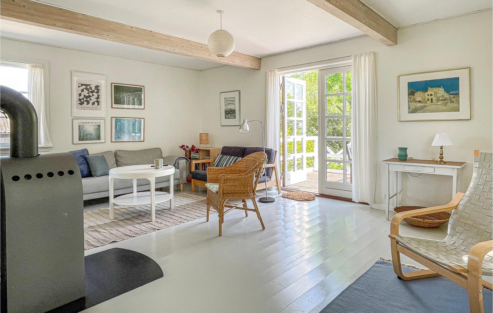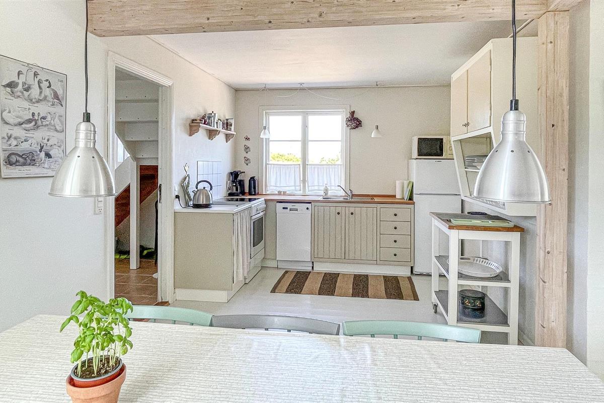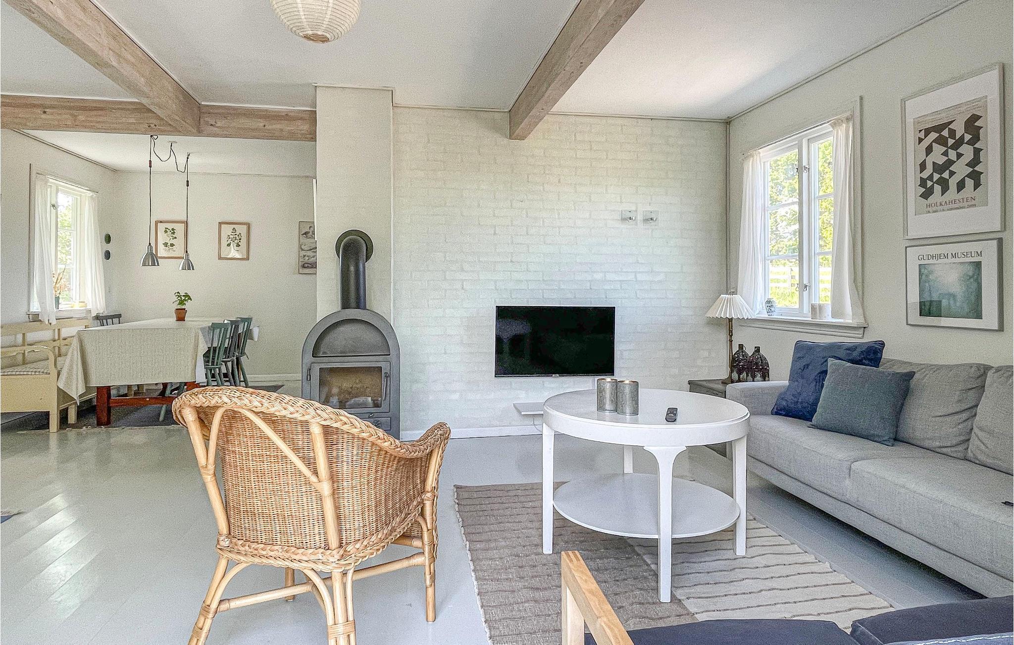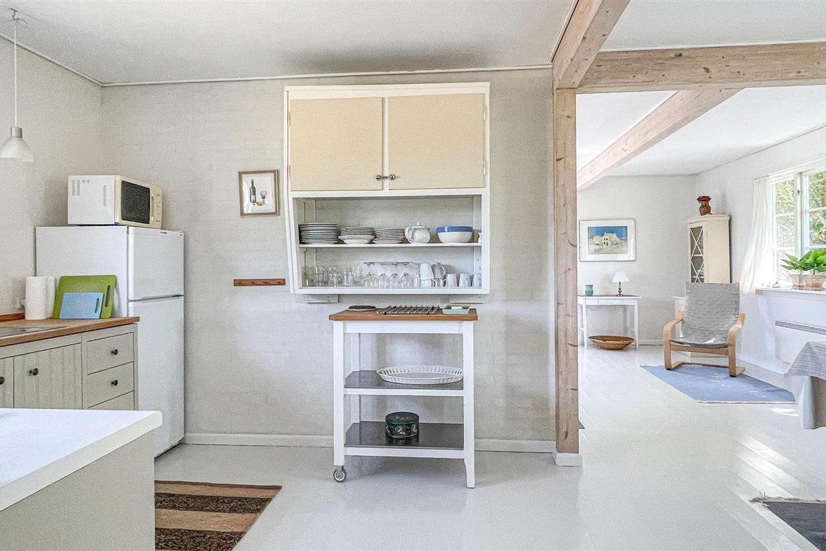 Het huis is verhoogd en prachtig gelegen in een schilderachtige omgeving net buiten het charmante stadje Gudhjem. Daar vindt u winkels, restaurants, leuke winkeltjes en meer. Het huis is een ideale en rustige uitvalsbasis voor het verkennen van Noord-Bornholm met slechts 5 minuten rijden naar Gudhjem en een zandstrand en slechts 3 minuten naar Østerlars ronde kerk, het middeleeuwse centrum van Bornholm en de grootste minigolfbaan van Noord-Europa.
