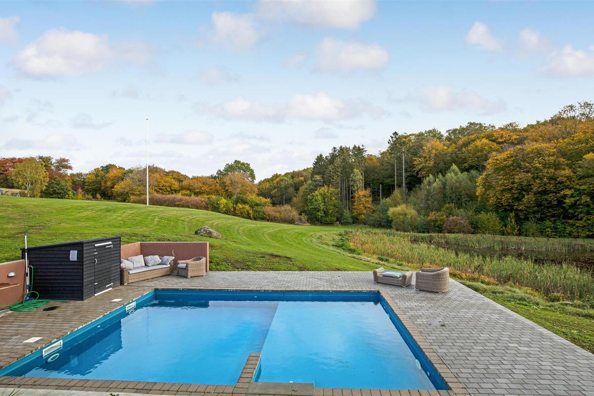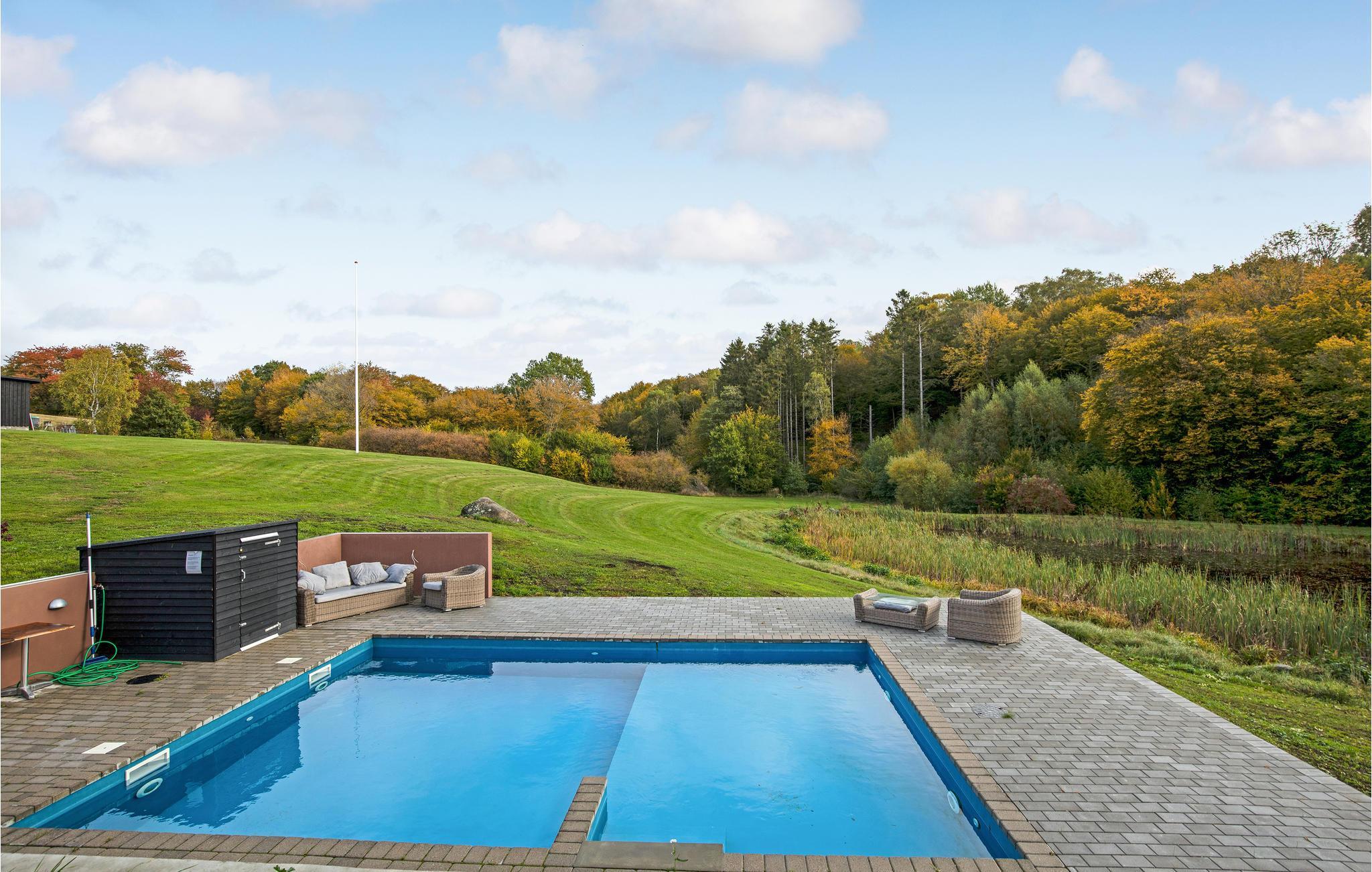 Ruim vakantiehuis met verwarmd zwembad, eigen meer en nabij strand op Bornholm.