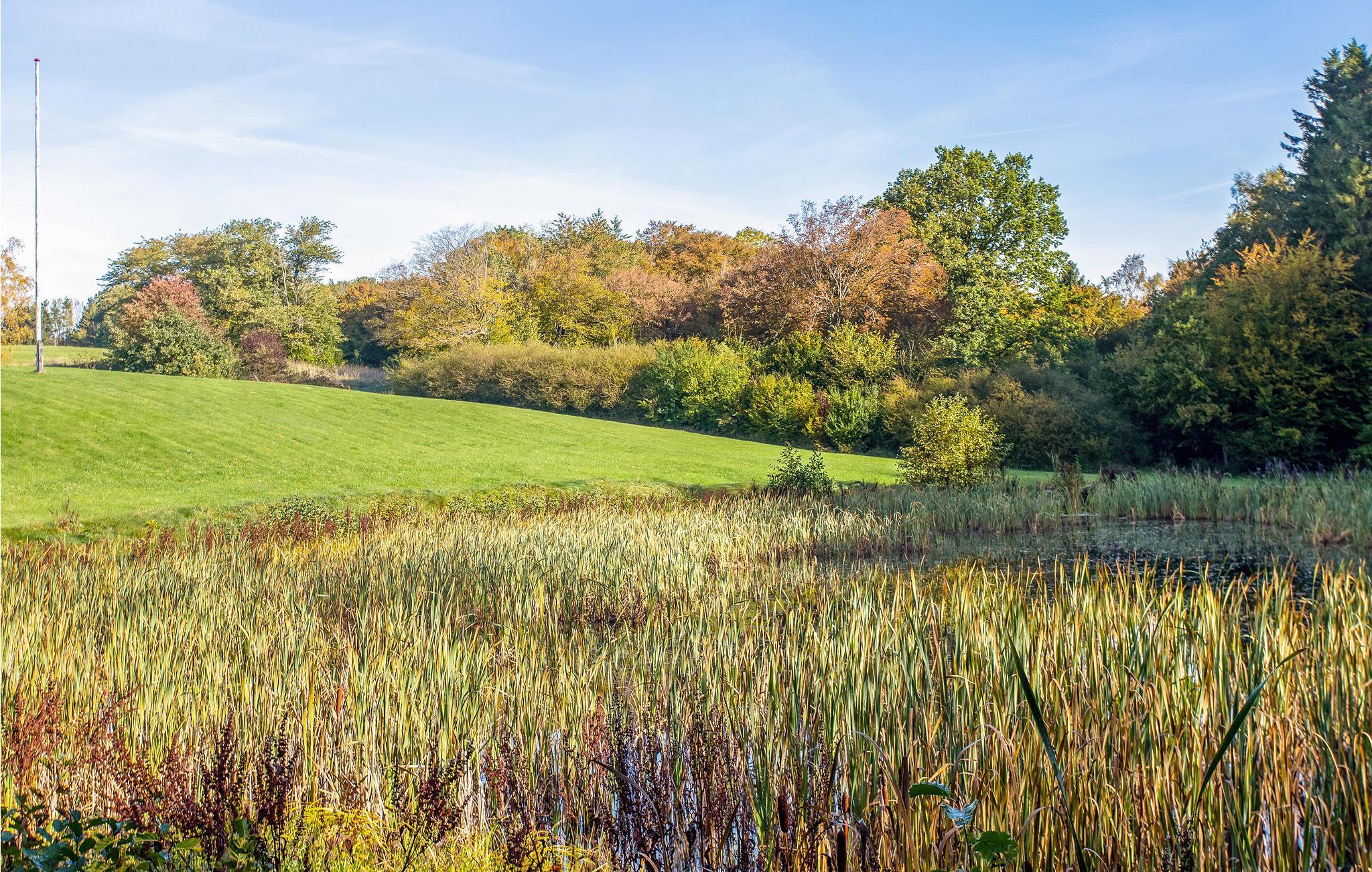 Mooie vakantiewoning op groot natuurperceel met eigen meer, nabij golfbaan, strand en charmante dorpjes op Bornholm.