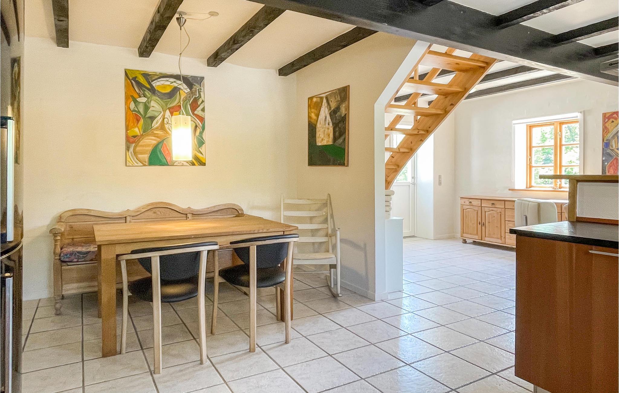 Het appartement ligt op een mooi natuurperceel met een eigen meer, 4 km van de golfbaan Rø en 6 km van het mooie zandstrand bij Gudhjem. Hier bent u omringd door de mooiste natuur van het eiland. De flat heeft twee verdiepingen en maakt een mooie en moderne indruk.
