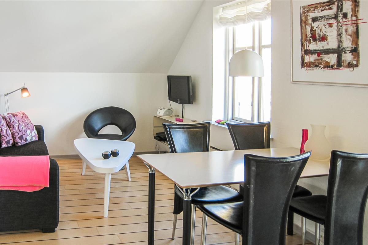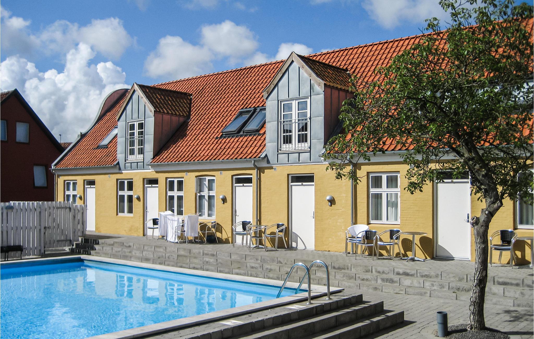 Geweldig vakantieappartement in het Købmandsgården complex, in het hart van Gudhjem en met toegang tot een gedeeld buitenzwembad.