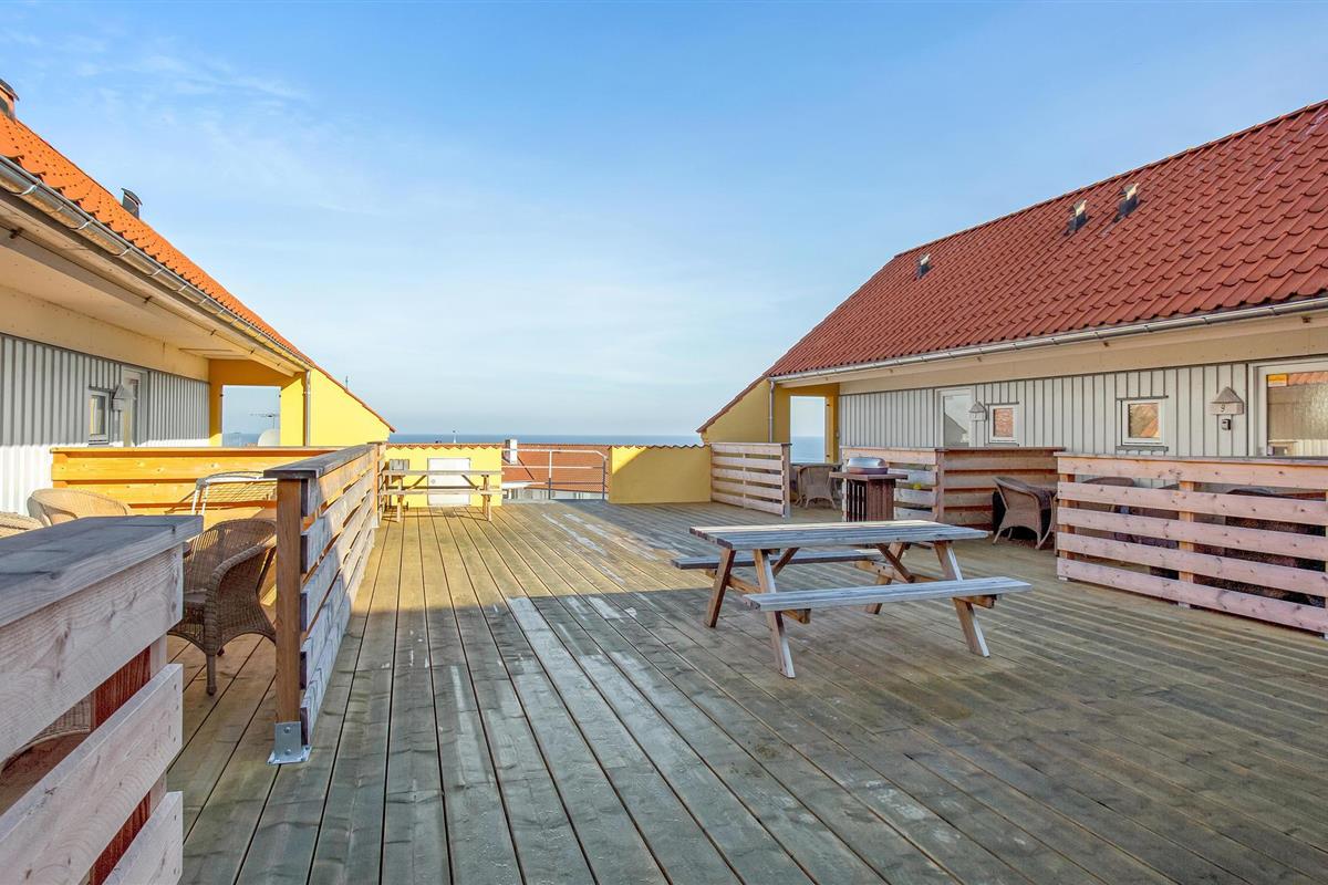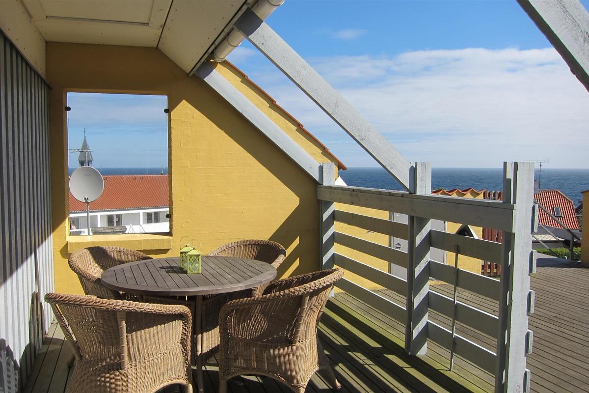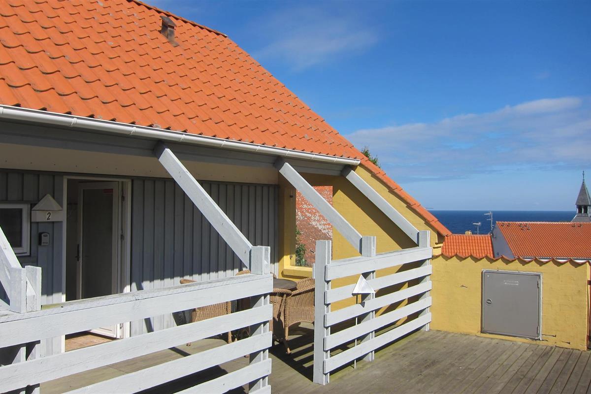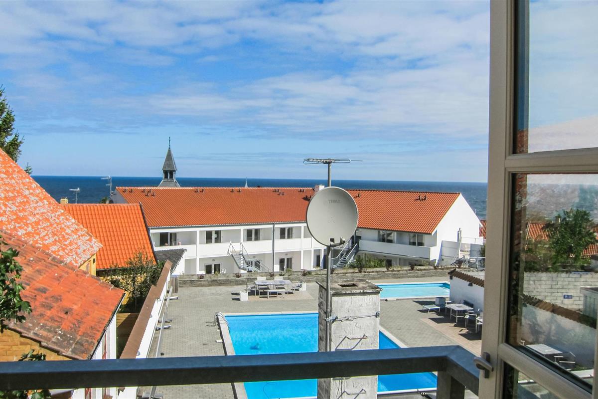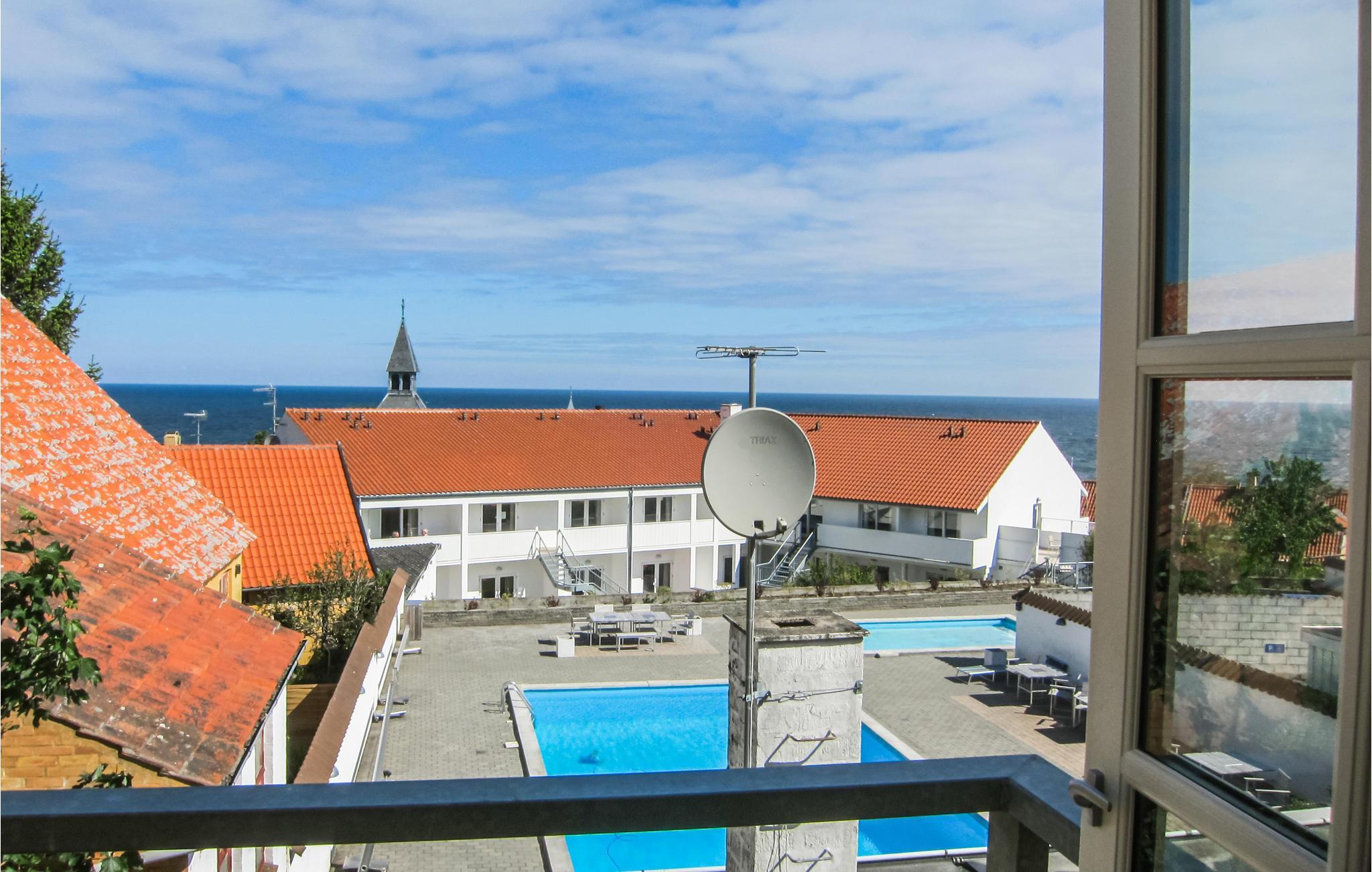 Ontdek dit charmante appartement in Gudhjem met balkon, gedeeld zwembad en zeezicht, perfect voor een ontspannen vakantie op Bornholm.