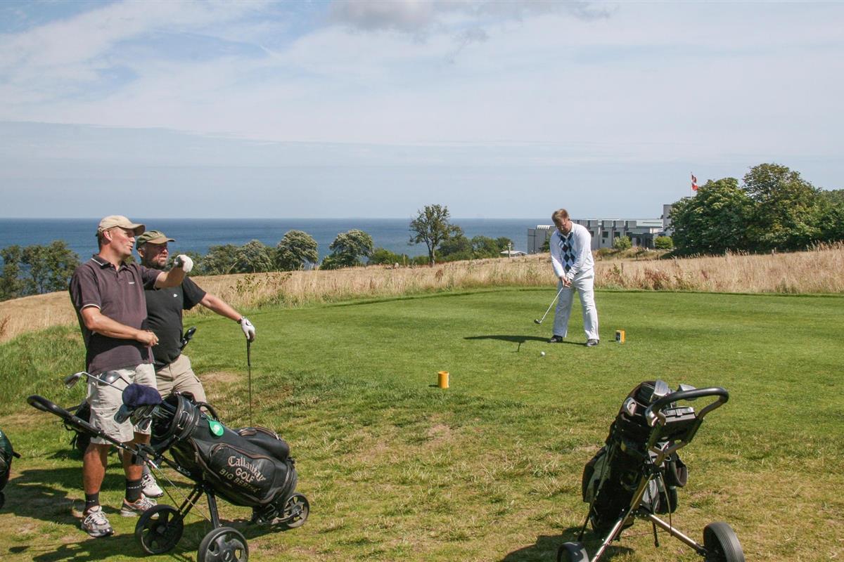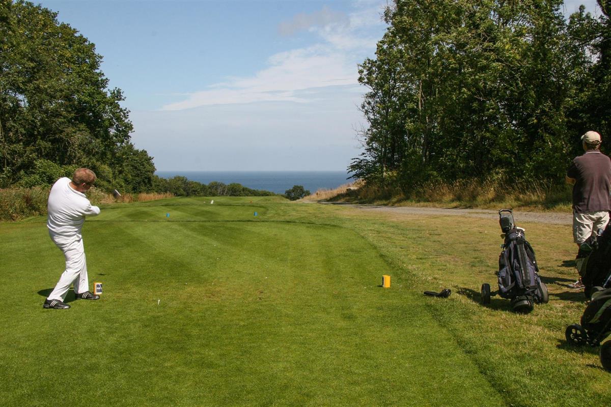 Modern vakantiehuis aan een fietspad in een schilderachtige omgeving met prachtig uitzicht op het bos en de golfbaan van Gudhjem.