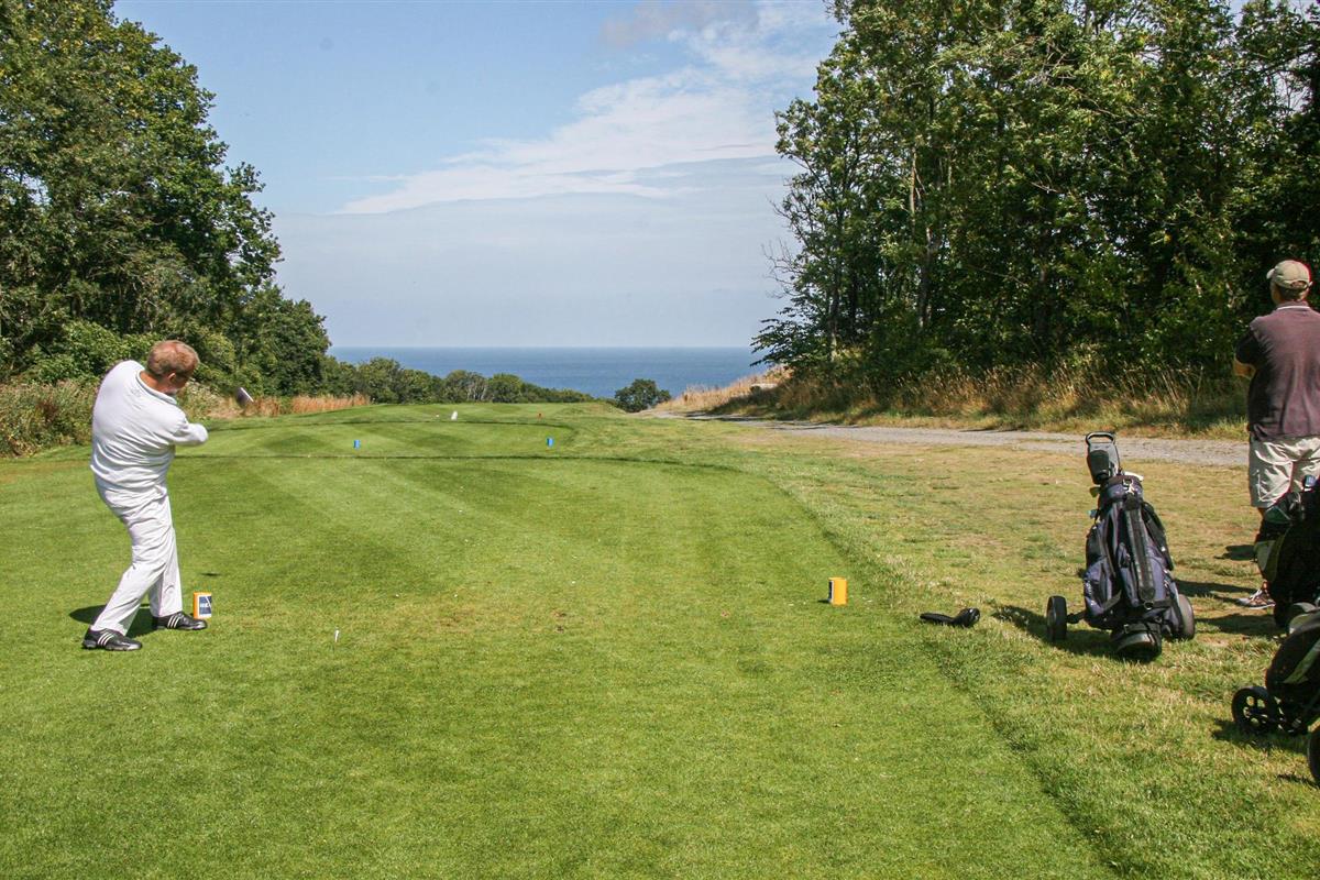 Modern vakantiehuis met boszicht, dicht bij golfbaan en natuurpaden op Bornholm.