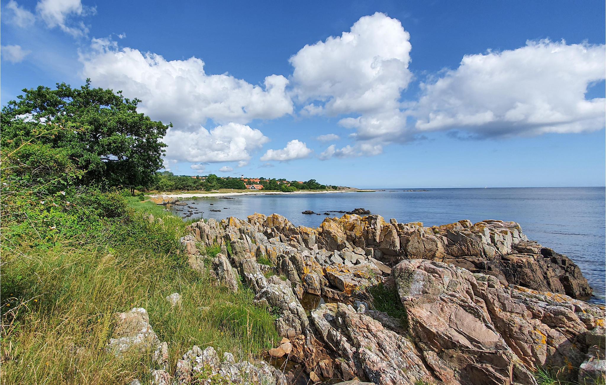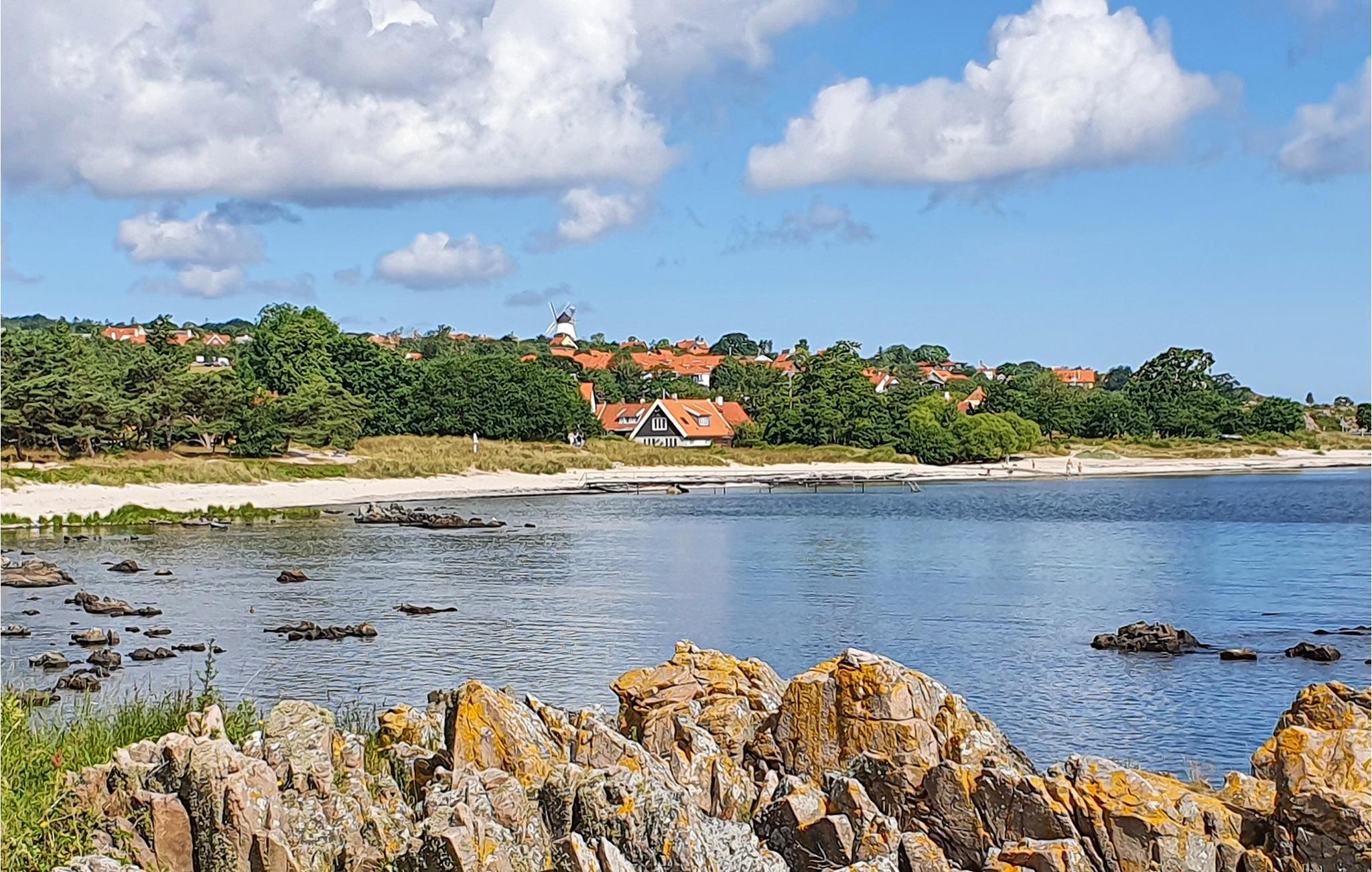Dit zeer gezellige vakantiehuis ligt in het idyllische Gudhjem. Het huis ligt aan een dijk in een vakantiepark met meerdere vakantiewoningen en huizen in een mooie, heuvelachtige omgeving en in een natuurlijke omgeving die gedomineerd wordt door weilanden, kliffen en plekjes met uitzicht op zee. De omgeving is zeer kindvriendelijk, ook het strand, de haven en het restaurant liggen op loopafstand van het huis.