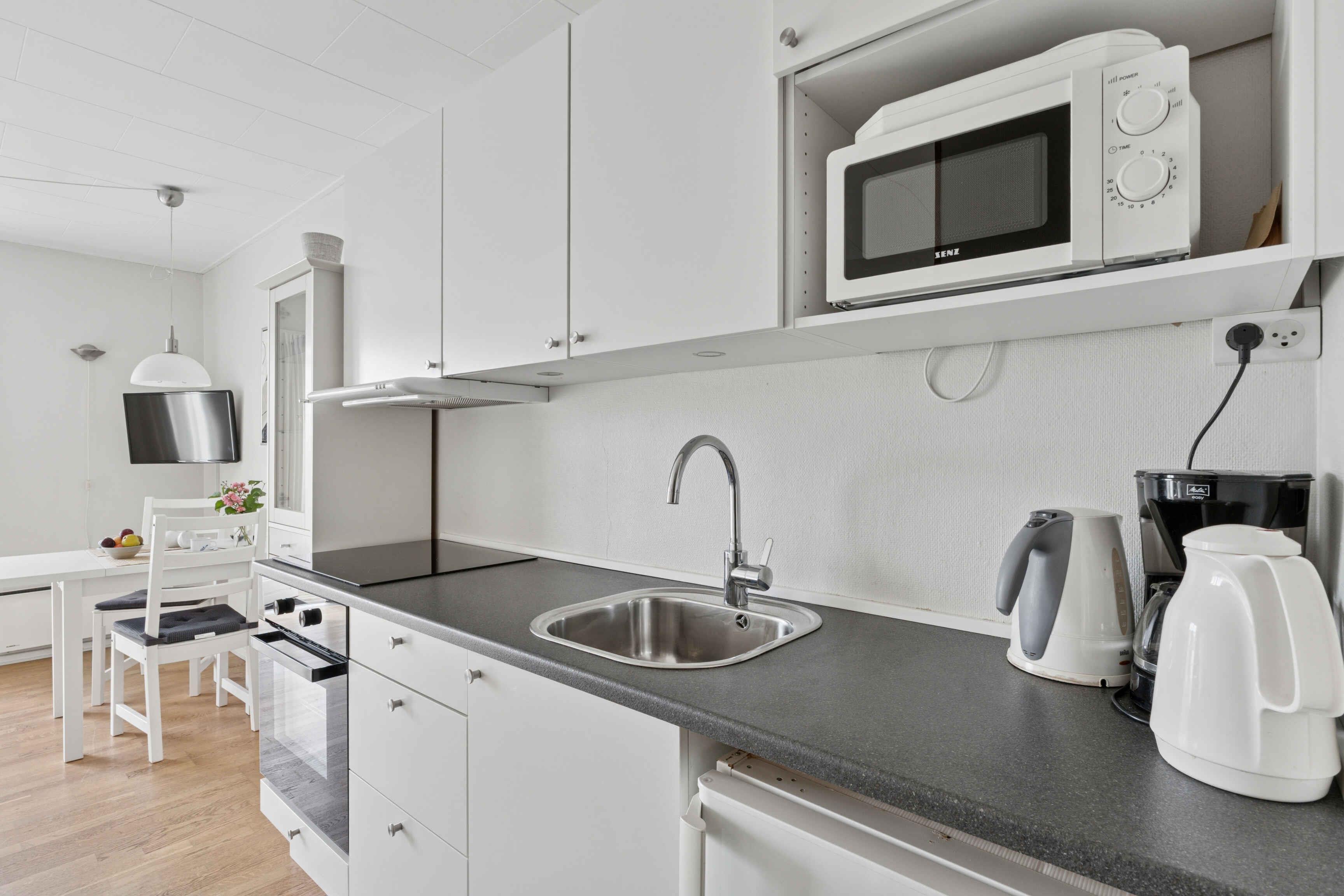 Nice holiday apartment for 2 people – with sea view in Gudhjem Stay at the top of Gudhjem in a charming holiday apartment with views over the town and the Baltic Sea. The apartment features an entrance hall, a combined bedroom and living room with TV, a kitchenette, and a bathroom. From your private terrace, you can enjoy your morning coffee with a sea view all the way to Christiansø, or spend peaceful evenings relaxing while watching a beautiful sunset.