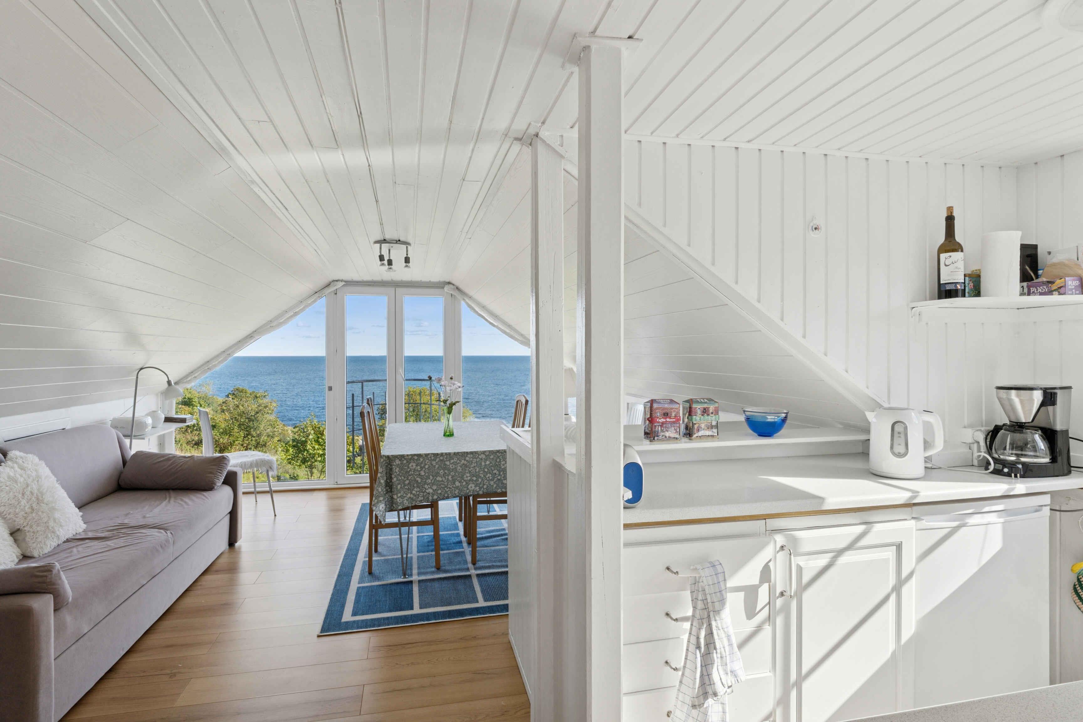 Fantastisch pand op twee niveaus met indrukwekkend uitzicht op zee over de Oostzee en met Christiansø aan de horizon. De woning is gezellig en comfortabel ingericht voor zes personen, zodat u hier heerlijk kunt opladen na uw uitstapjes over het eiland. Het beste van alles is de prachtige tuin met terras, tuinmeubelen en barbecue, waar u kunt genieten van het absoluut adembenemende uitzicht op de blauwe, blauwe zee. In het westen is er nog een terras met tuinmeubelen. Je krijgt een mooie locatie met uitzicht op zee, precies tussen het prachtige Gudhjem en de oude vissershut Melsted. Op slechts 300 meter van de haven in Melsted kom je bij het openluchtmuseum Melstedgaard, waar kinderen paarden en varkens kunnen aaien en leren over het dagelijks leven op een boerderij vroeger. Vanuit het appartement bent u ook op loopafstand van de haven van Gudhjem en vele restaurants en winkels. Er zijn ook goede mogelijkheden voor spannende natuurbelevenissen in de omgeving, die niet in de laatste plaats de moeite waard zijn om tijdens een fietstocht te beleven. Ook naar Allinge en Svaneke hoef je niet ver, net zoals je vanuit Gudhjem ook een spannende excursie naar Christiansø kunt maken. Verheug u op enkele spannende en ontspannende dagen in het charmante Gudhjem en Melsted. Een spannend appartement, dat een prachtige lokale omgeving biedt met een indrukwekkende rotskust en een fijn zandstrand. Let op: Gemeenschappelijke entree met discrete eigenaar, die soms in het aangrenzende pand woont.
